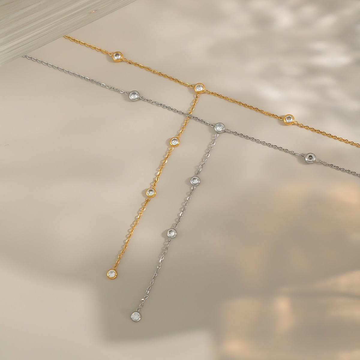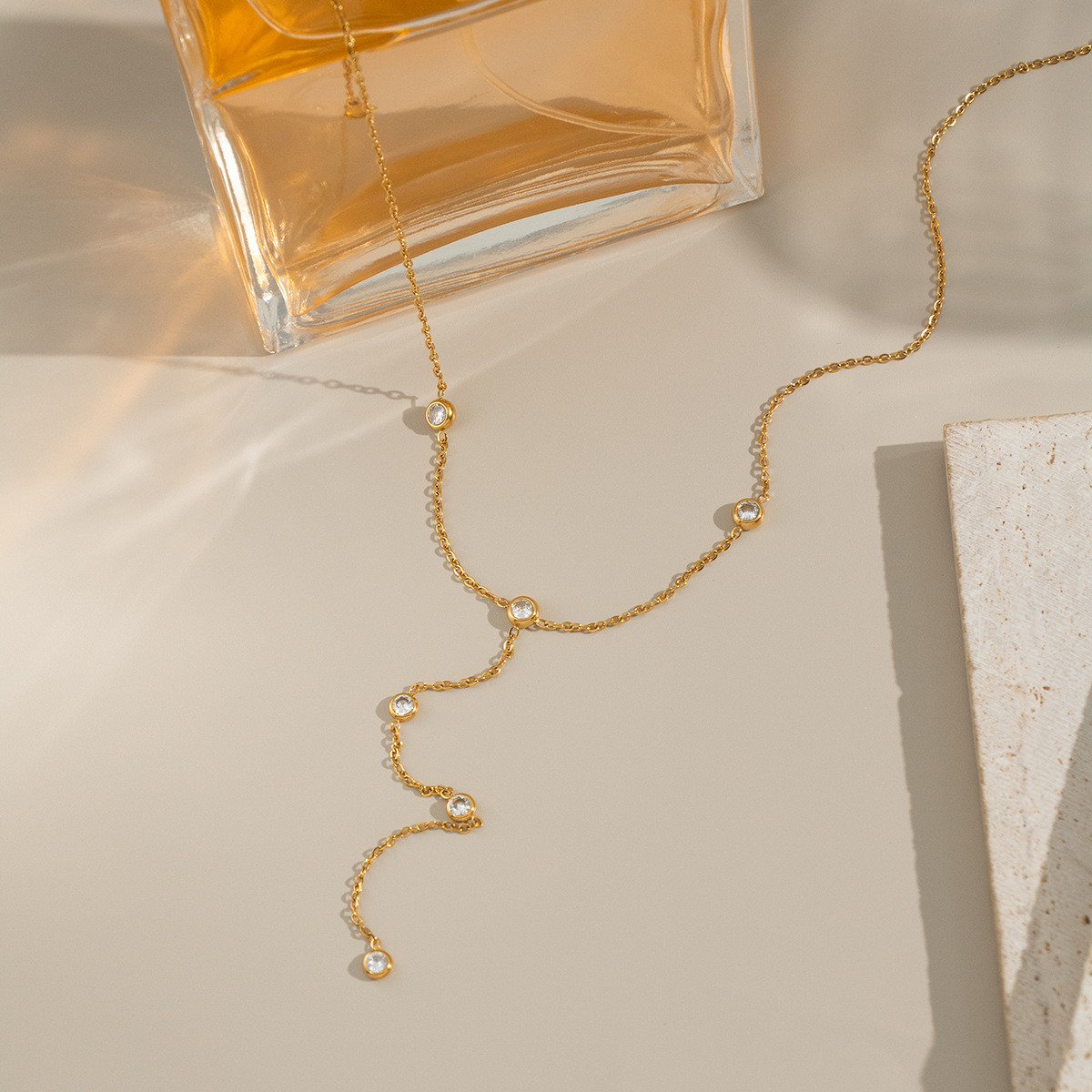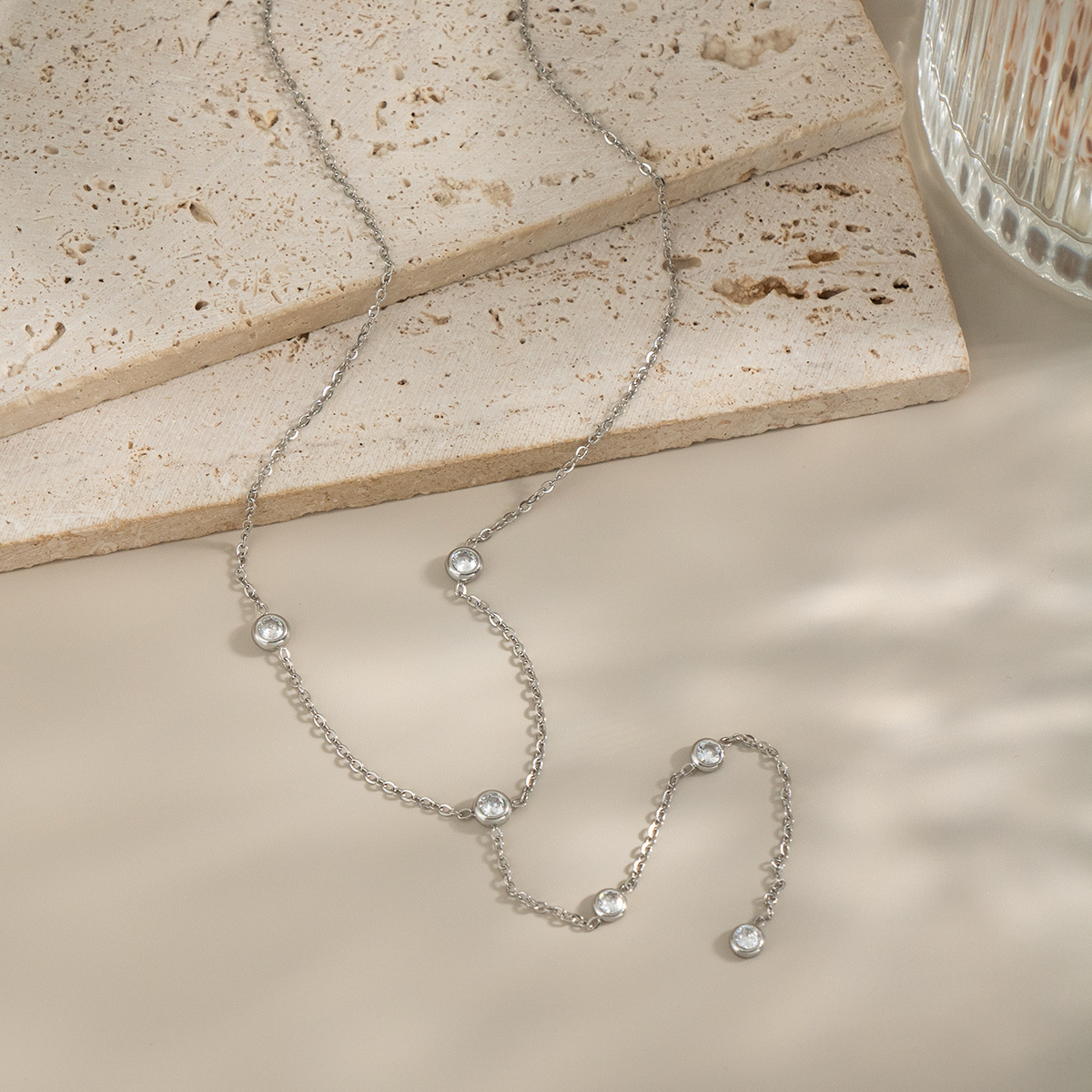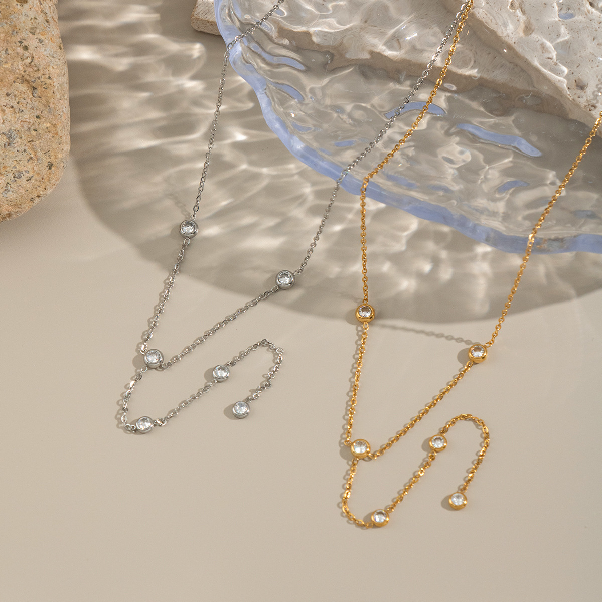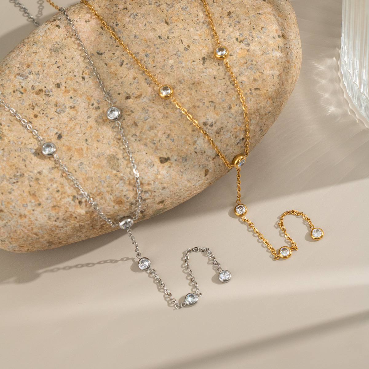 Aço inoxidável 304 colar, with zircone em forma de cubo, banhado, joias de moda & para mulher, Mais cores pare escolha, vendido por PC