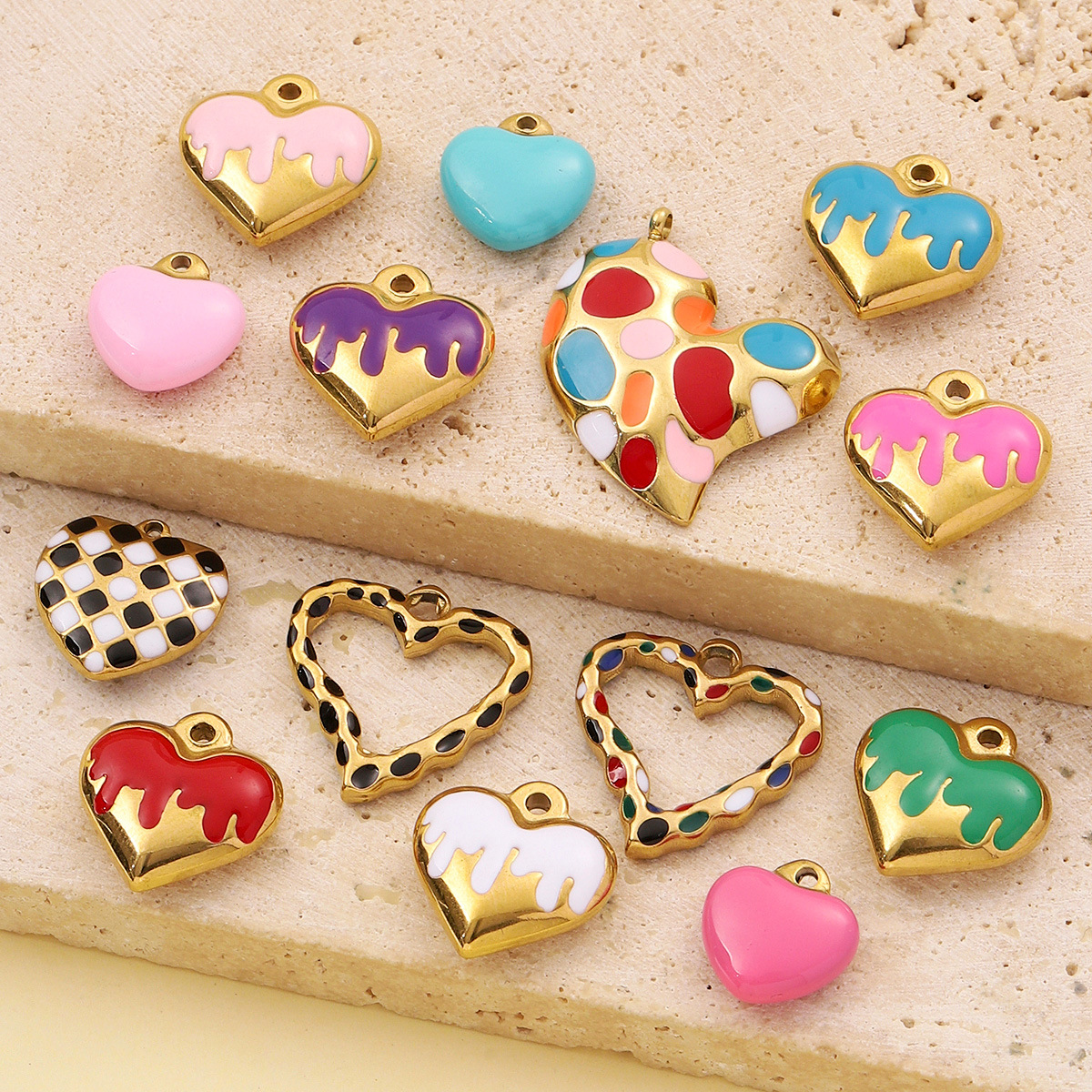 Coração de aço inoxidável pingentes, Aço inoxidável 304, cromado de cor dourada, DIY & esmalte, Mais cores pare escolha, 5PCs/Bag, vendido por Bag
