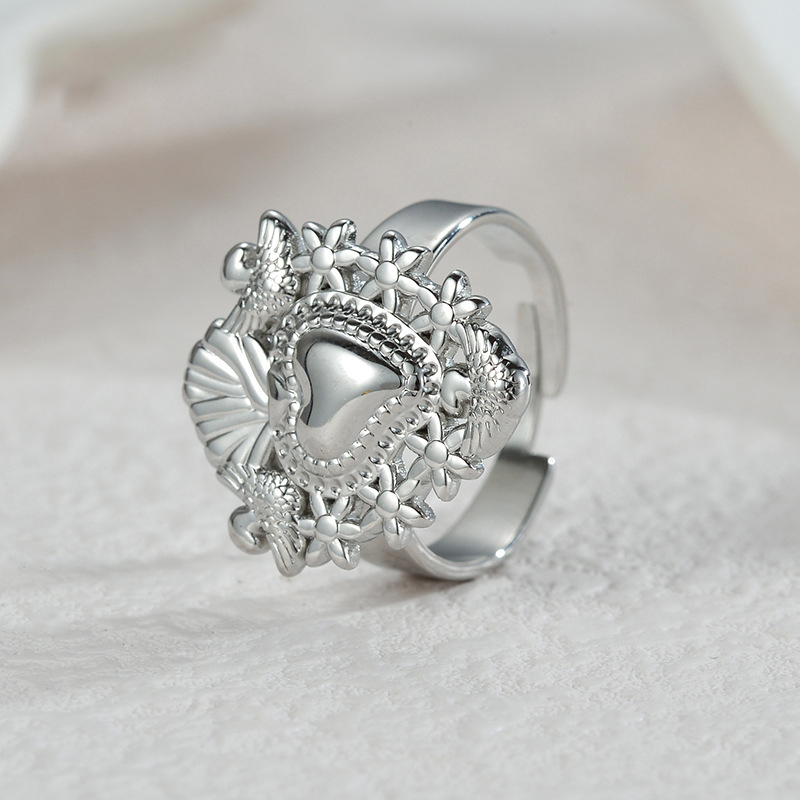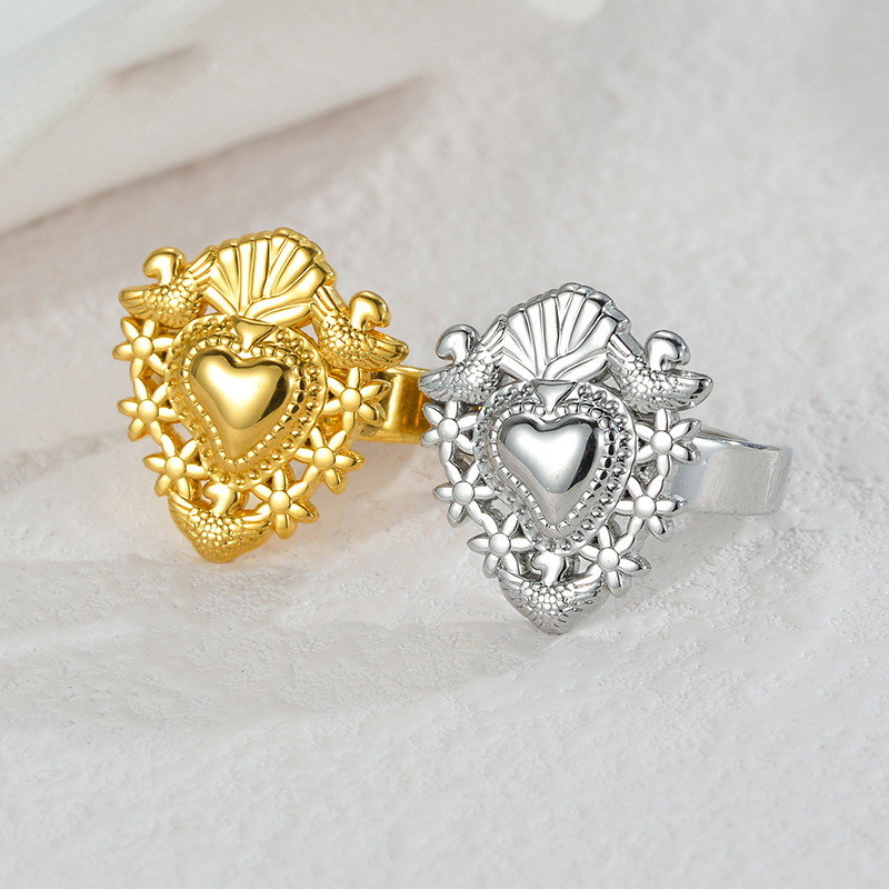 Anel de dedo de aço inoxidável, Aço inoxidável 304, with Opala, Flor, banhado, joias de moda & Vario tipos a sua escolha & para mulher, dourado, vendido por PC