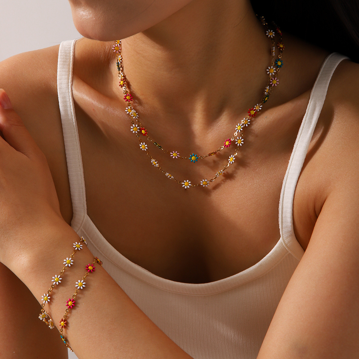 Aço inoxidável 304 Pulseira e colar, Flor, cromado de cor dourada, Vario tipos a sua escolha & para mulher & esmalte, vendido por PC