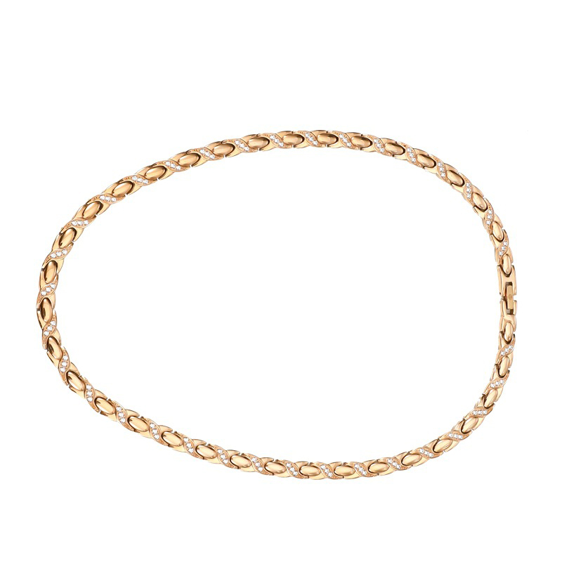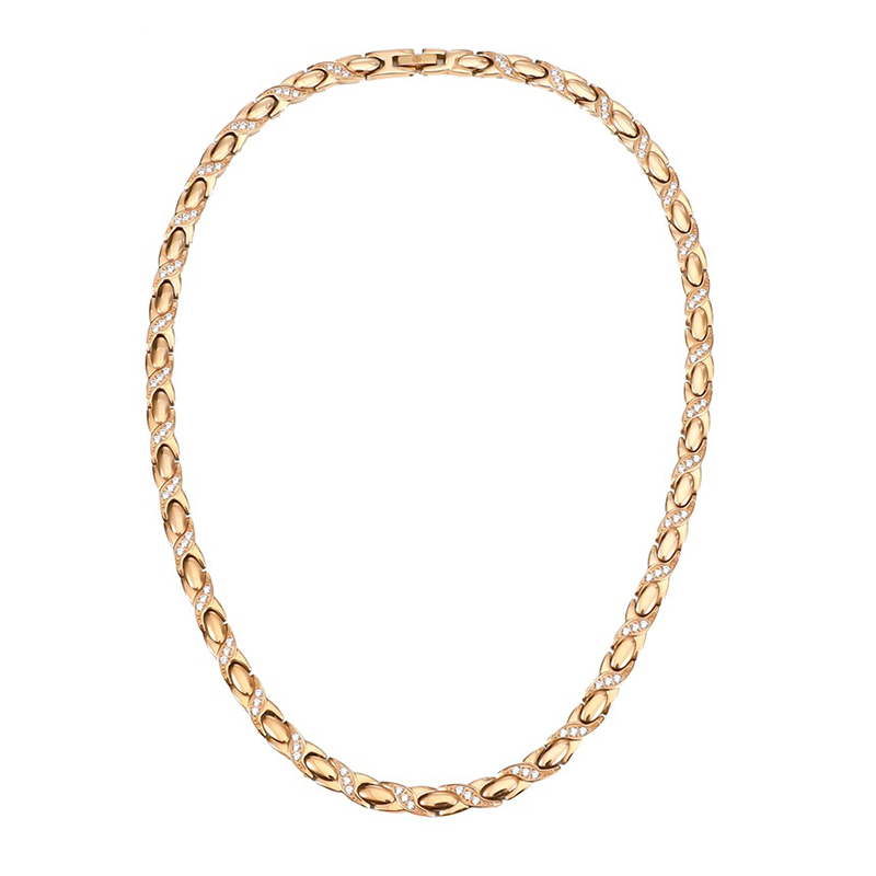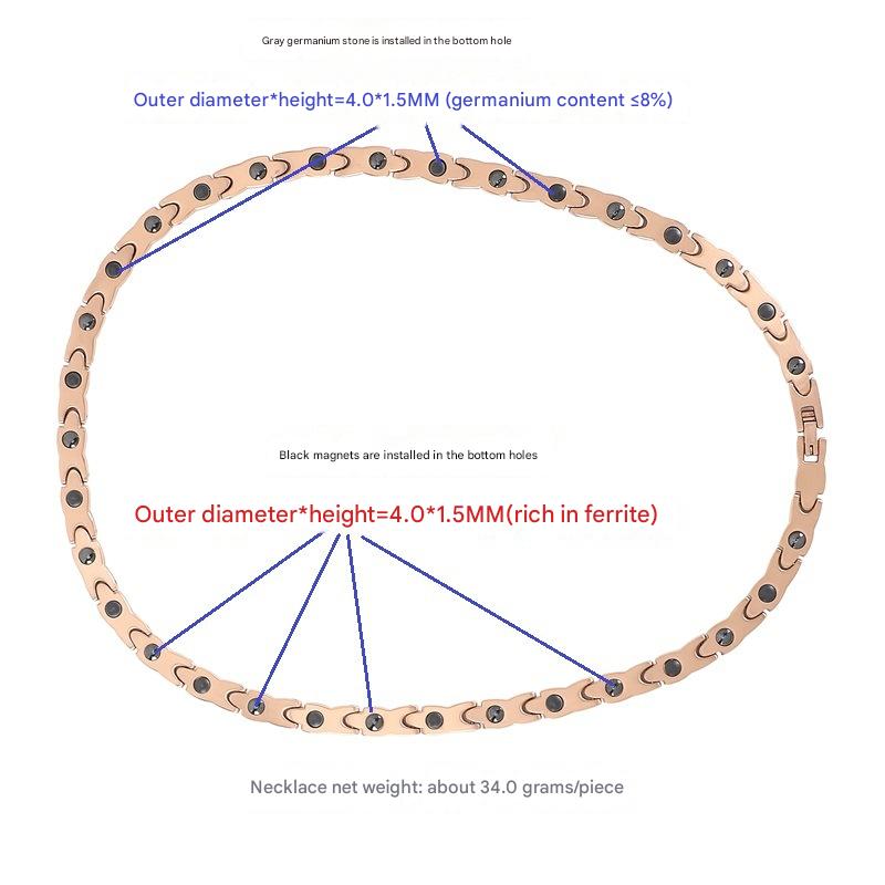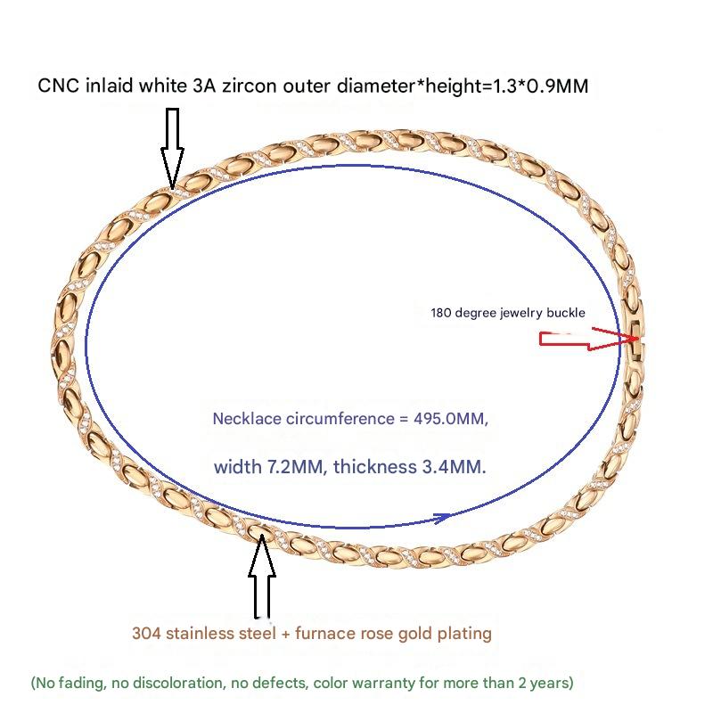 Aço inoxidável 304 colar, with Black+Magnetic+Stone Preto +Magnetic + Stone, micro pavimento em zircônia cúbica & para mulher, rosa dourado, comprimento Aprox 19.5 inchaltura, vendido por PC