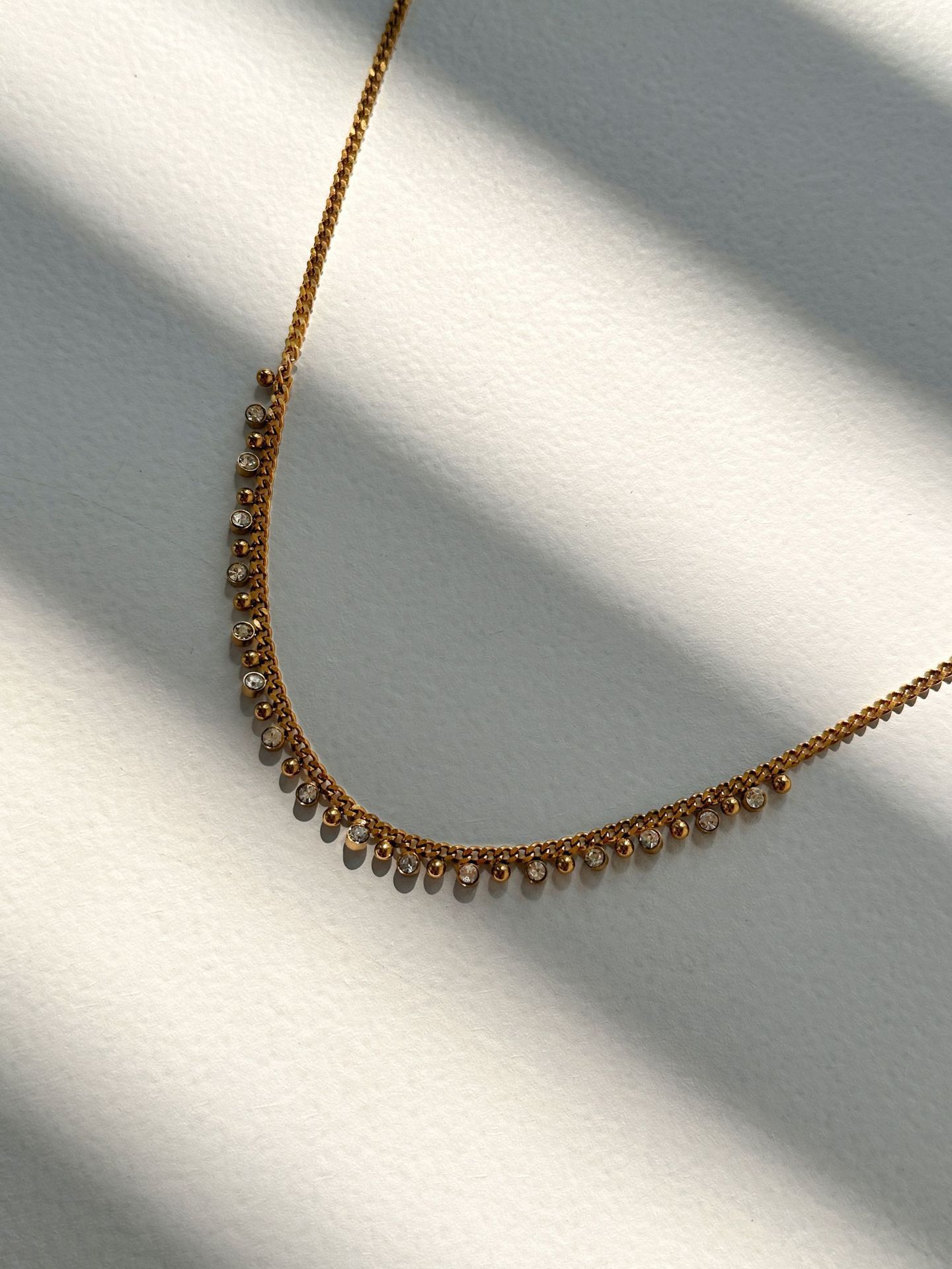 Aço inoxidável 304 colar, with 2inch extender chain, cromado de cor dourada, micro pavimento em zircônia cúbica & para mulher, comprimento Aprox 15.7 inchaltura, vendido por PC