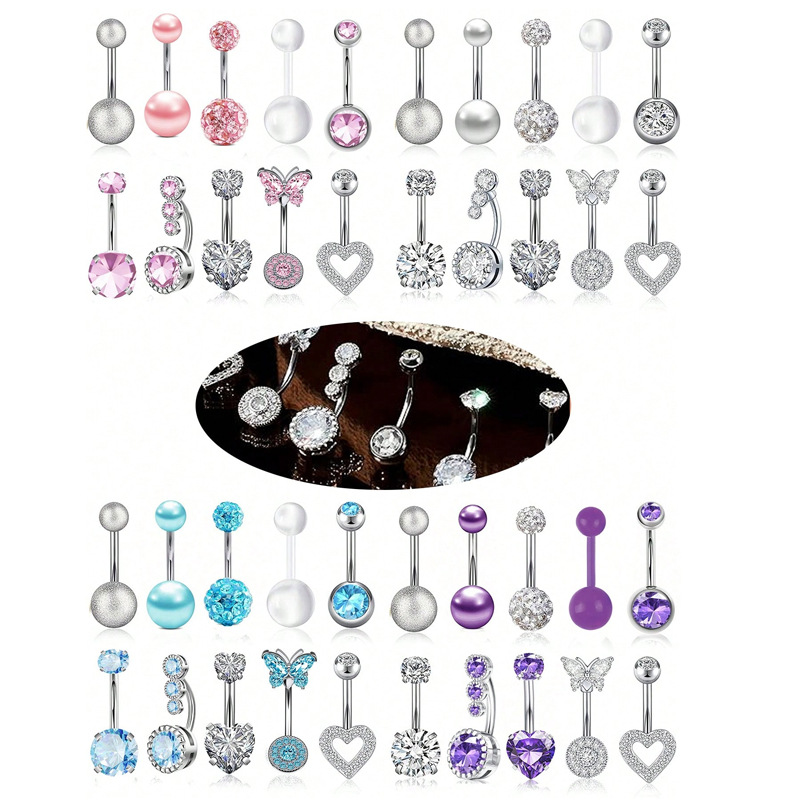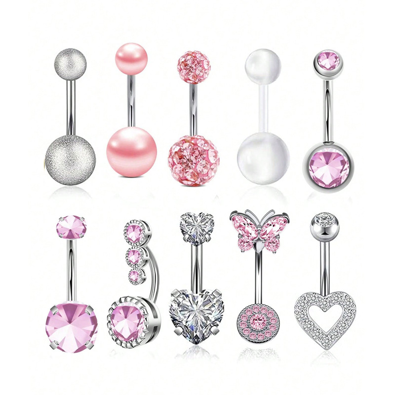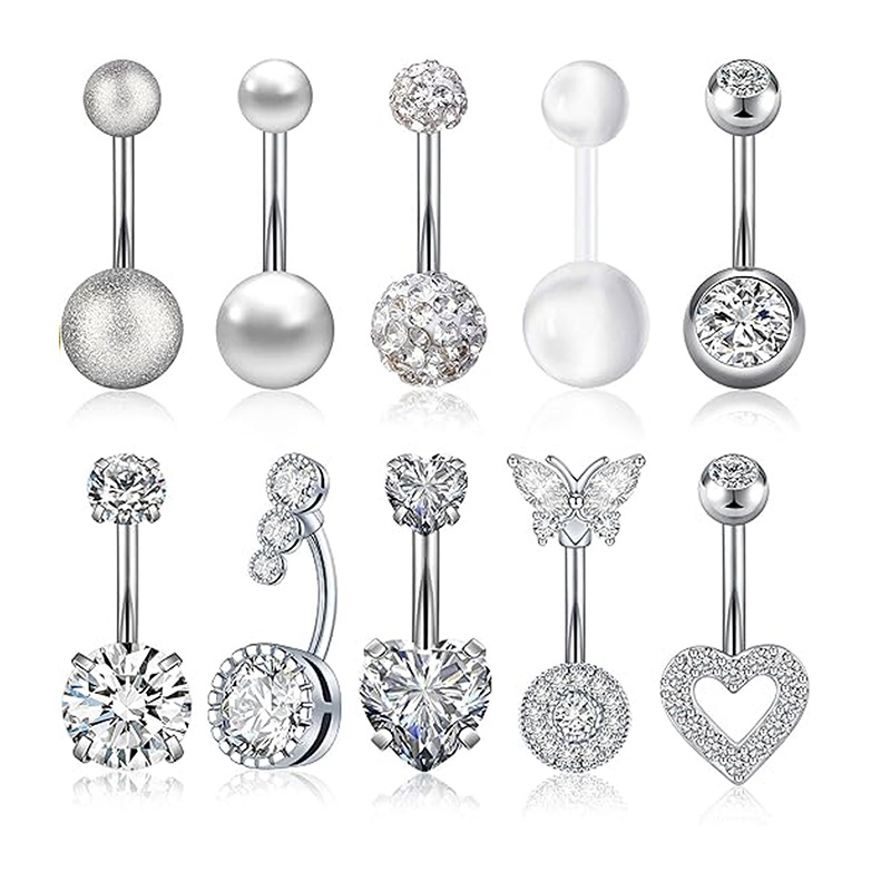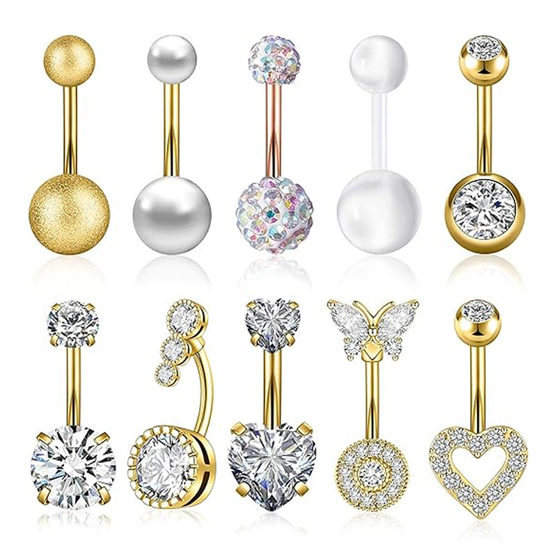 Aço inoxidável 304 piercing para umbigo, with Concha de resina, banhado, 10 peças & unissex & micro pavimento em zircônia cúbica, Mais cores pare escolha, belly ring rod size 1.6x10mm, vendido por Defina