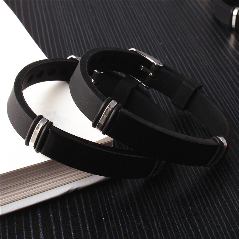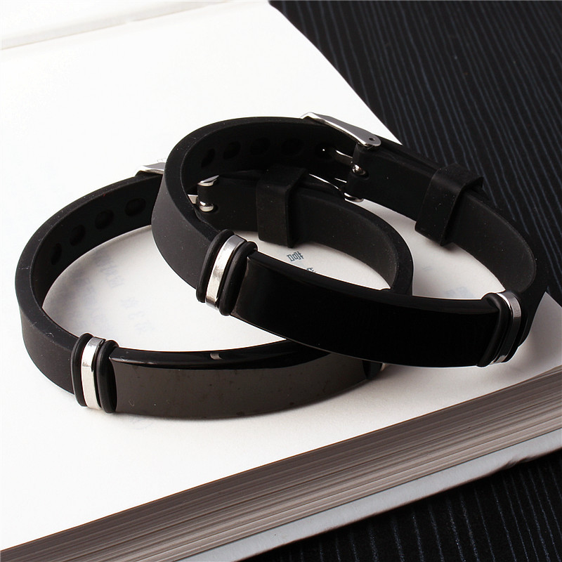 Aço inoxidável 304 pulseira, with silicone, joias de moda & unissex, preto, comprimento Aprox 8-9 inchaltura, vendido por PC