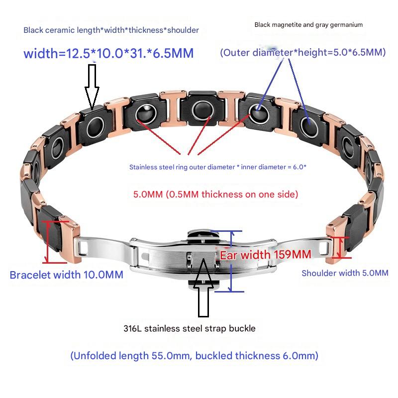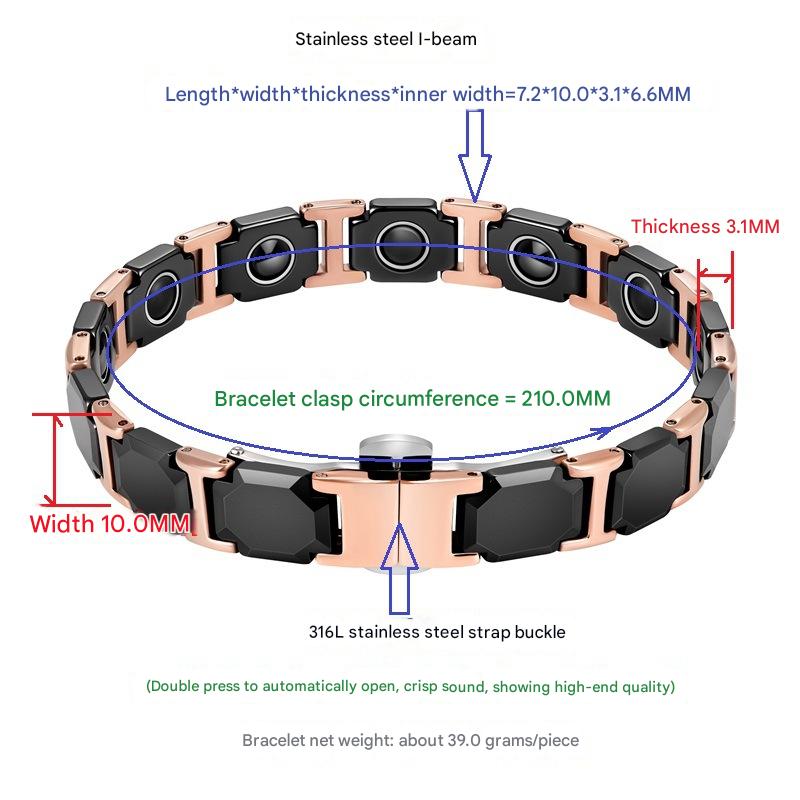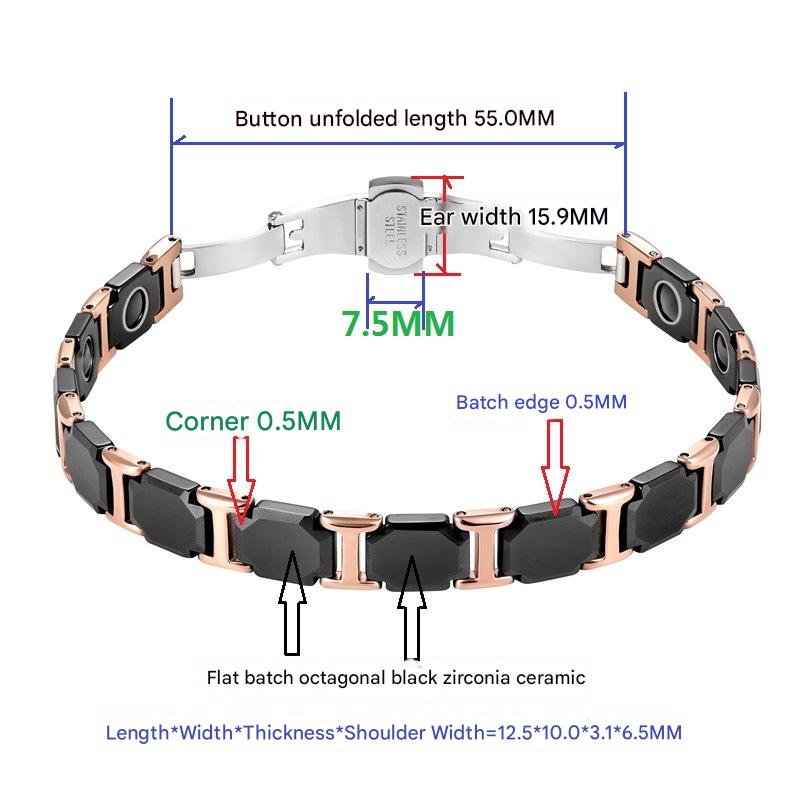 Aço inoxidável 304 pulseira, with Black+Magnetic+Stone Preto +Magnetic + Stone & porcelana & Aço inoxidável 316L, joias de moda & para mulher, comprimento Aprox 8.3 inchaltura, vendido por PC