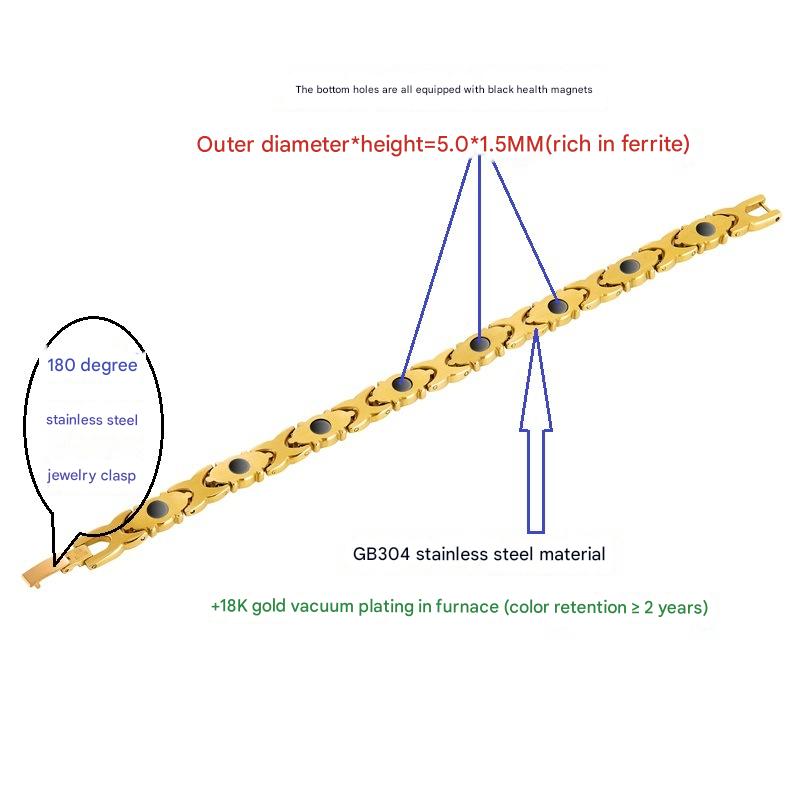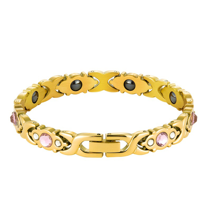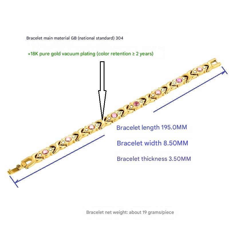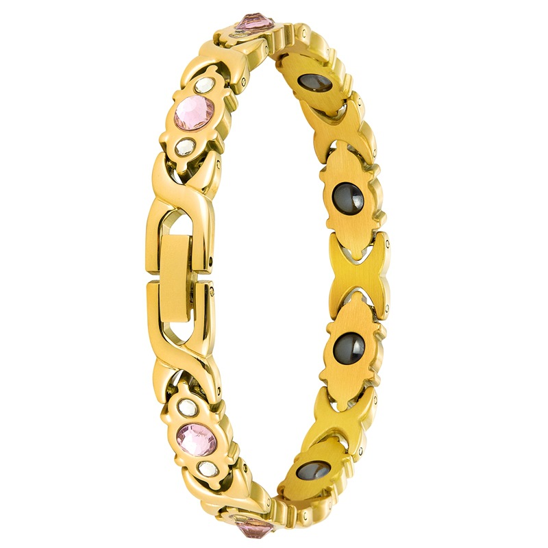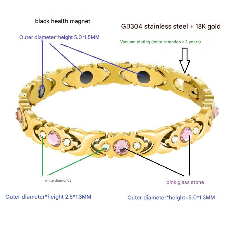 Aço inoxidável 304 pulseira, with Black+Magnetic+Stone Preto +Magnetic + Stone & vidro, para mulher & com strass, dourado, comprimento Aprox 7.7 inchaltura, vendido por PC
