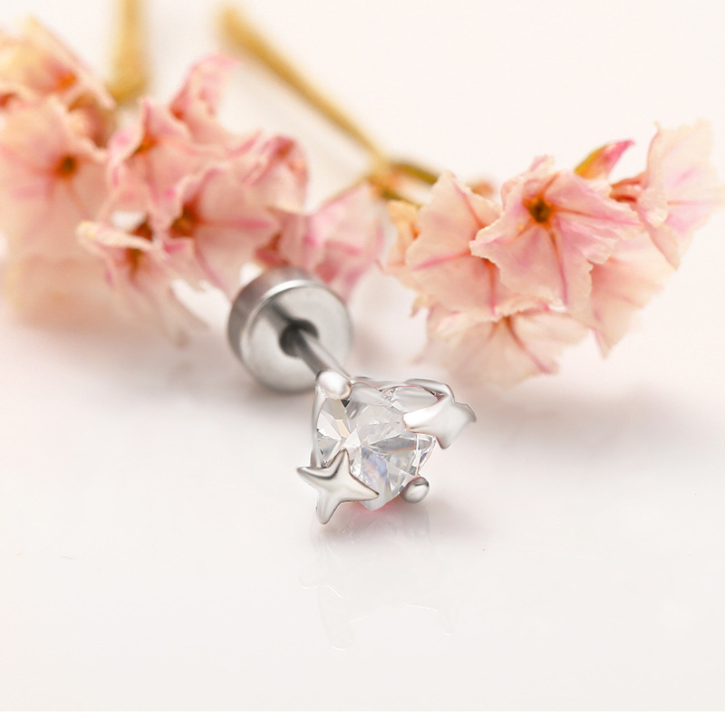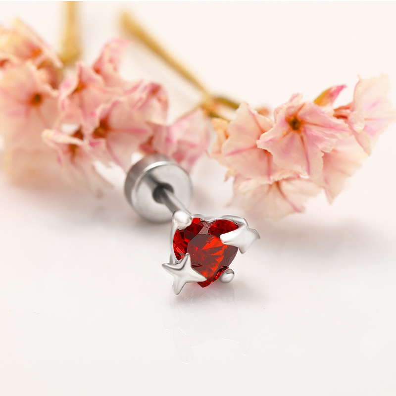 Aço inoxidável 316L piercing para orelha, Coração, unissex & com zircônia cúbica, Mais cores pare escolha, earring rod size 0.8x6mm, round size 4mm, vendido por PC