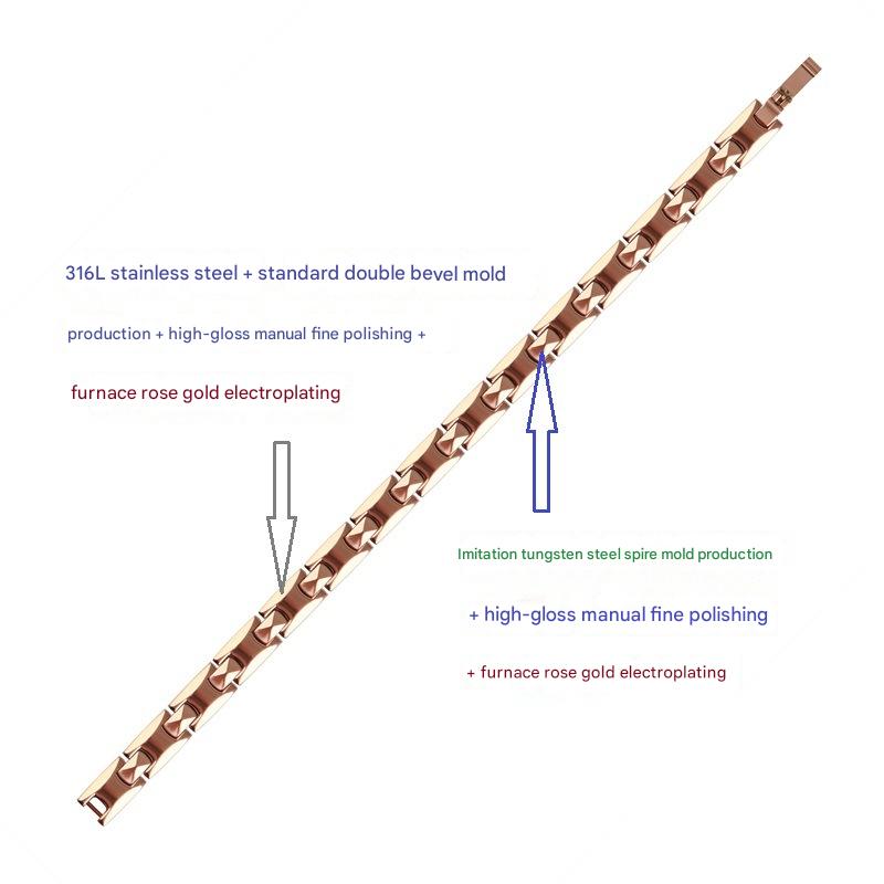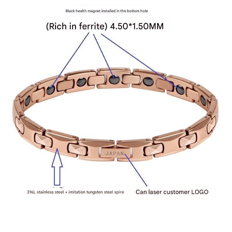 Aço inoxidável 316L pulseira, with Black+Magnetic+Stone Preto +Magnetic + Stone, joias de moda & para mulher, rosa dourado, comprimento Aprox 7.7 inchaltura, vendido por PC