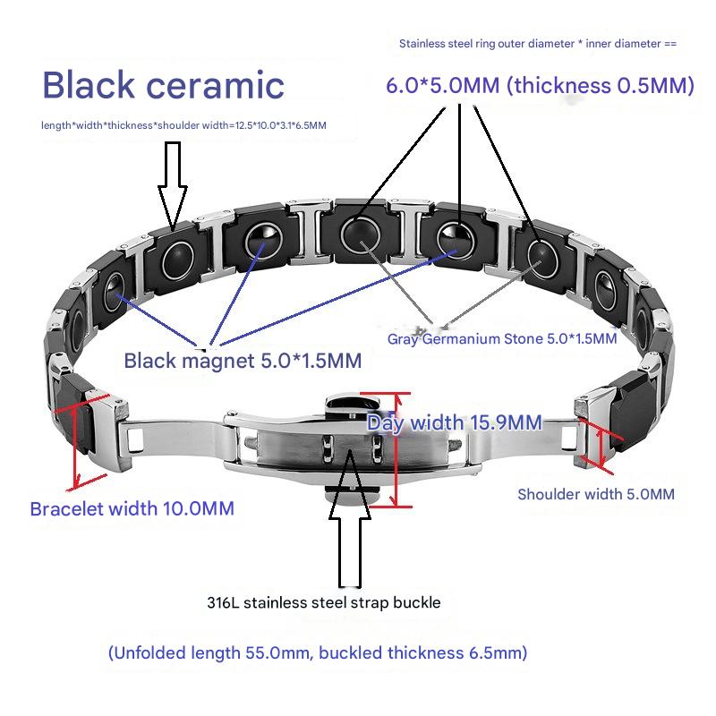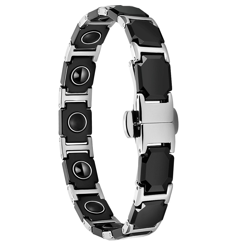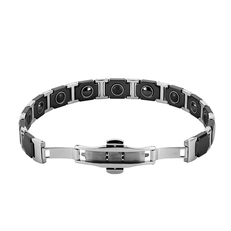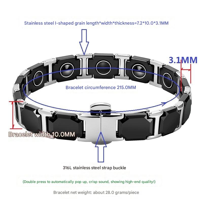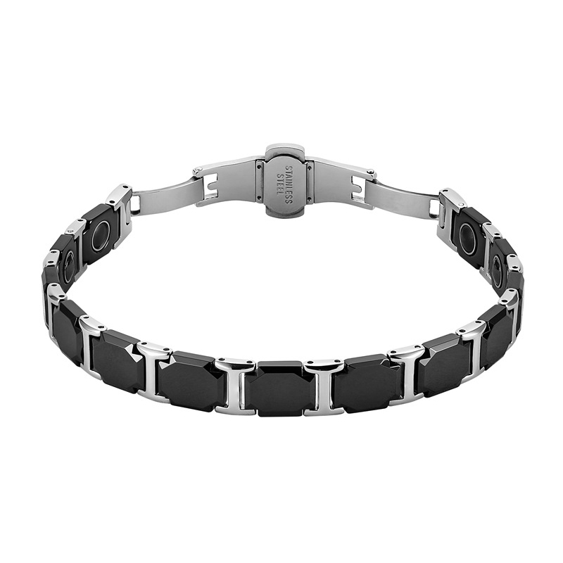 Aço inoxidável 316L pulseira, with Black+Magnetic+Stone Preto +Magnetic + Stone & porcelana, polido, joias de moda & para mulher, comprimento Aprox 8.5 inchaltura, vendido por PC