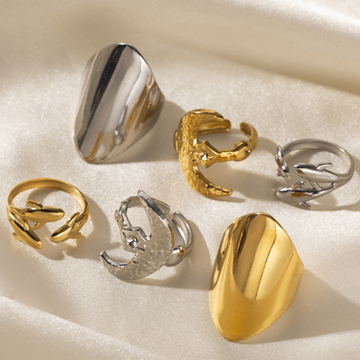 Anel de dedo de aço de partículas, Partículas de aço, cromado de cor dourada, joias de moda, Mais cores pare escolha, vendido por PC
