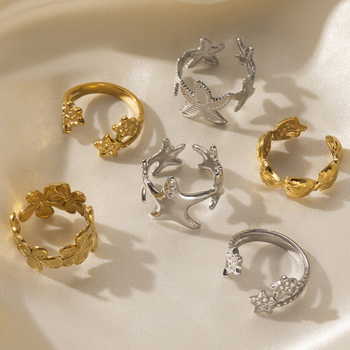 Anel de dedo de aço de partículas, Partículas de aço, cromado de cor dourada, joias de moda, Mais cores pare escolha, vendido por PC