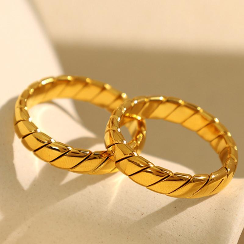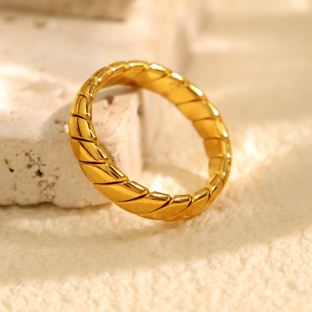 Anel de dedo de aço inoxidável, Aço inoxidável 304, banhado, joias de moda & tamanho diferente para a escolha & para mulher, dourado, vendido por PC
