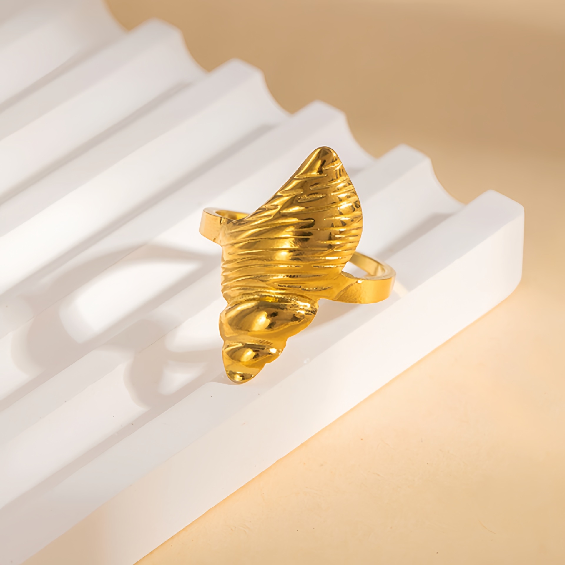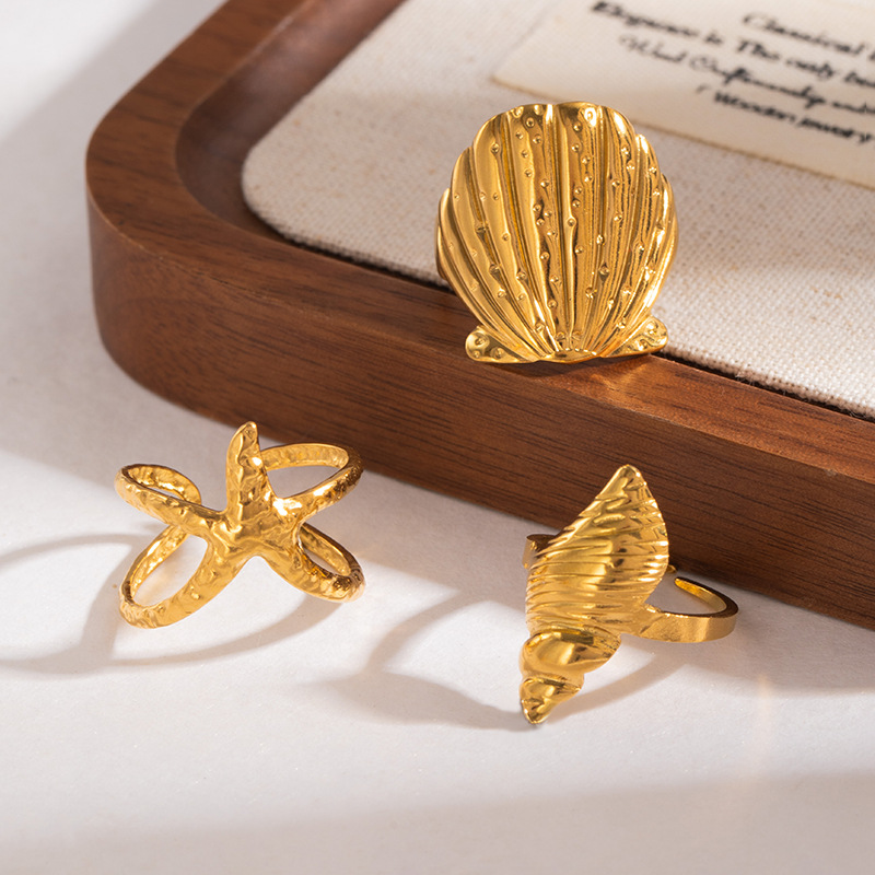 Anel de dedo de aço inoxidável, Aço inoxidável 304, with Concha de resina, banhado, joias de moda & para mulher, dourado, vendido por PC
