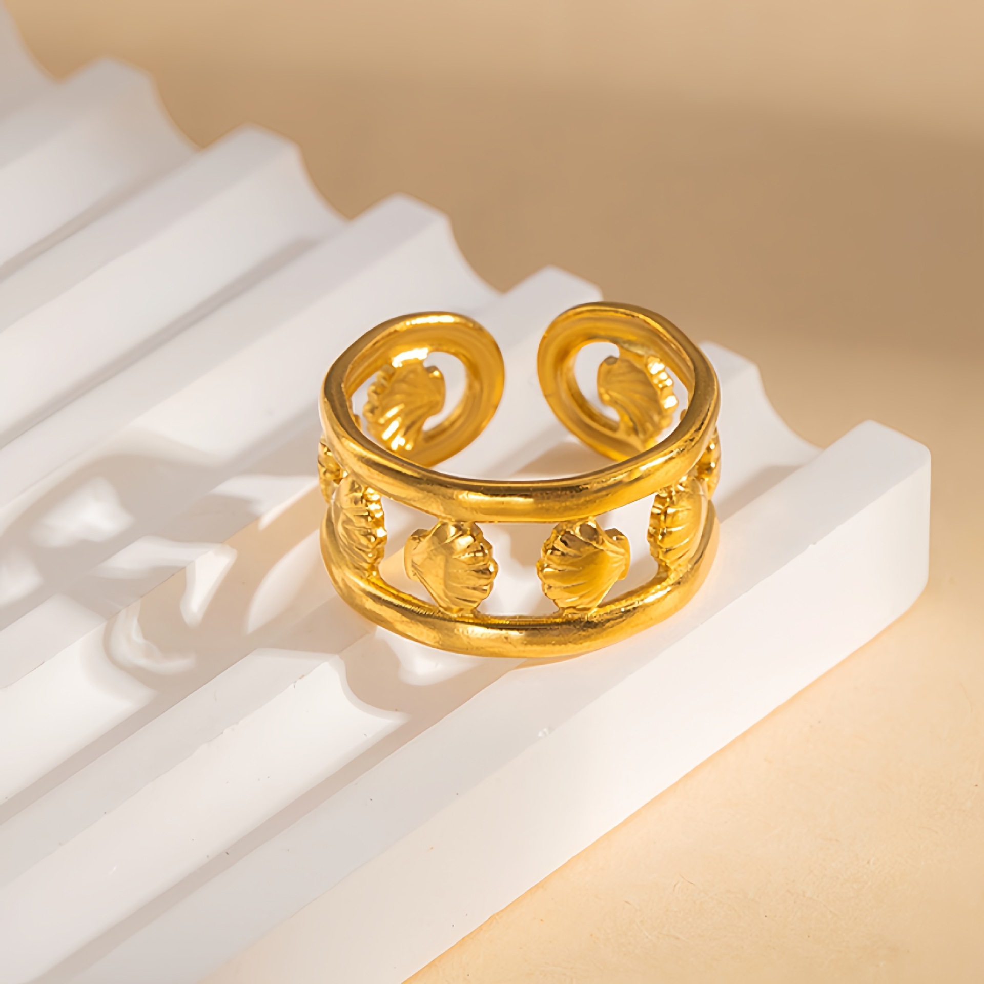 Anel de dedo de aço inoxidável, Aço inoxidável 304, banhado, Vario tipos a sua escolha & para mulher & vazio, dourado, vendido por PC