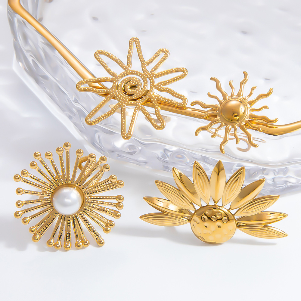 Anel de dedo de aço inoxidável, Aço inoxidável 304, banhado, joias de moda & Vario tipos a sua escolha & para mulher, dourado, vendido por PC