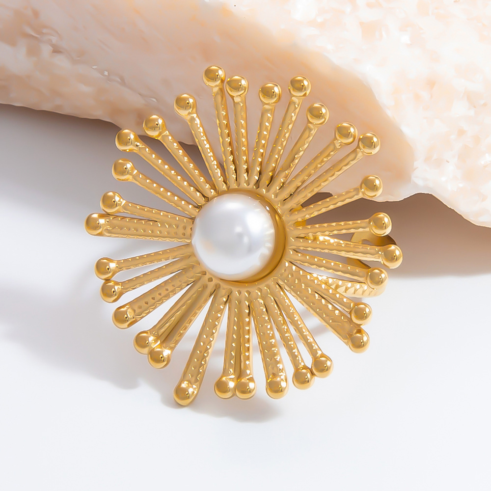 Anel de dedo de aço inoxidável, Aço inoxidável 304, with Concha de resina, banhado, joias de moda & para mulher, dourado, vendido por PC