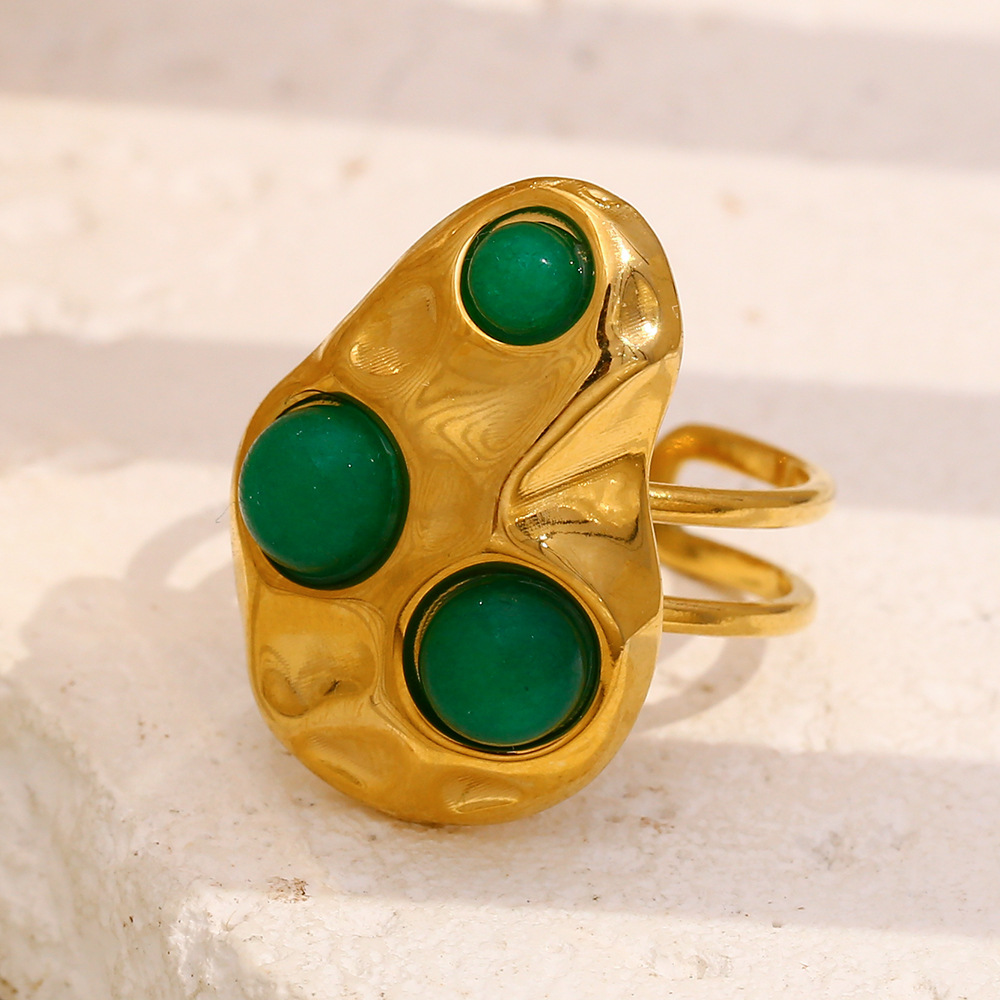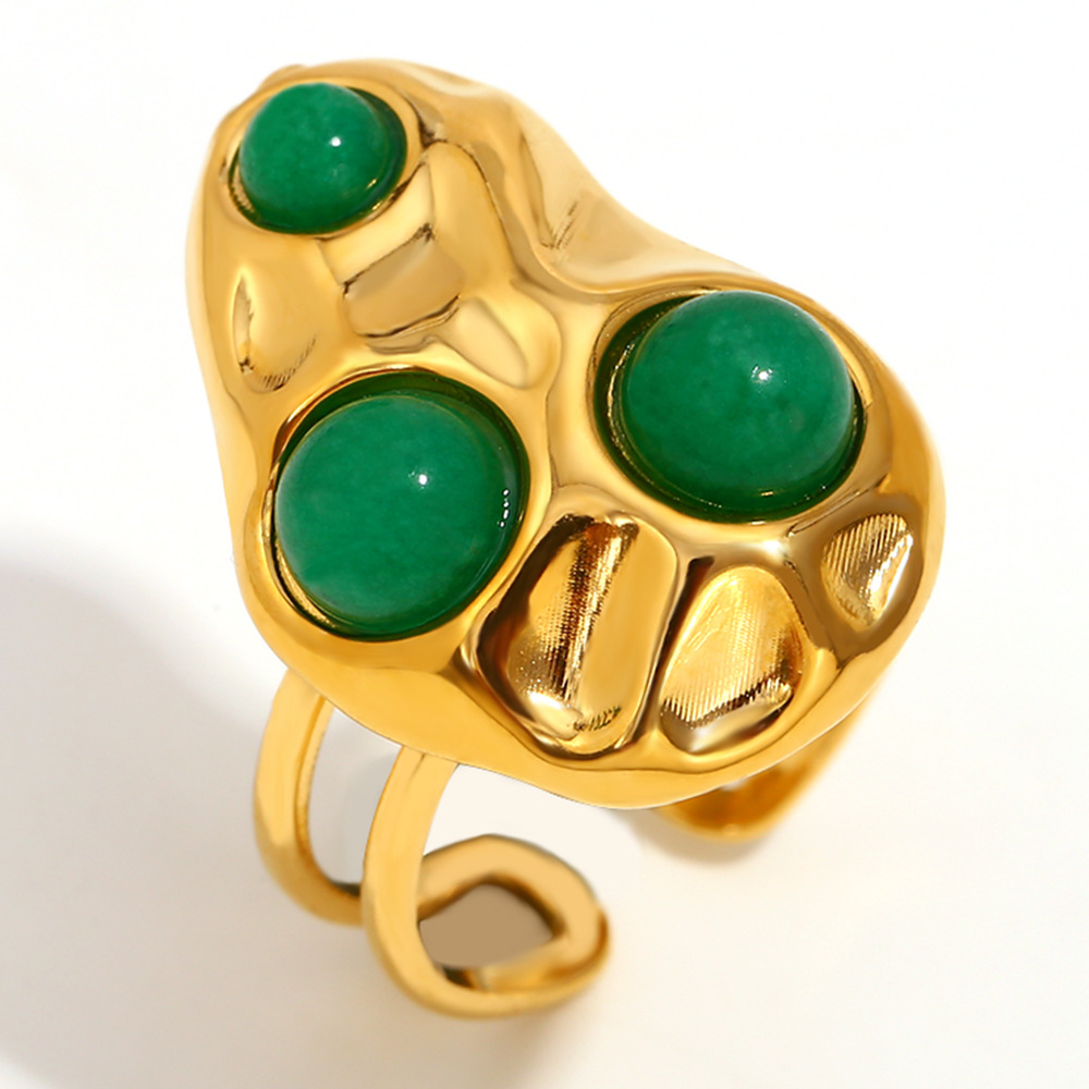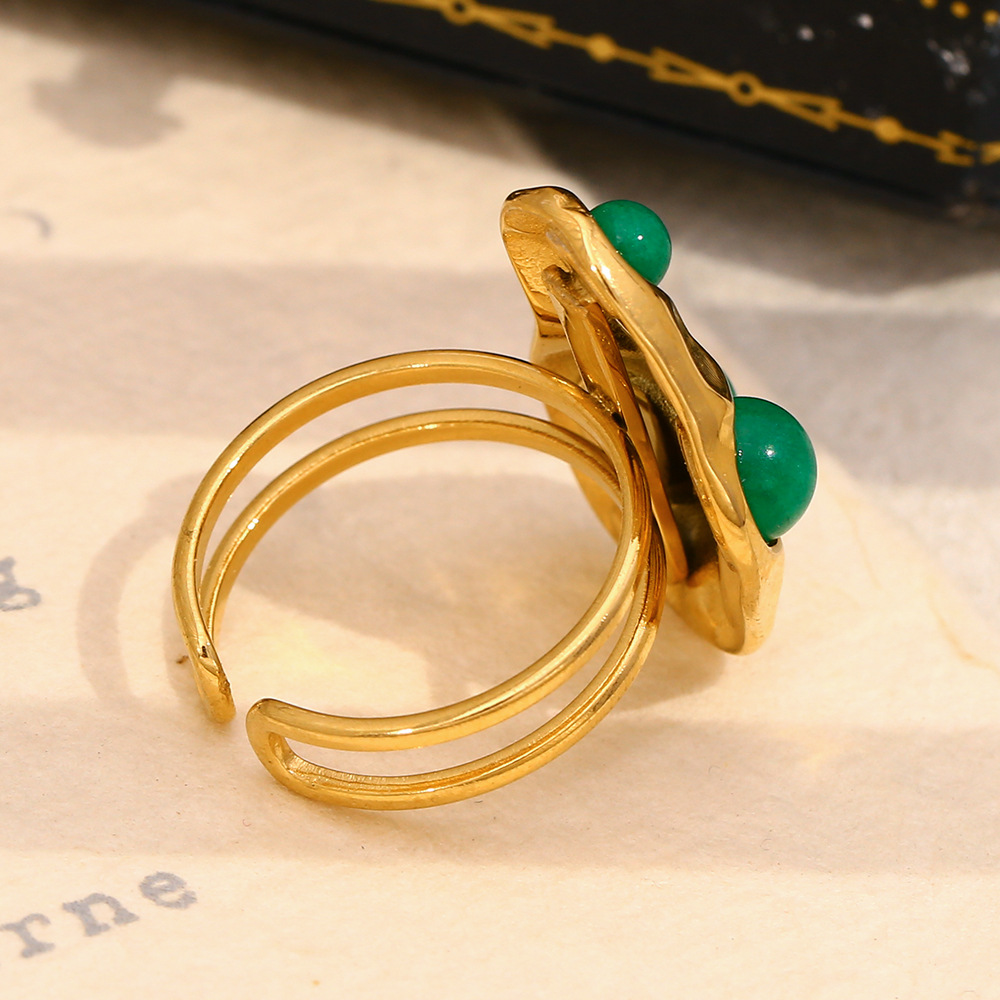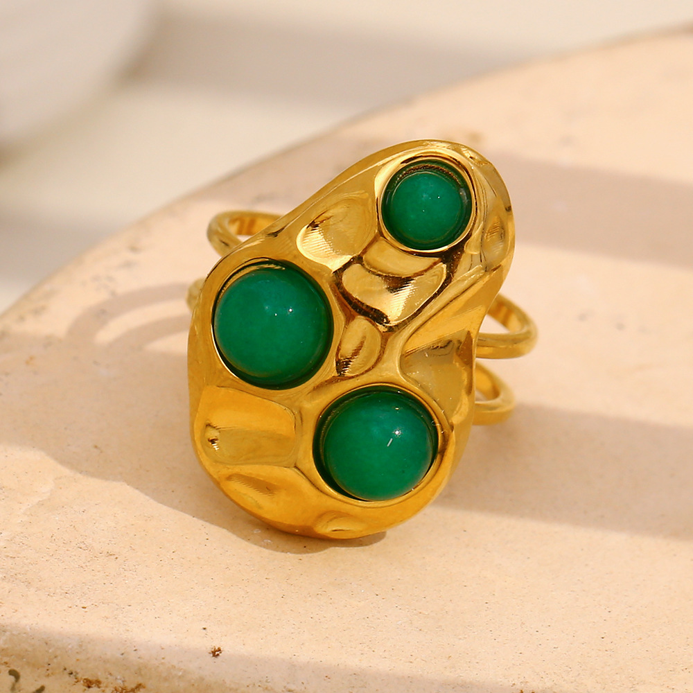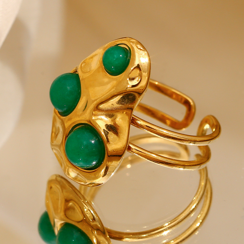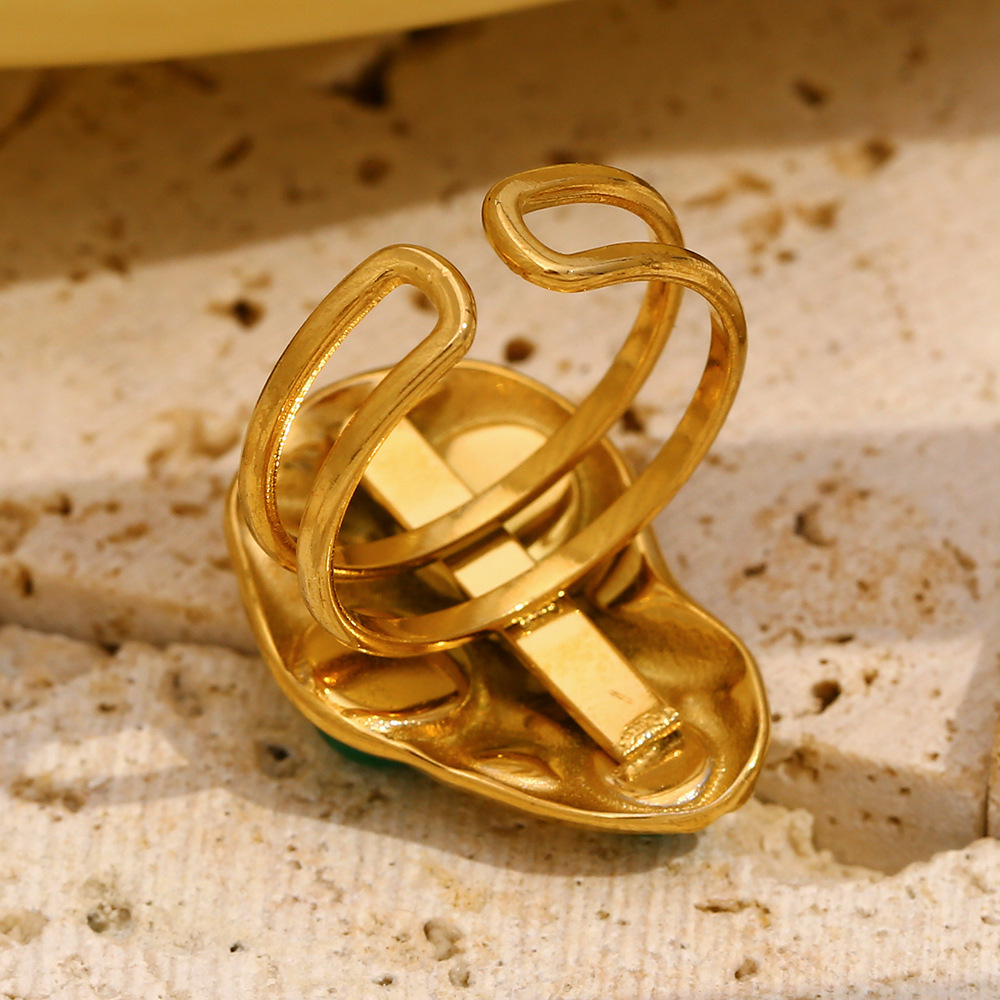 Anel de dedo de aço inoxidável, Aço inoxidável 304, with Gemstone Sintético, 18K banhado a ouro, joias de moda & para mulher & vazio, vendido por PC
