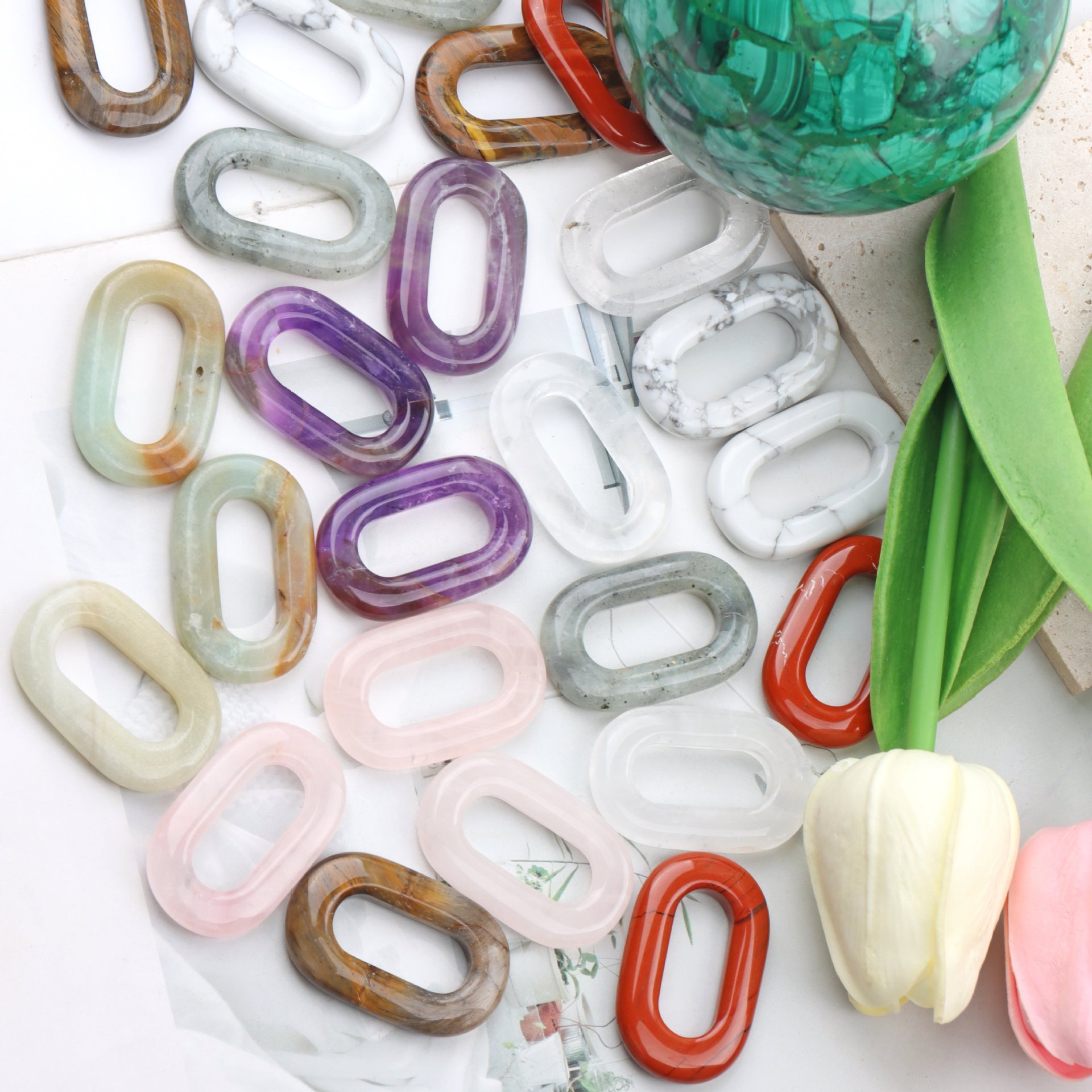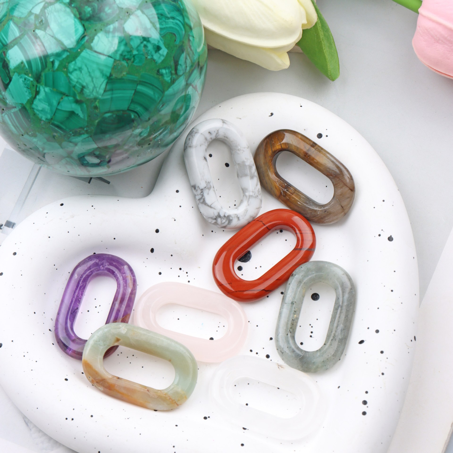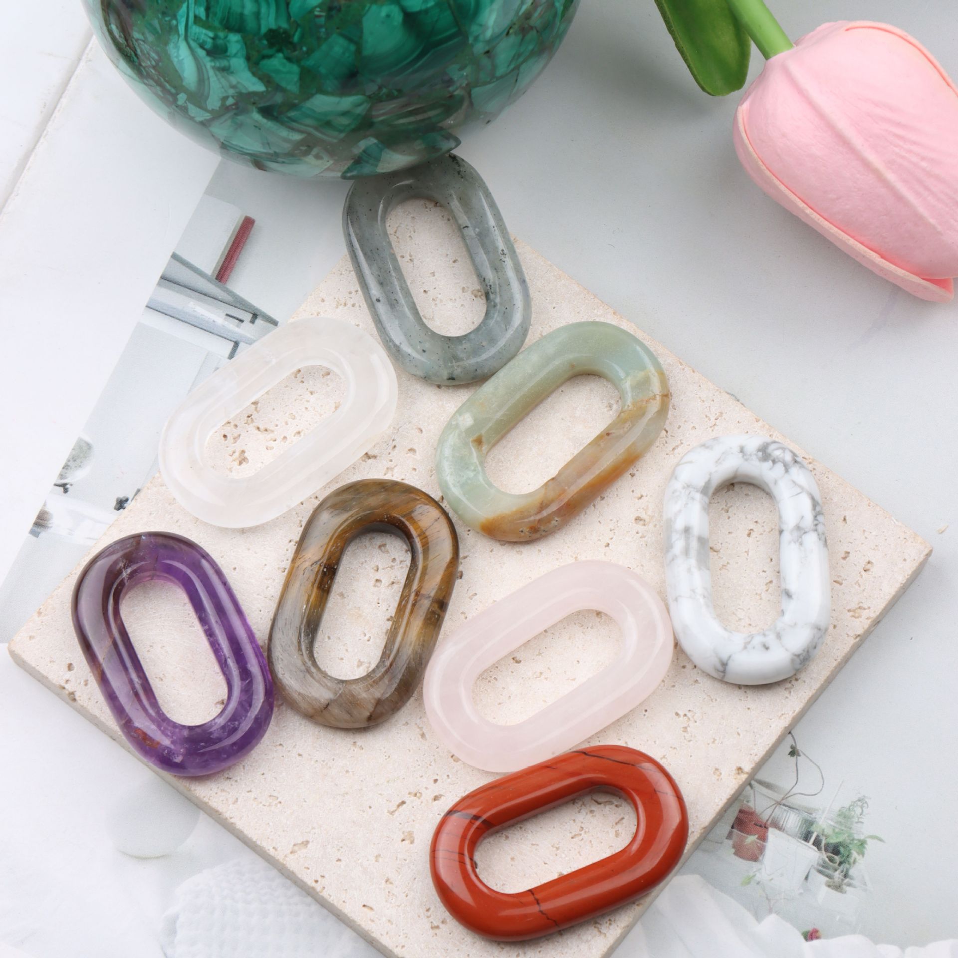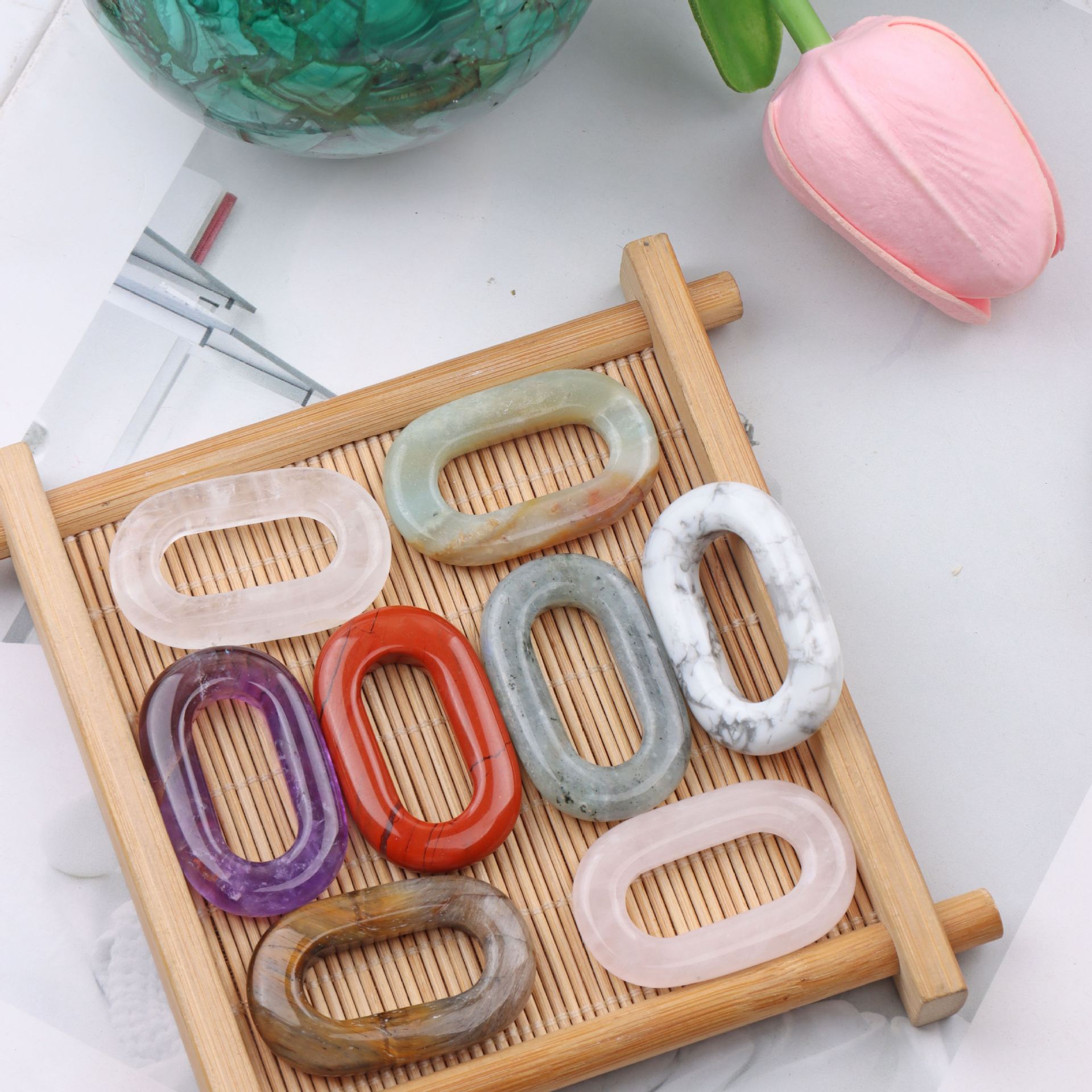 1:Amazonite2:Red stone3:Amethyst4:Rose quartz5:White pine6:White glitter7:Tiger stone8:White crystal