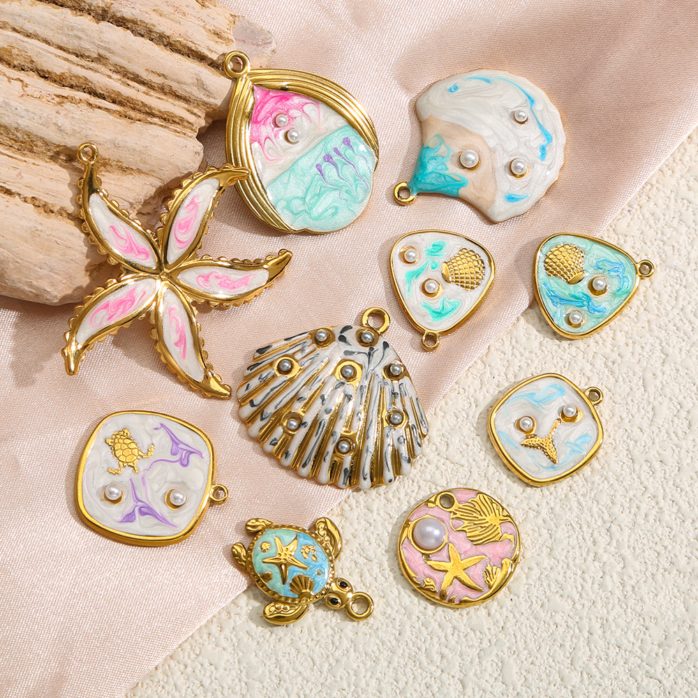 Jóias Pingentes de aço inoxidável, Aço inoxidável 304, with Concha de resina, 18K banhado a ouro, DIY & Vario tipos a sua escolha & esmalte, Mais cores pare escolha, 3PCs/Bag, vendido por Bag