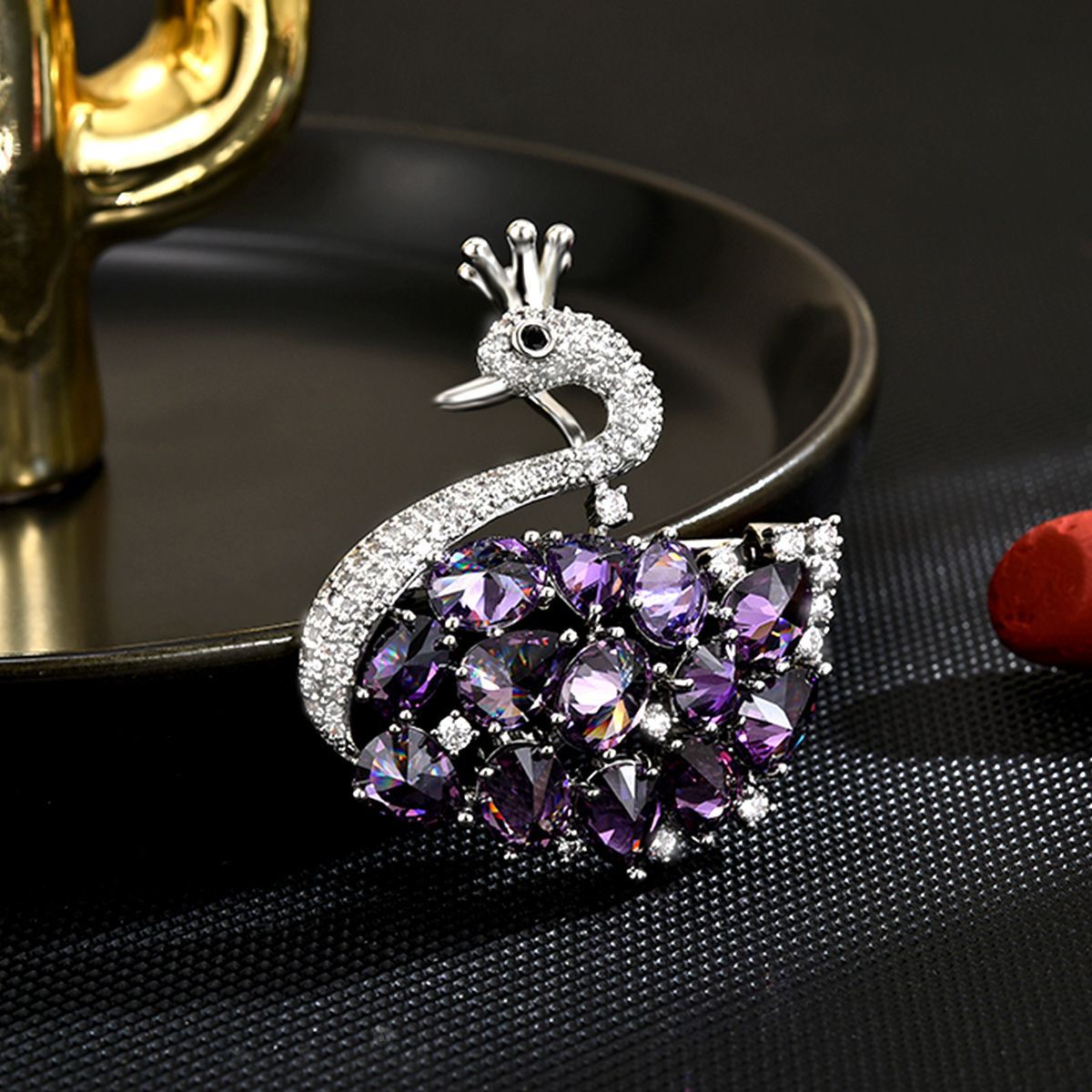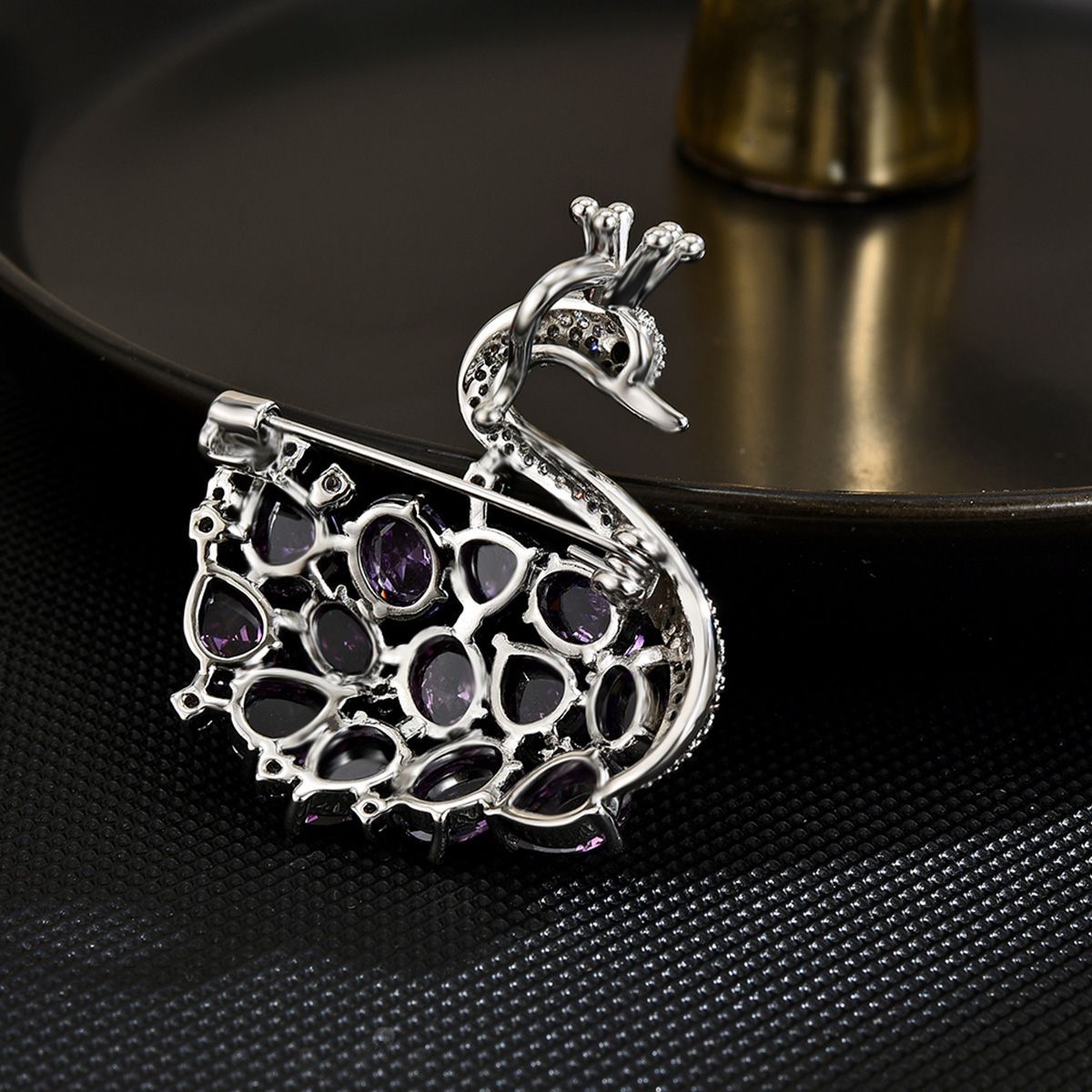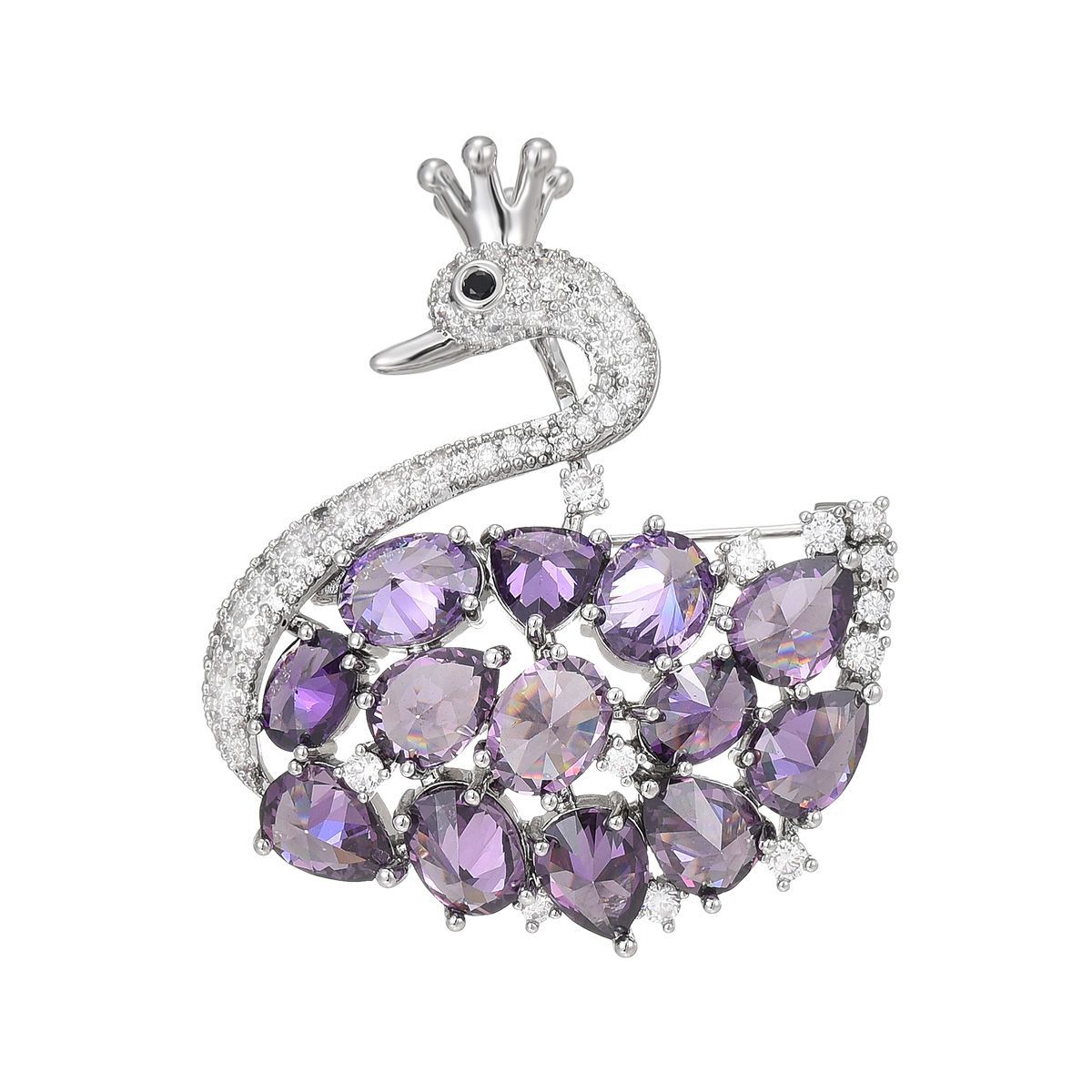 Bijuterias de broche da moda , cobre, banhado, micro pavimento em zircônia cúbica & para mulher, prateado, 42x36mm, vendido por PC