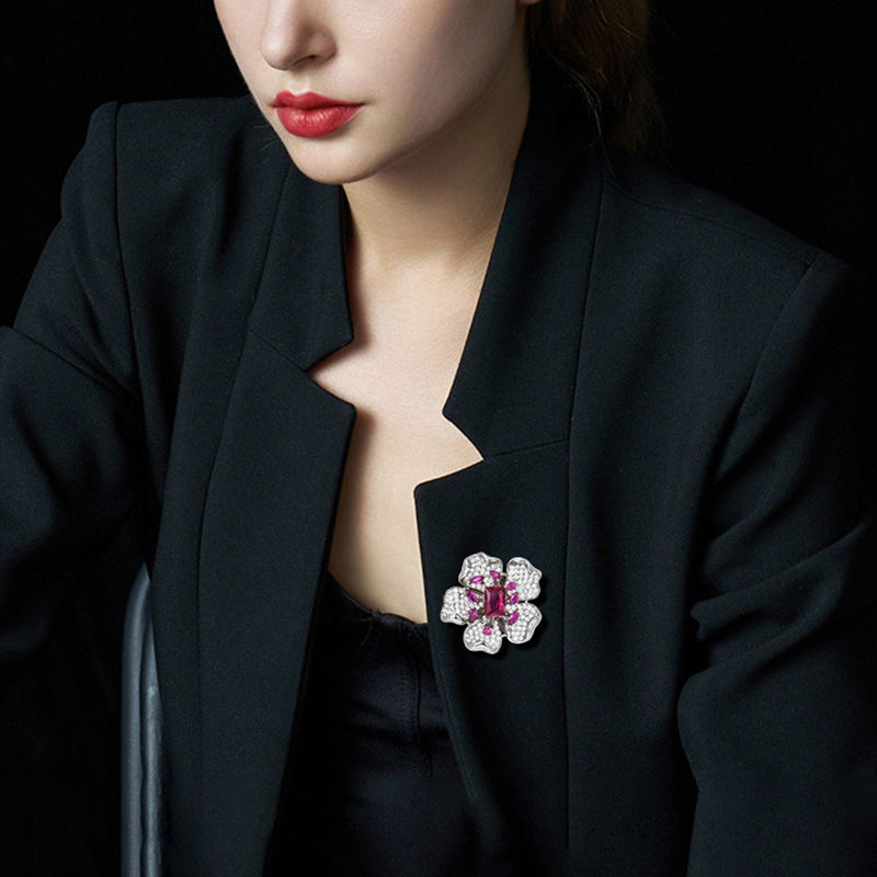 Bijuterias de broche da moda , cobre, banhado, micro pavimento em zircônia cúbica & para mulher, prateado, 23x25mm, vendido por PC