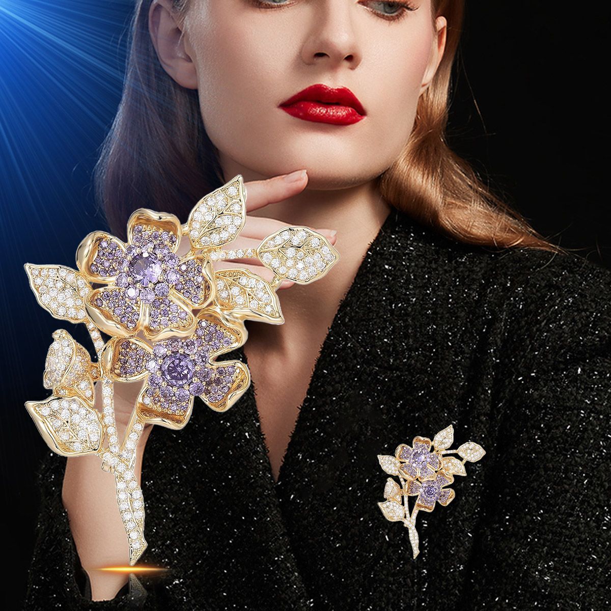 Bijuterias de broche da moda , cobre, banhado, micro pavimento em zircônia cúbica & para mulher, prateado, 53x34mm, vendido por PC