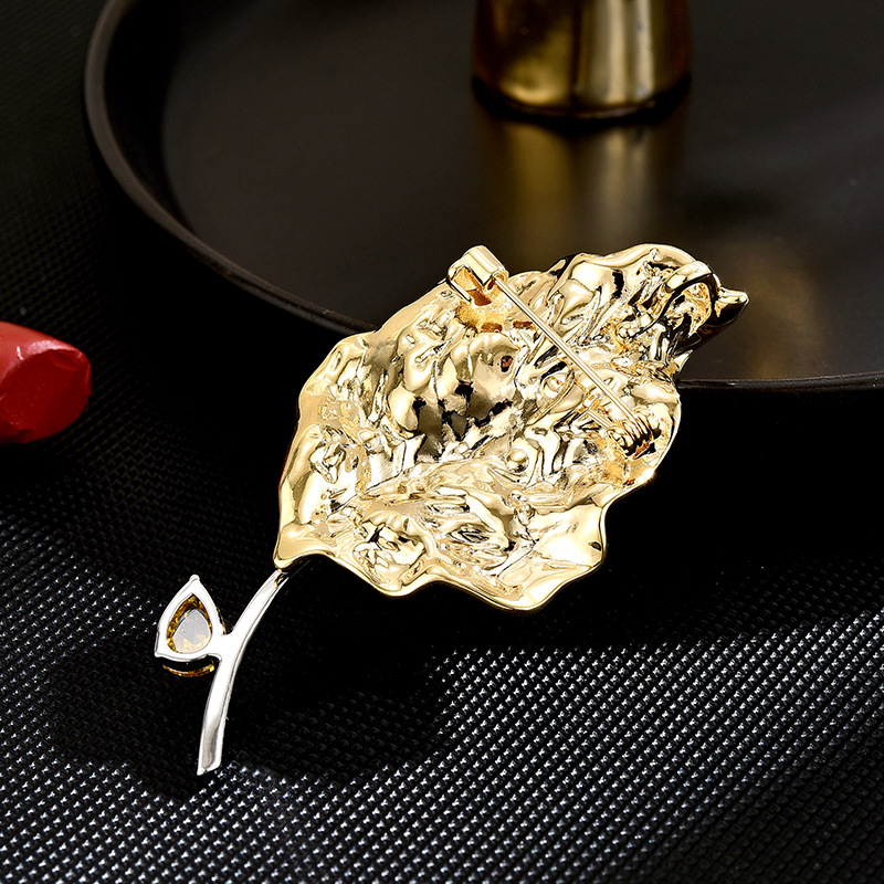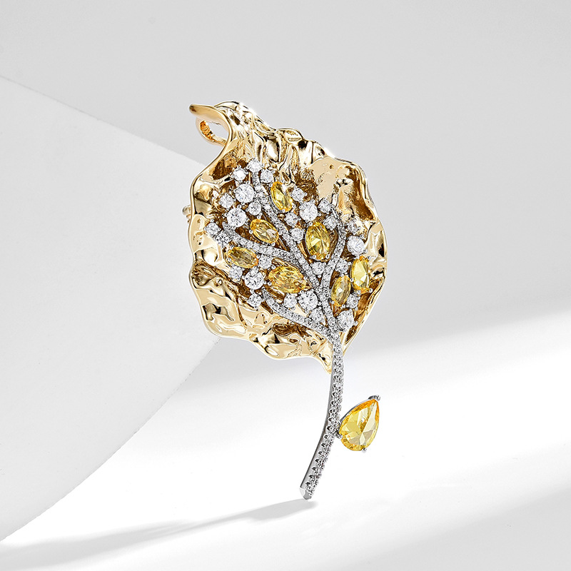 Bijuterias de broche da moda , cobre, banhado, micro pavimento em zircônia cúbica & para mulher, dourado, 64x33mm, vendido por PC