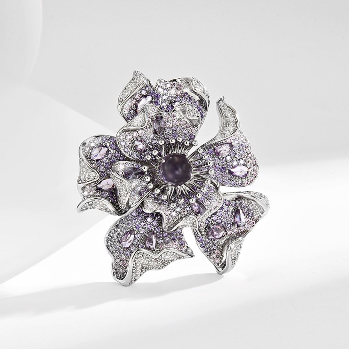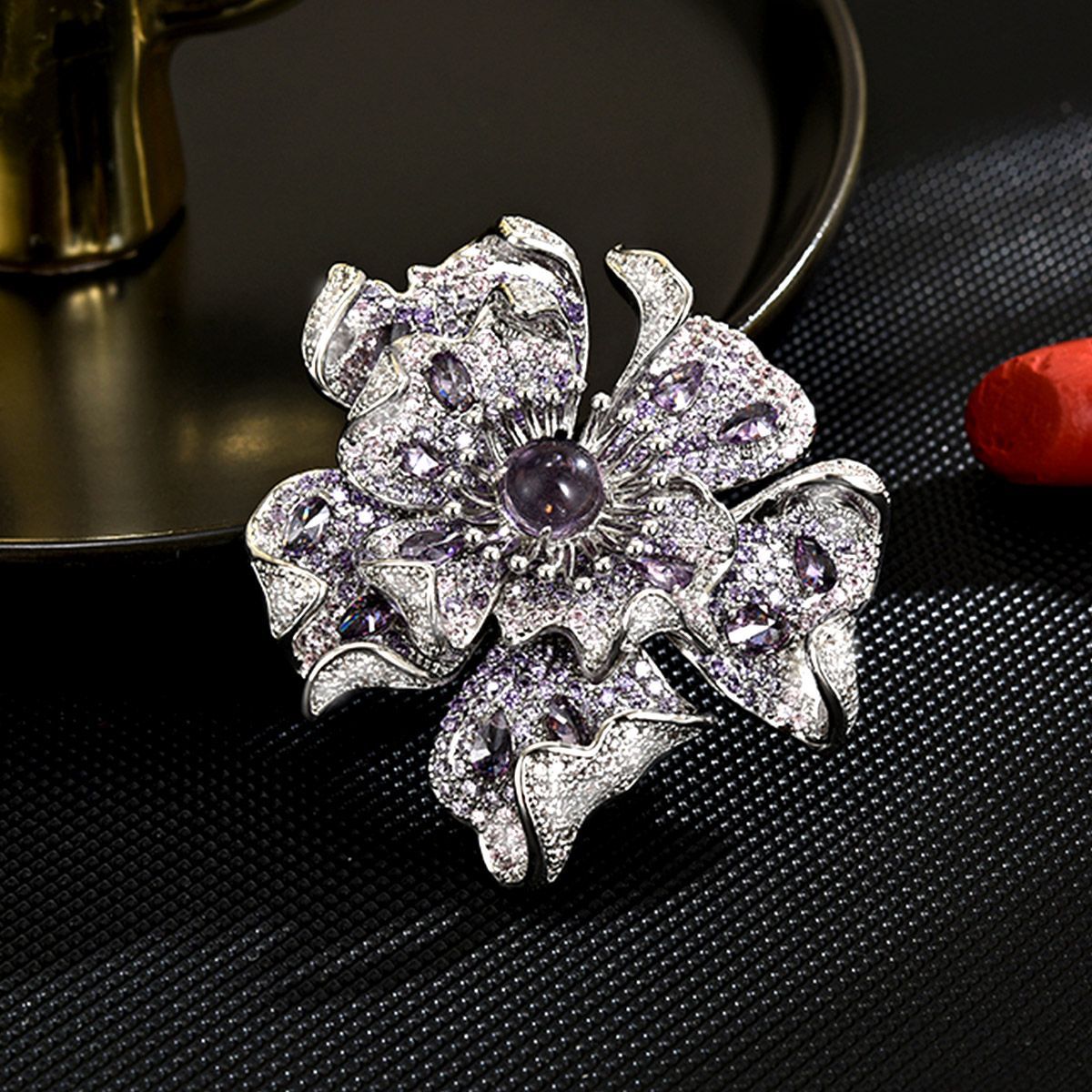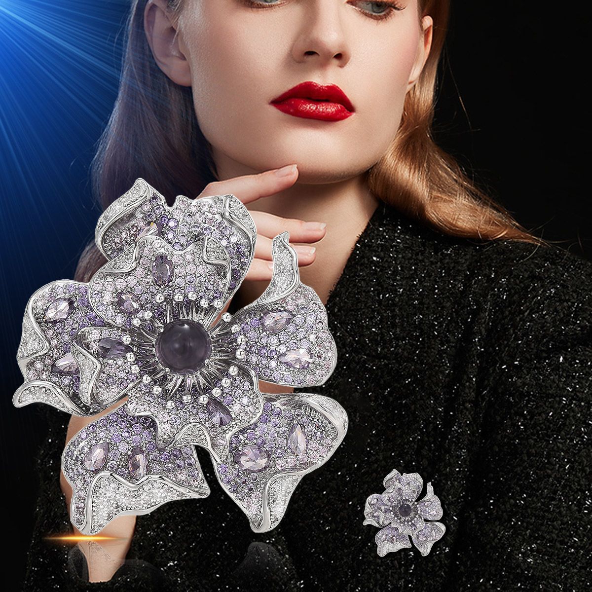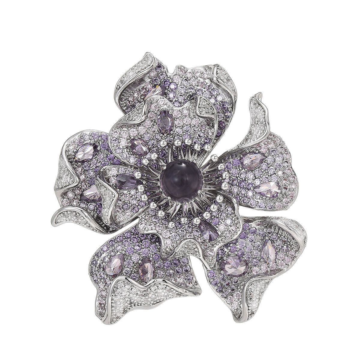 Bijuterias de broche da moda , cobre, micro pavimento em zircônia cúbica & para mulher, prateado, 50x45mm, vendido por PC