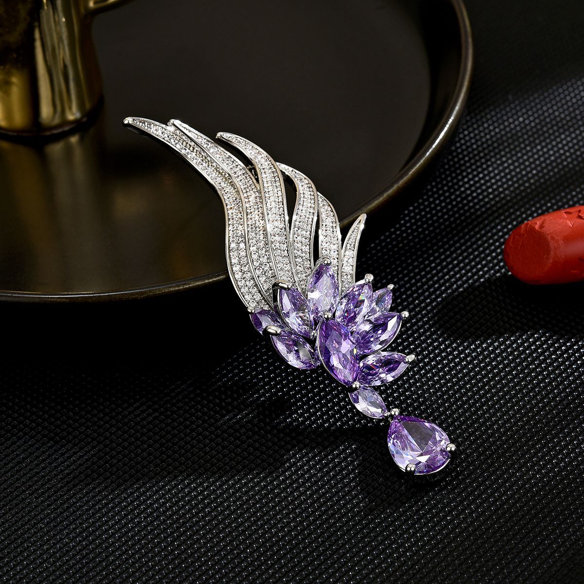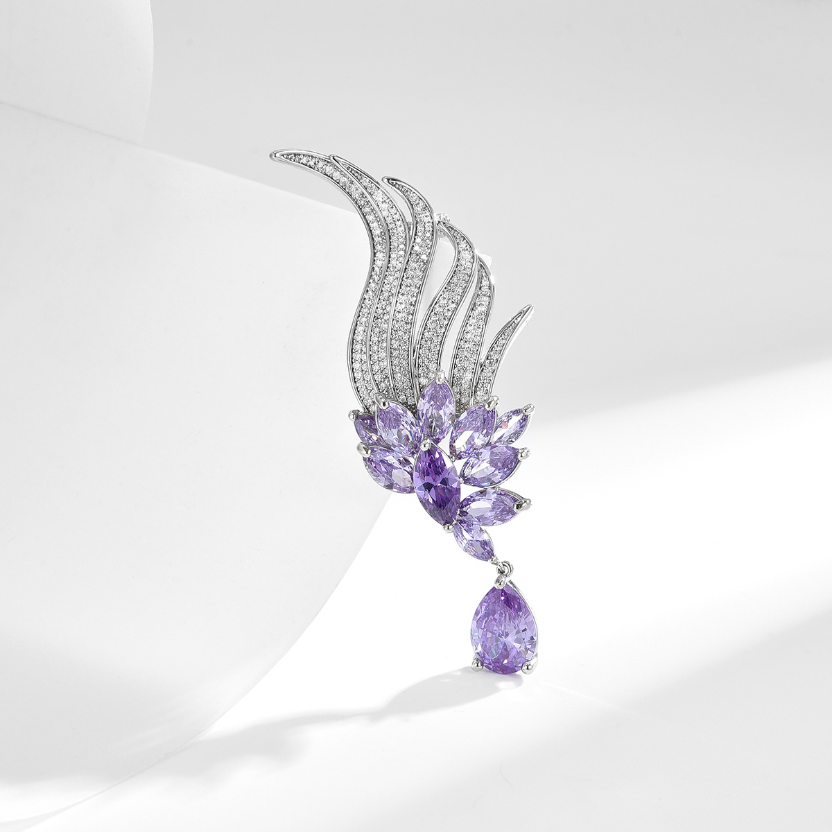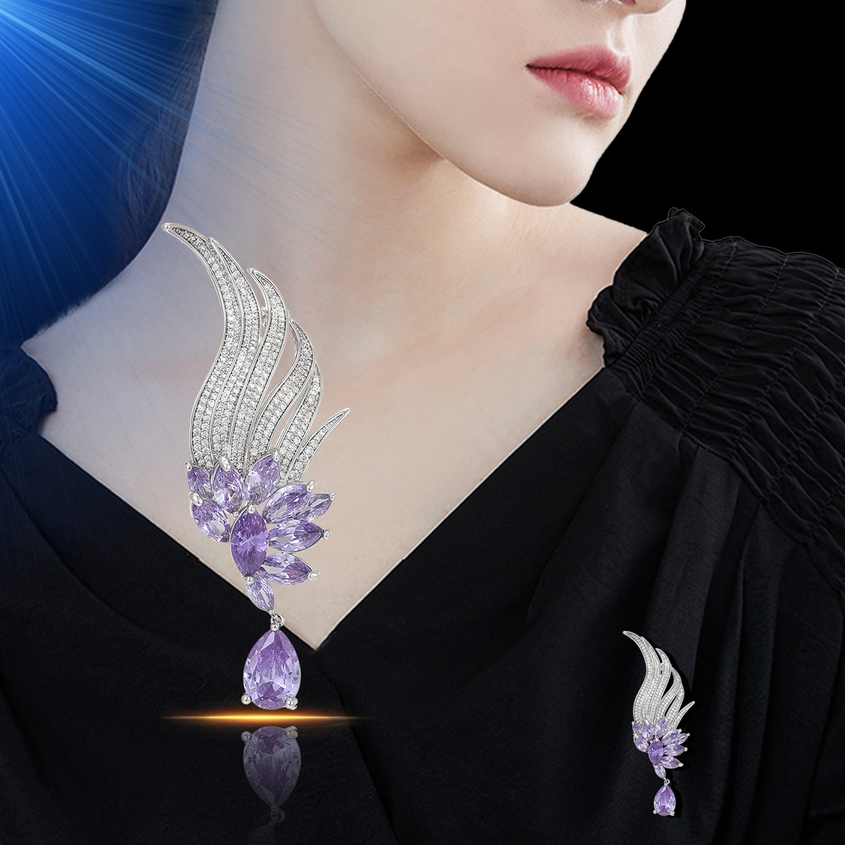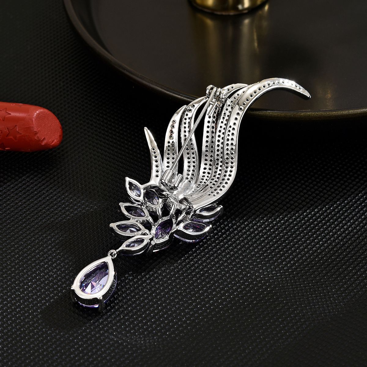Bijuterias de broche da moda , cobre, banhado, micro pavimento em zircônia cúbica & para mulher, prateado, 77x28mm, vendido por PC