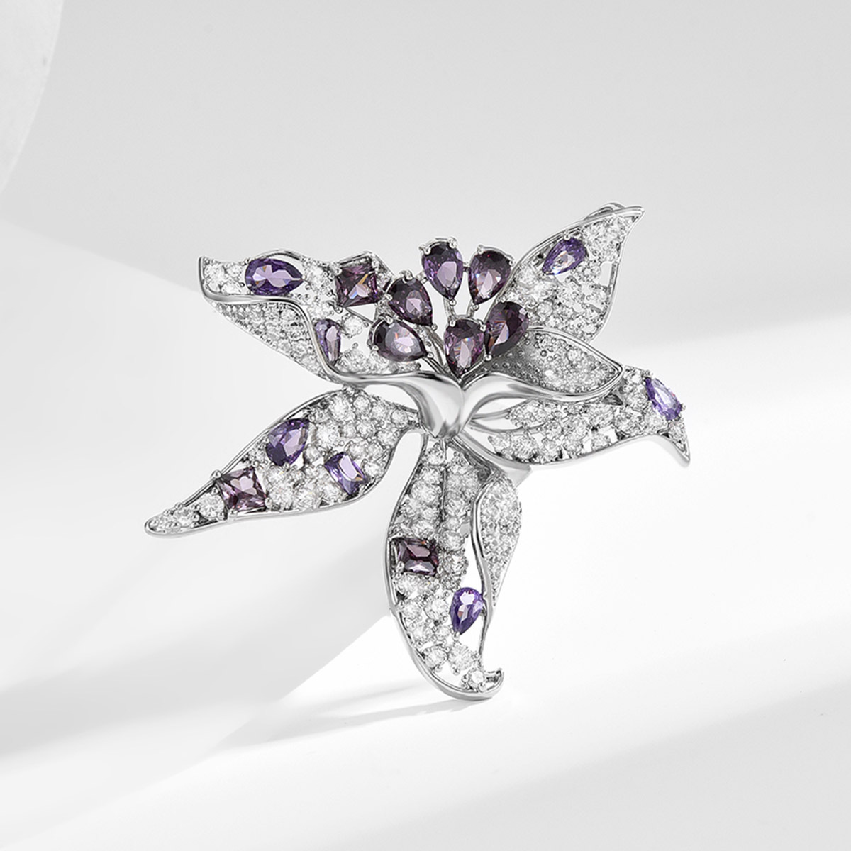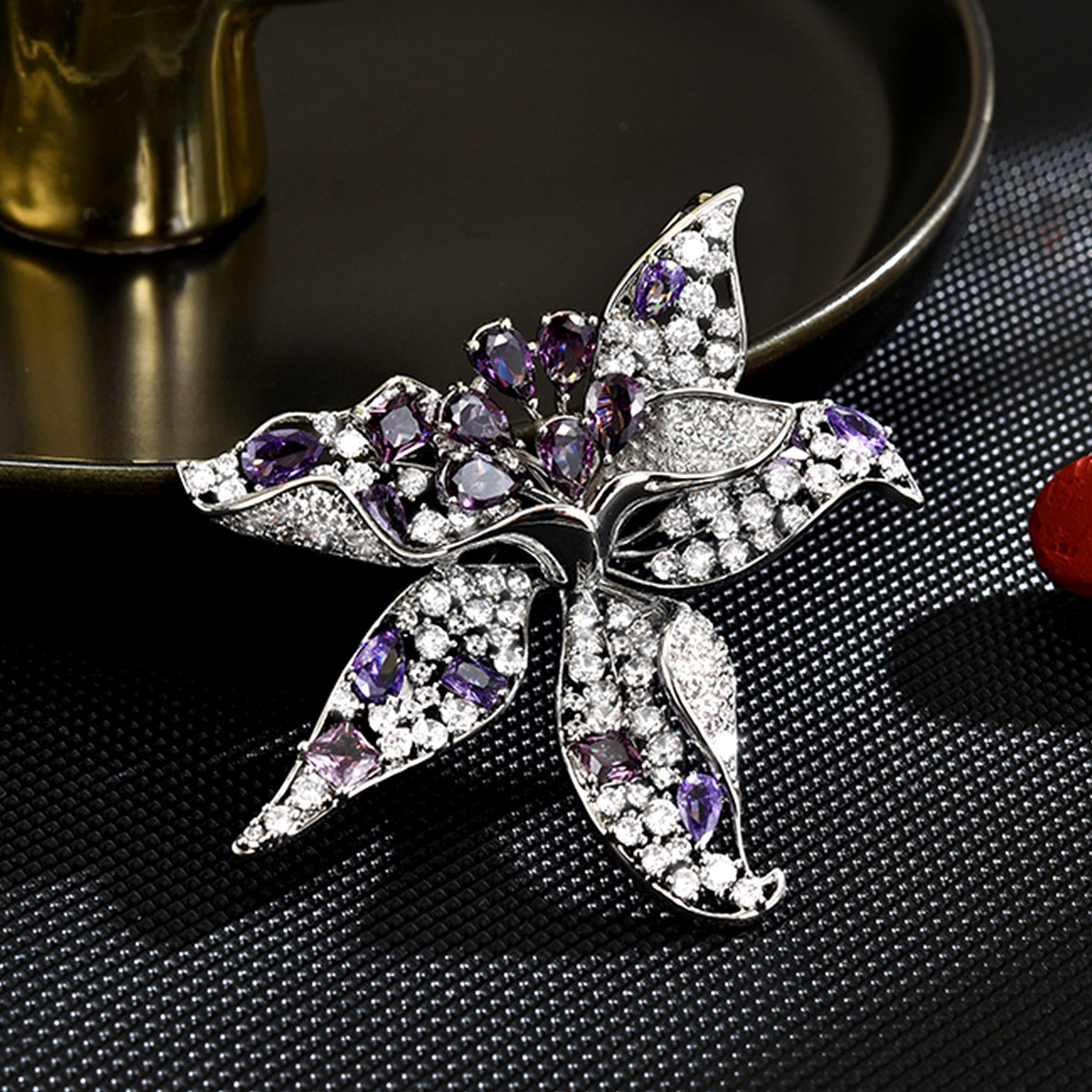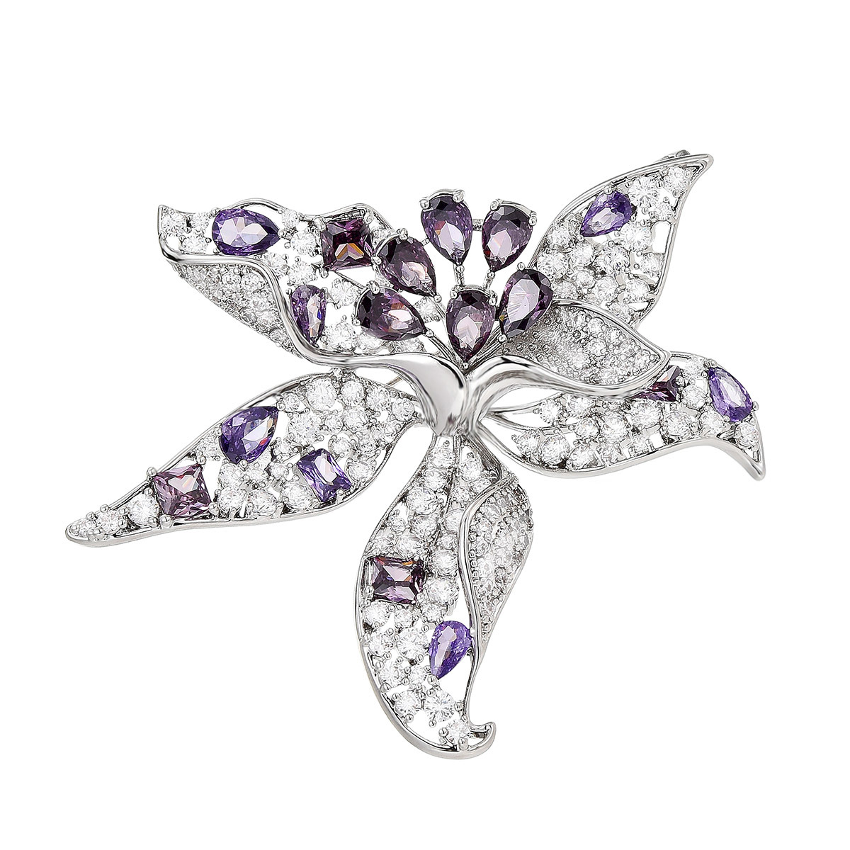Bijuterias de broche da moda , cobre, micro pavimento em zircônia cúbica & para mulher, prateado, 46x54mm, vendido por PC