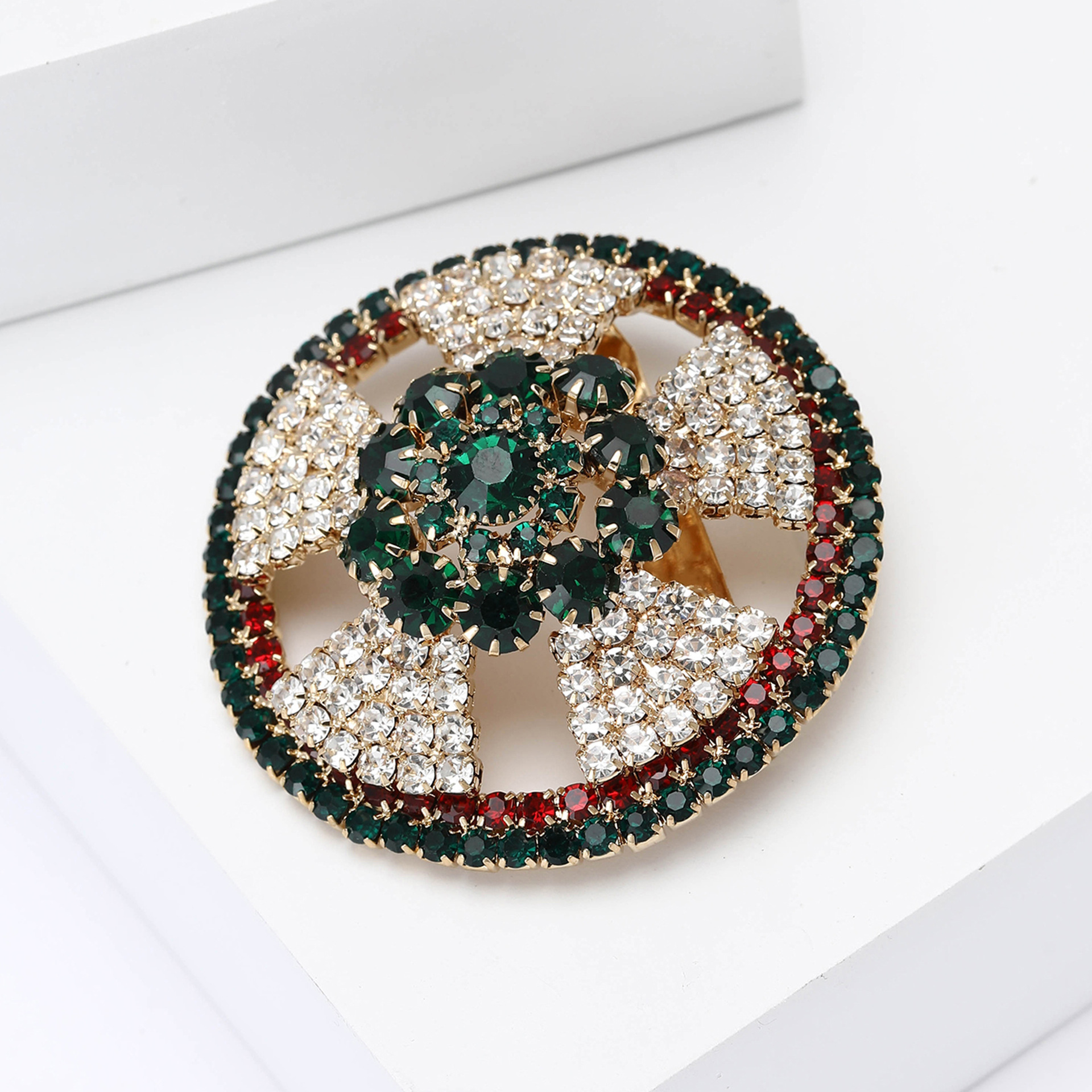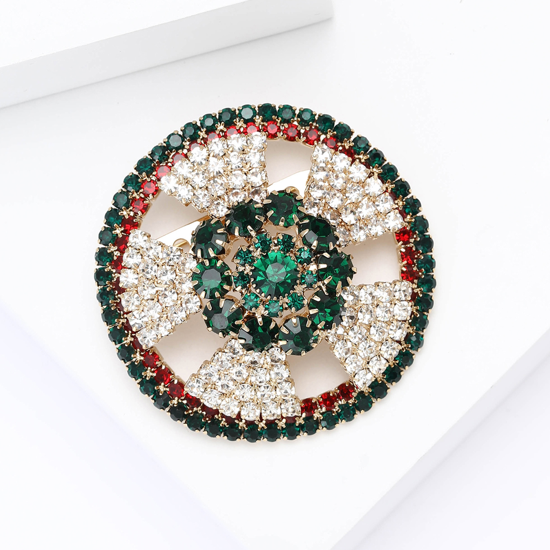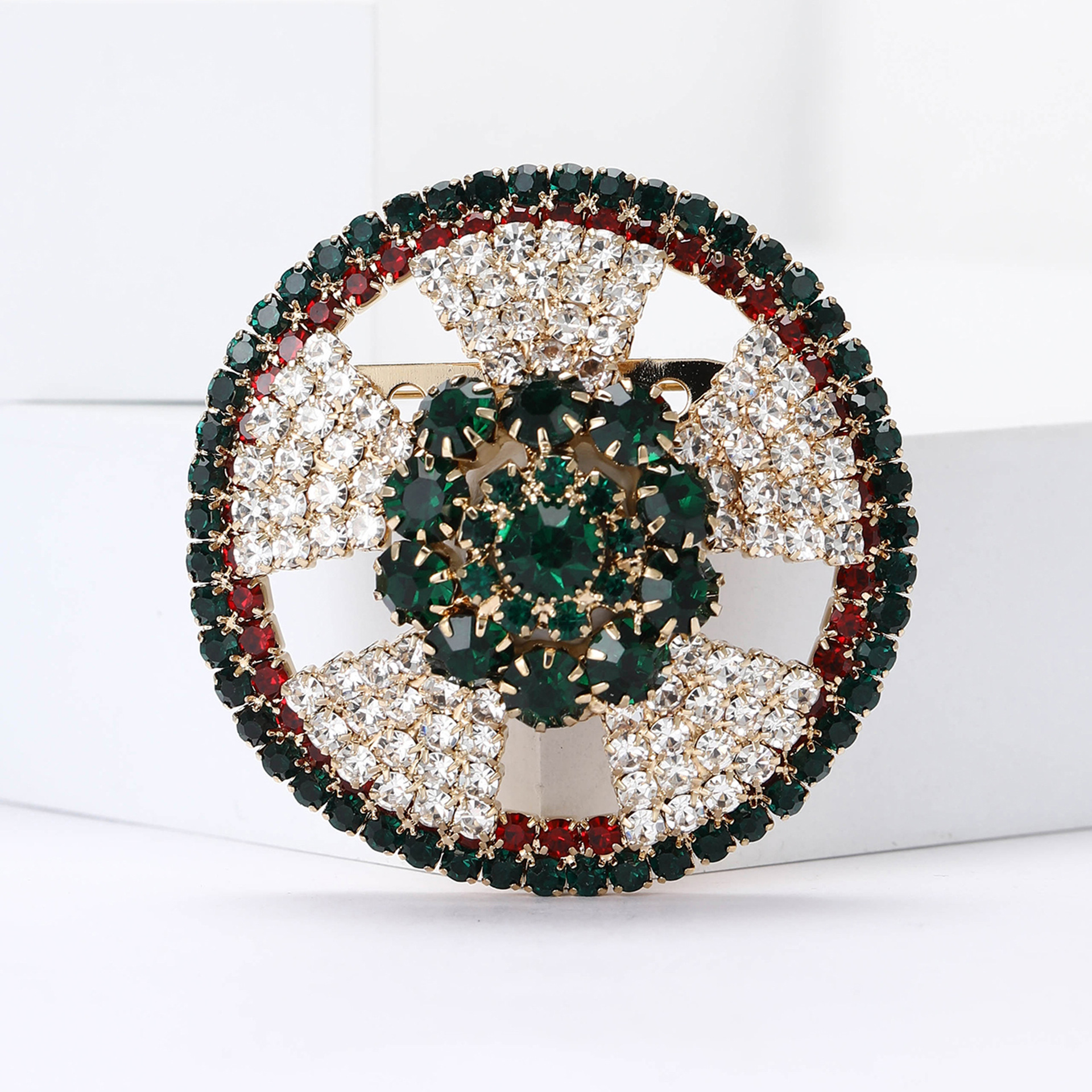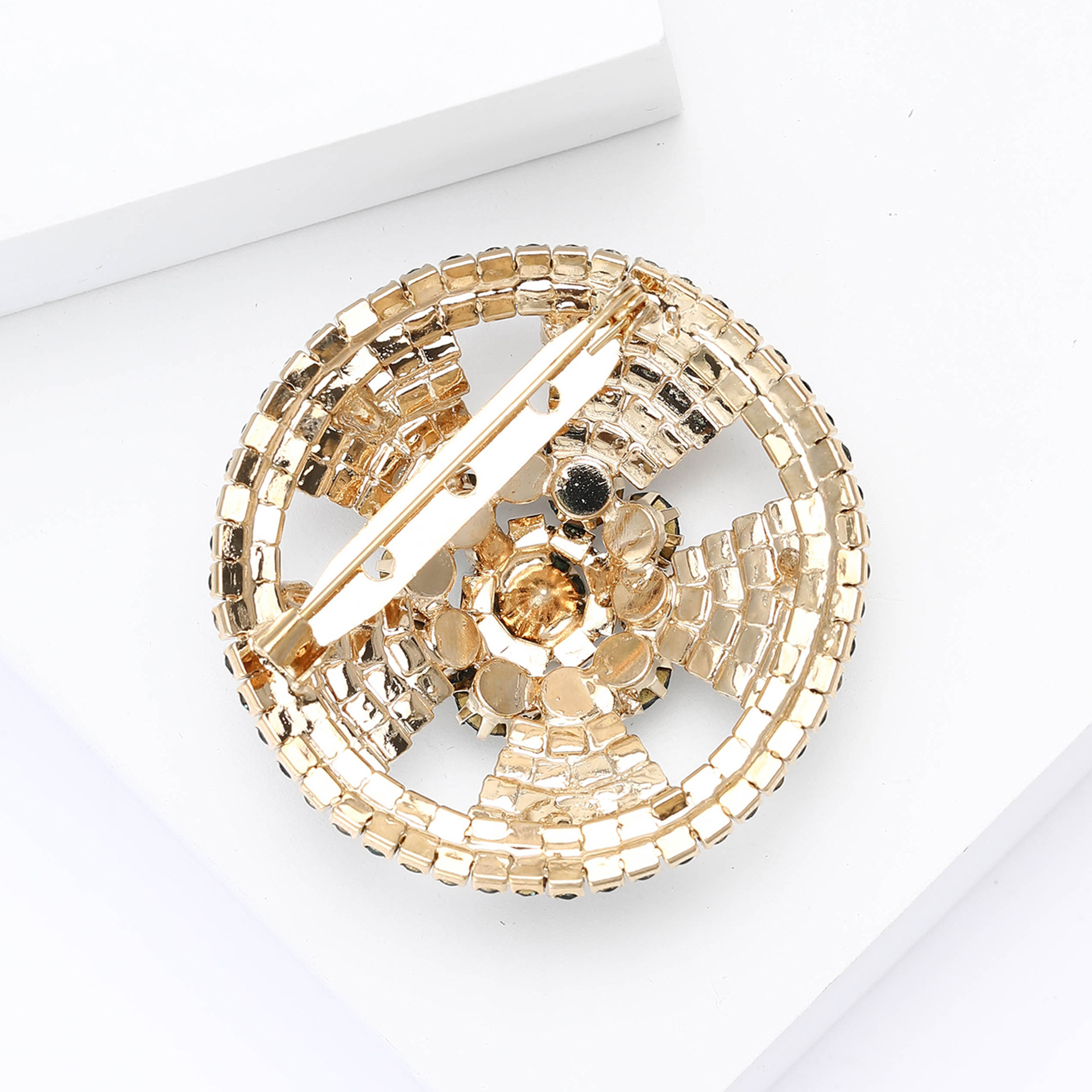 Broches de liga de zinco, Roda, cromado de cor dourada, para mulher & com strass, níquel, chumbo e cádmio livre, vendido por PC