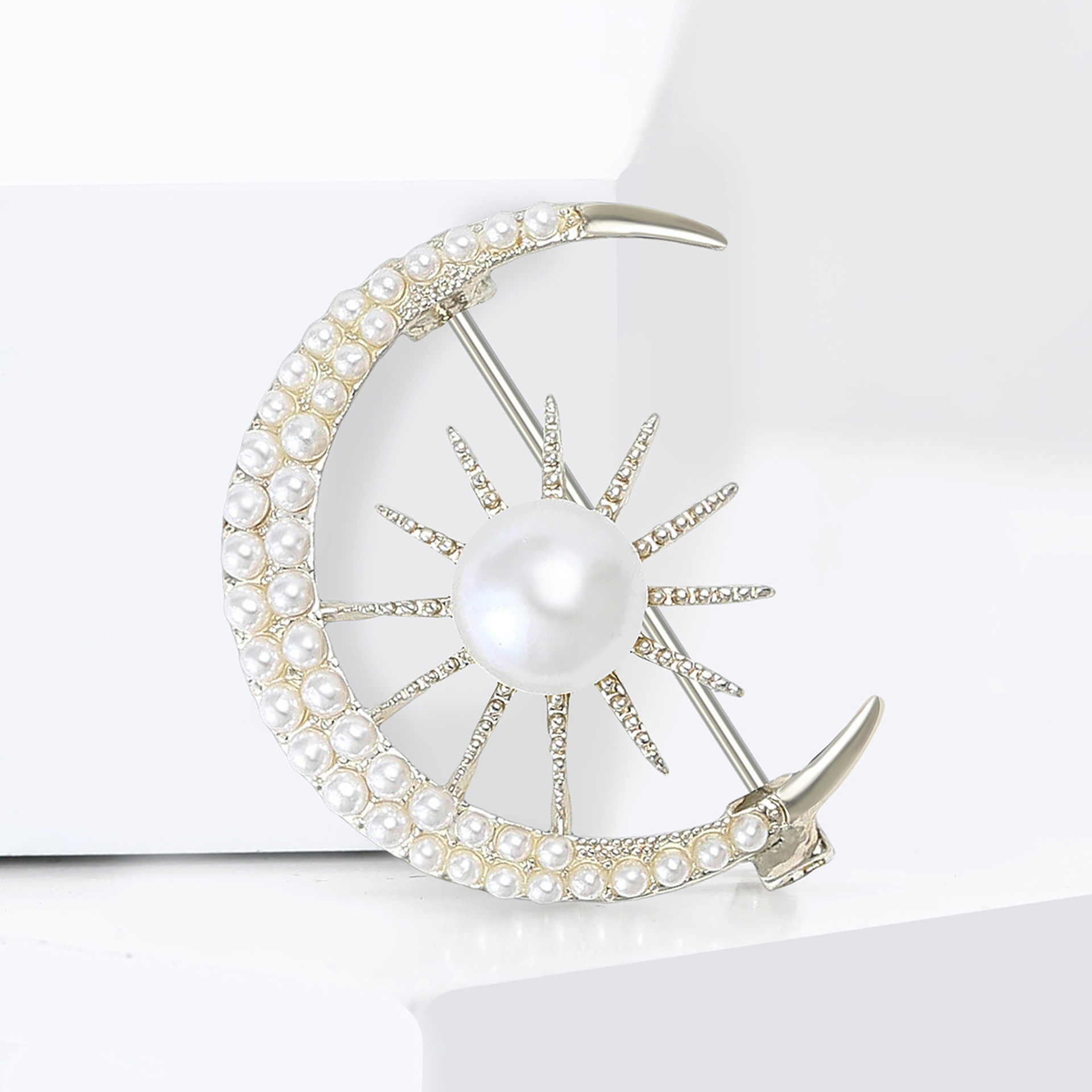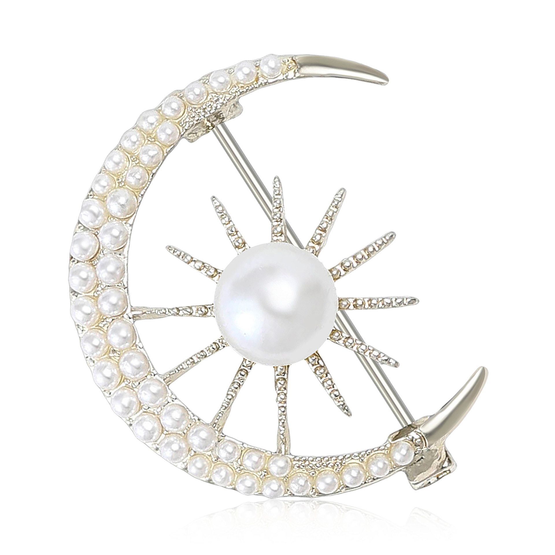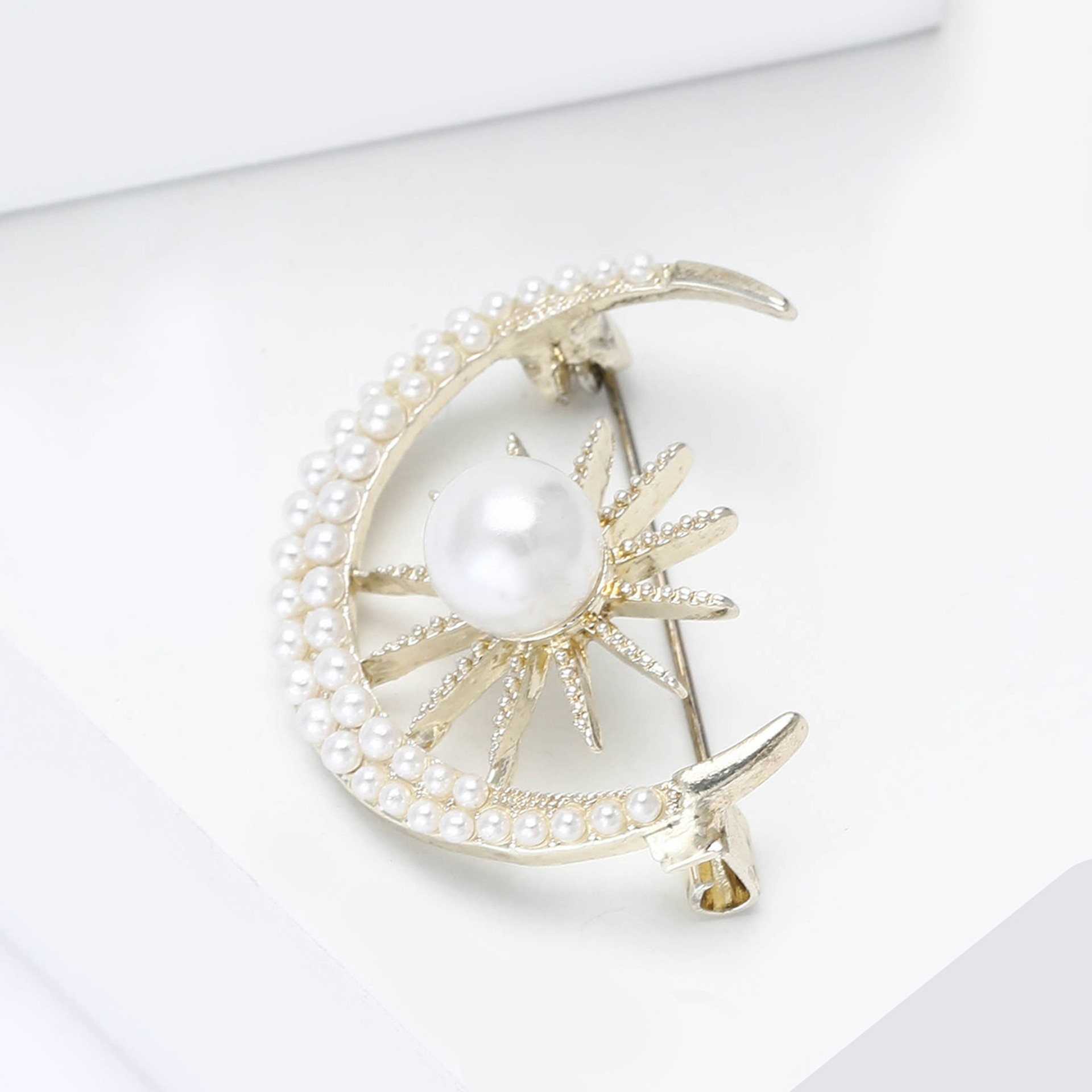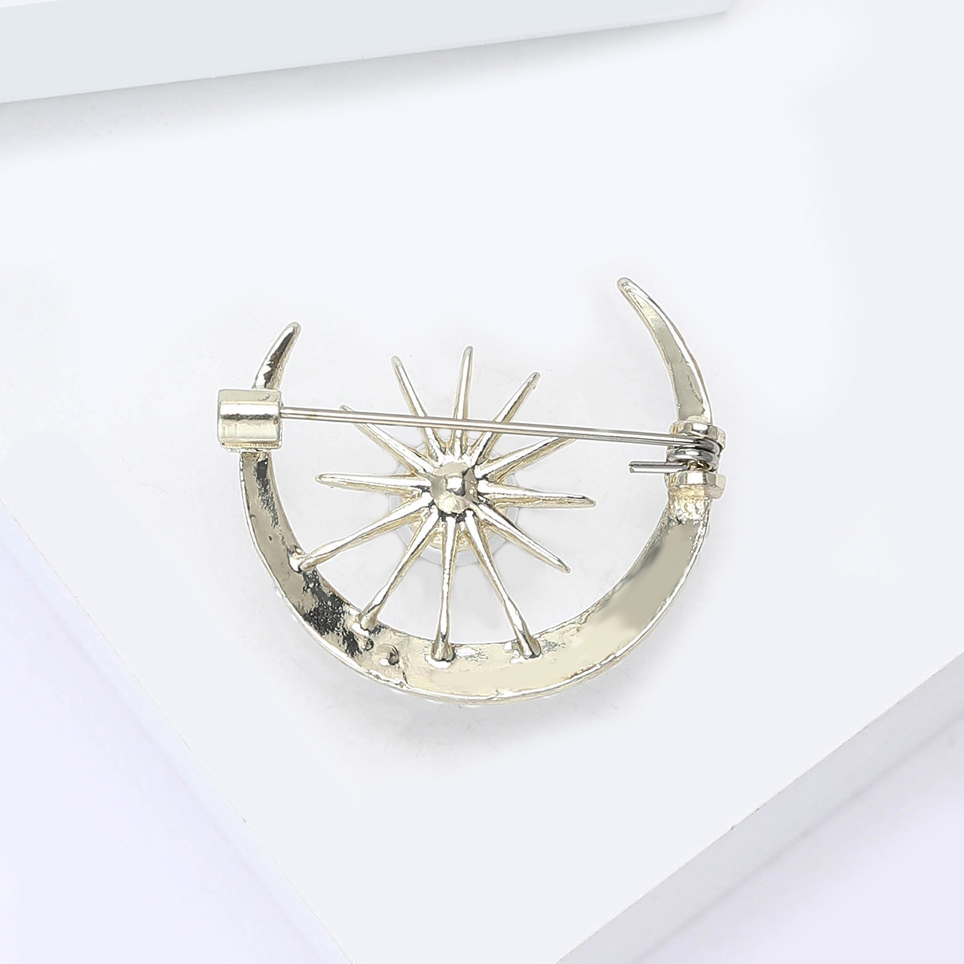 Broches de liga de zinco, with Concha de resina, Lua, cromado de cor dourada, para mulher & com strass, Mais cores pare escolha, níquel, chumbo e cádmio livre, vendido por PC
