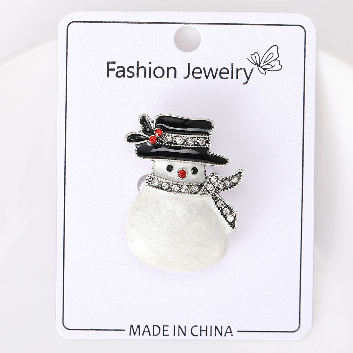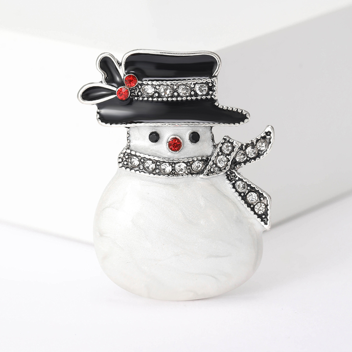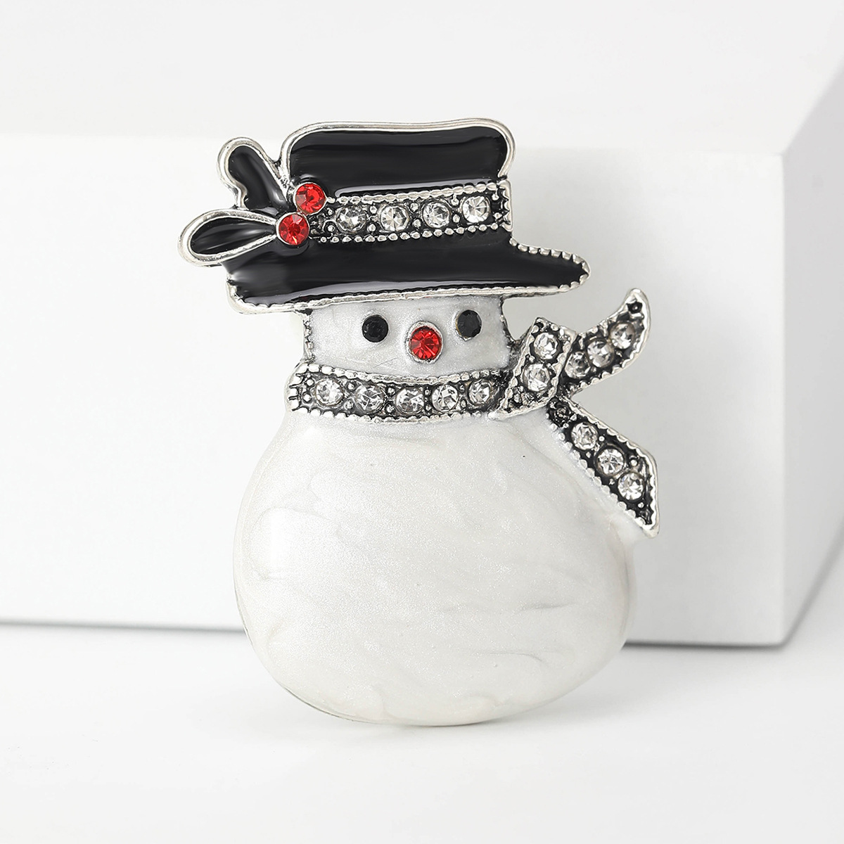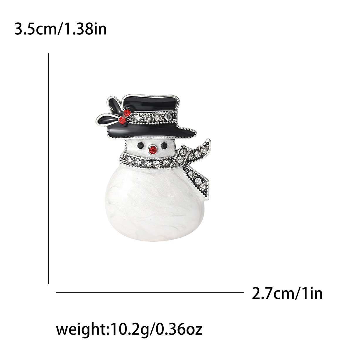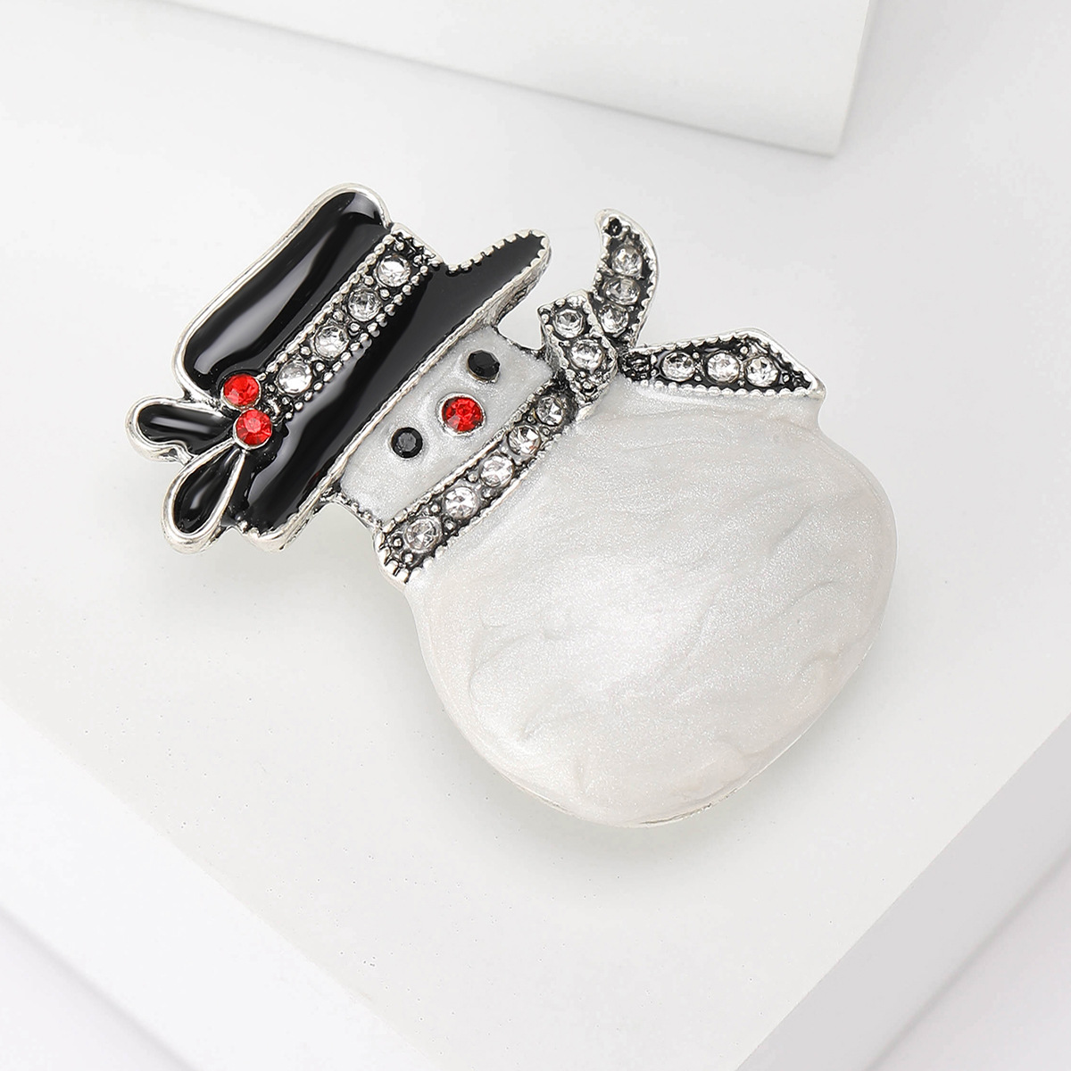 Broches de liga de zinco, Homem de neve, cromado de cor prateada, Design de Natal & esmalte & com strass, branco, níquel, chumbo e cádmio livre, 27x35mm, vendido por PC