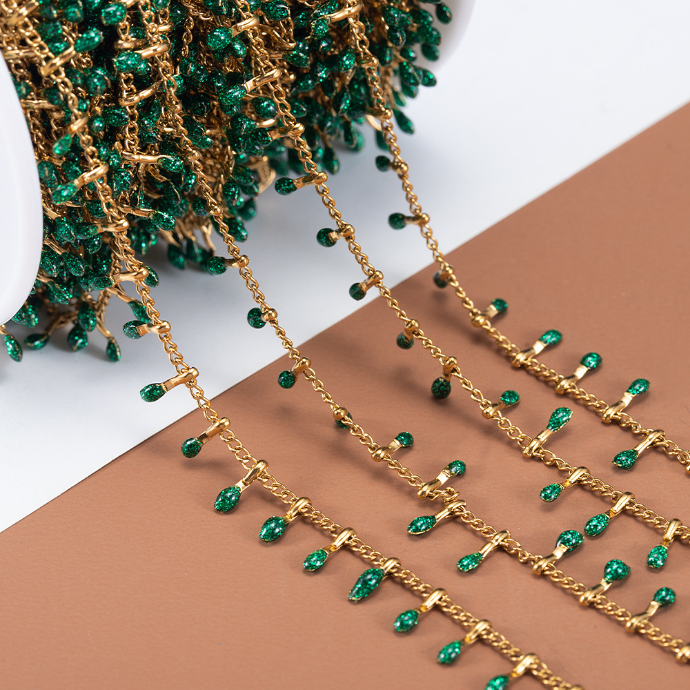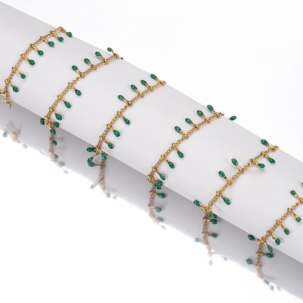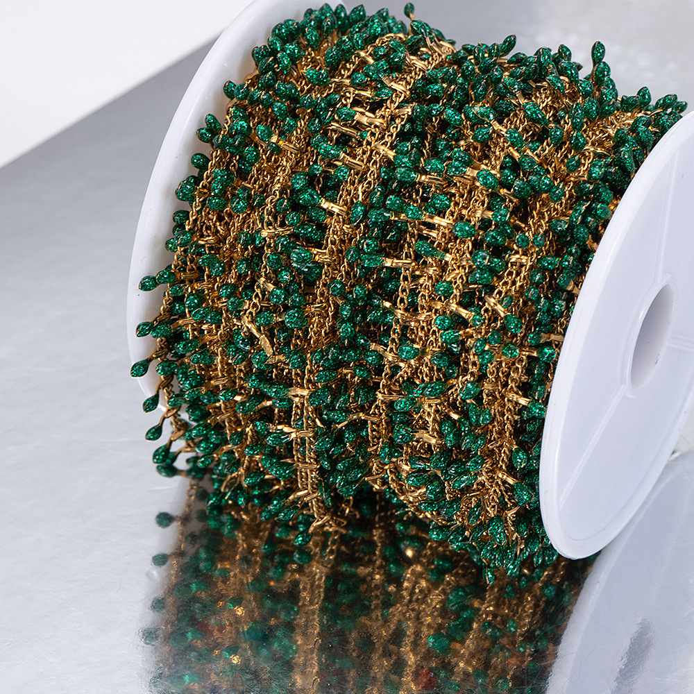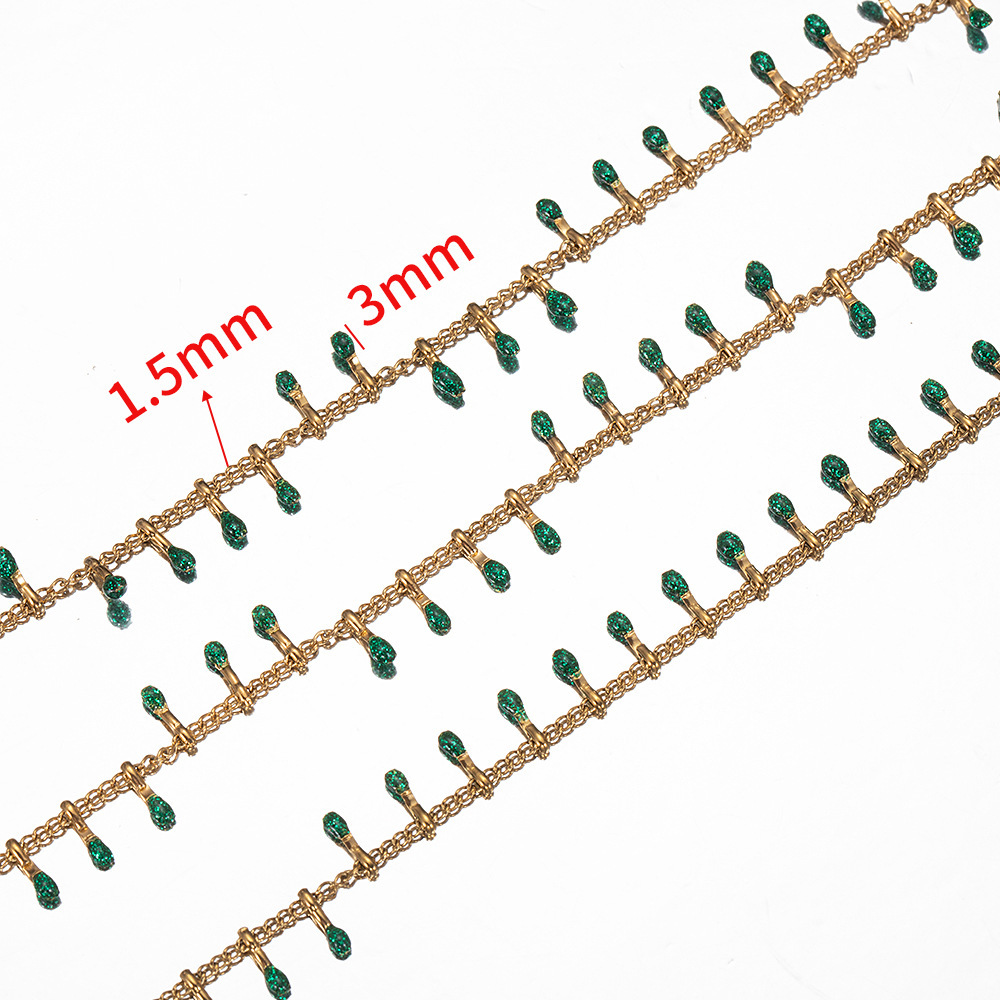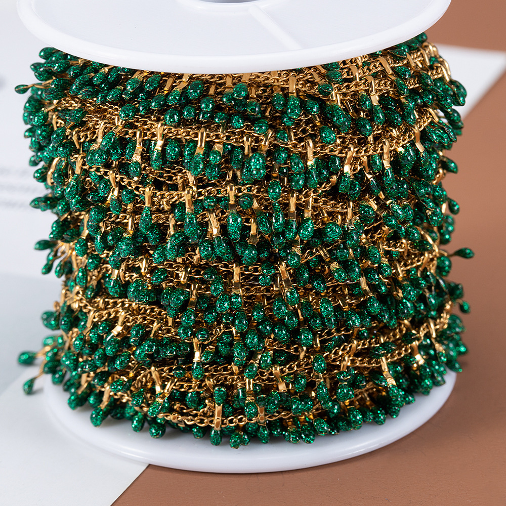 Piedra preciosa con cuentas Cadena, Aço inoxidável 304, cromado de cor dourada, DIY & esmalte, verde, 1m/Bag, vendido por Bag