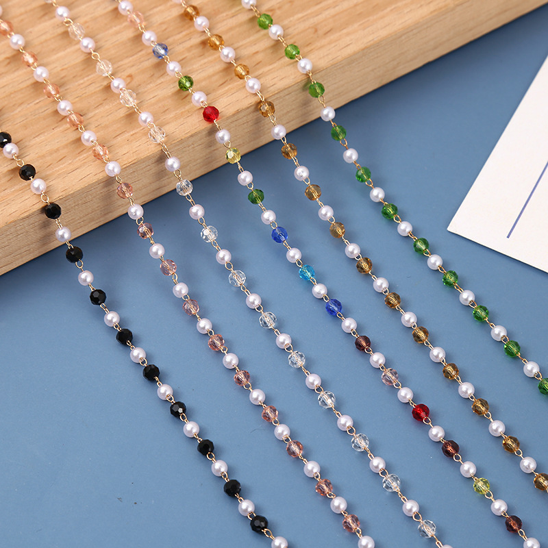 Piedra preciosa con cuentas Cadena, cobre, with vidro & Concha de resina, cromado de cor dourada, DIY, Mais cores pare escolha, níquel, chumbo e cádmio livre, vendido por m