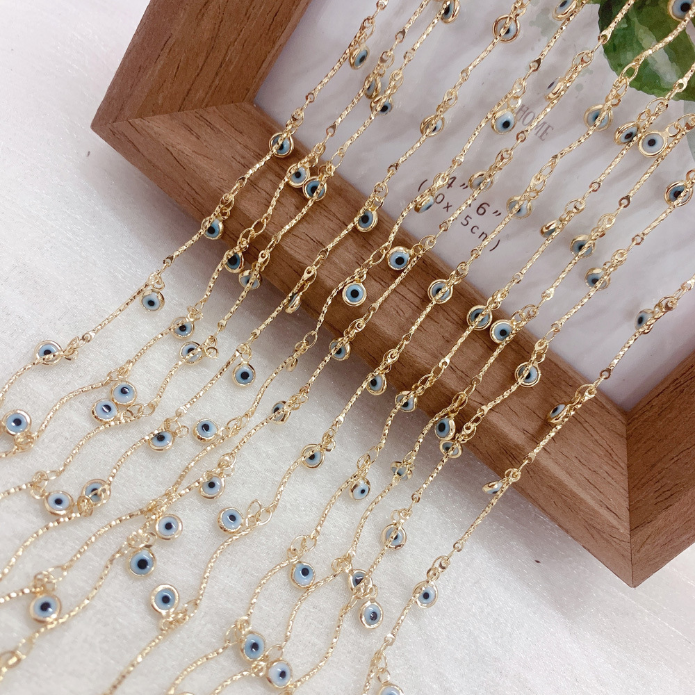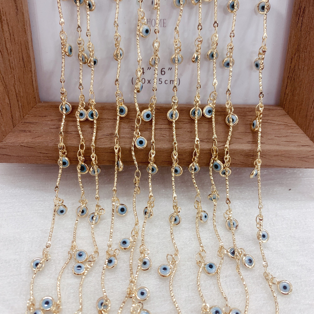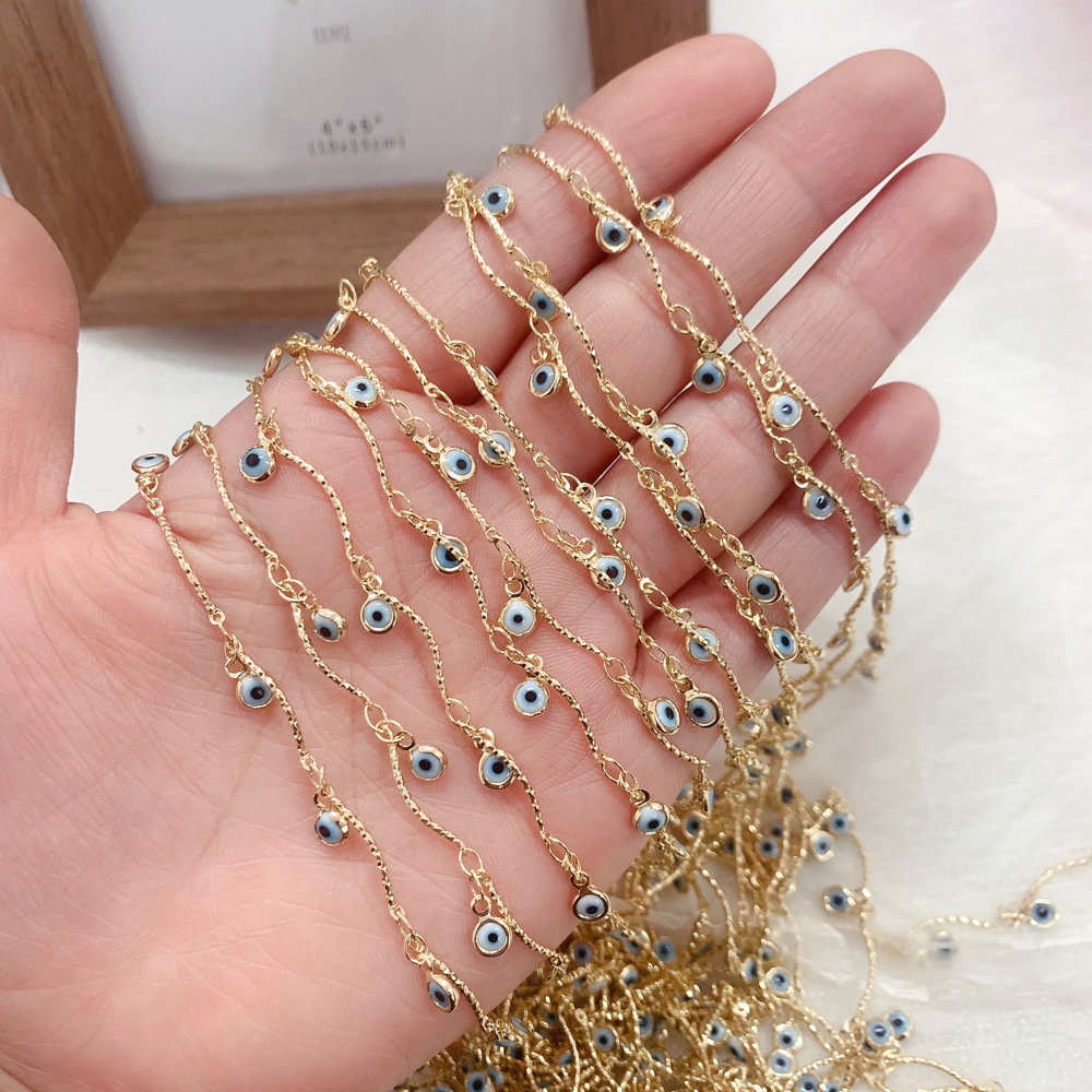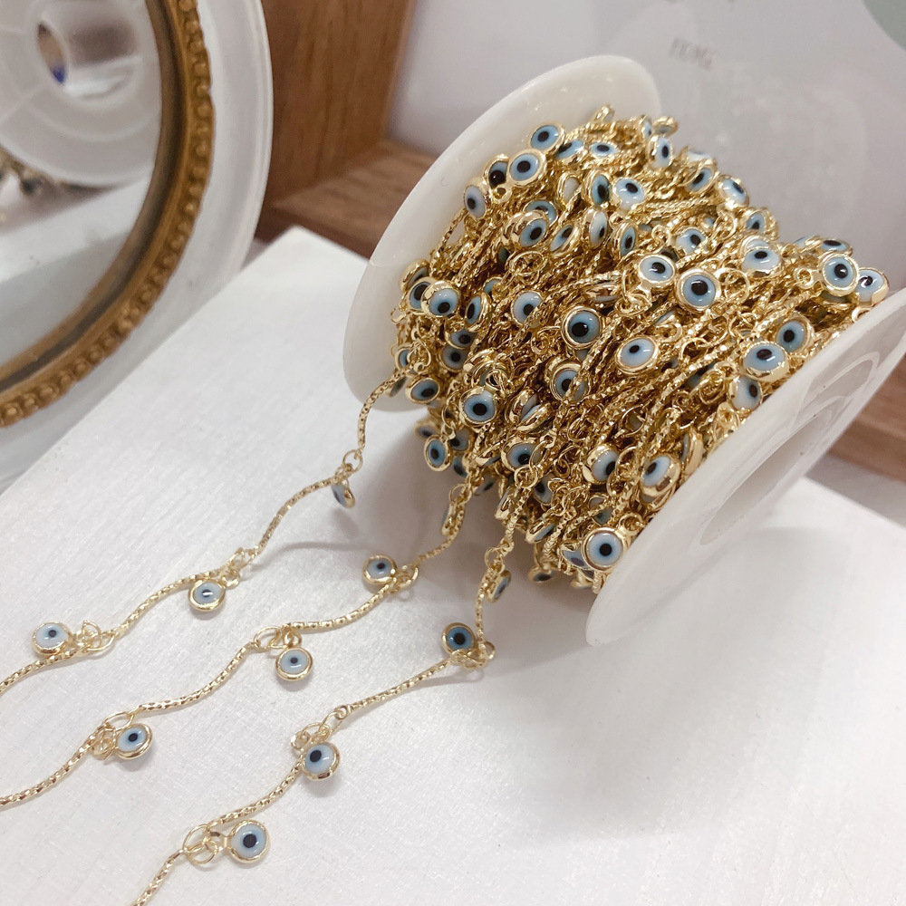 Piedra preciosa con cuentas Cadena, cobre, cromado de cor dourada, DIY & padrão de mau-olhado & esmalte, níquel, chumbo e cádmio livre, 10m/Bag, vendido por Bag