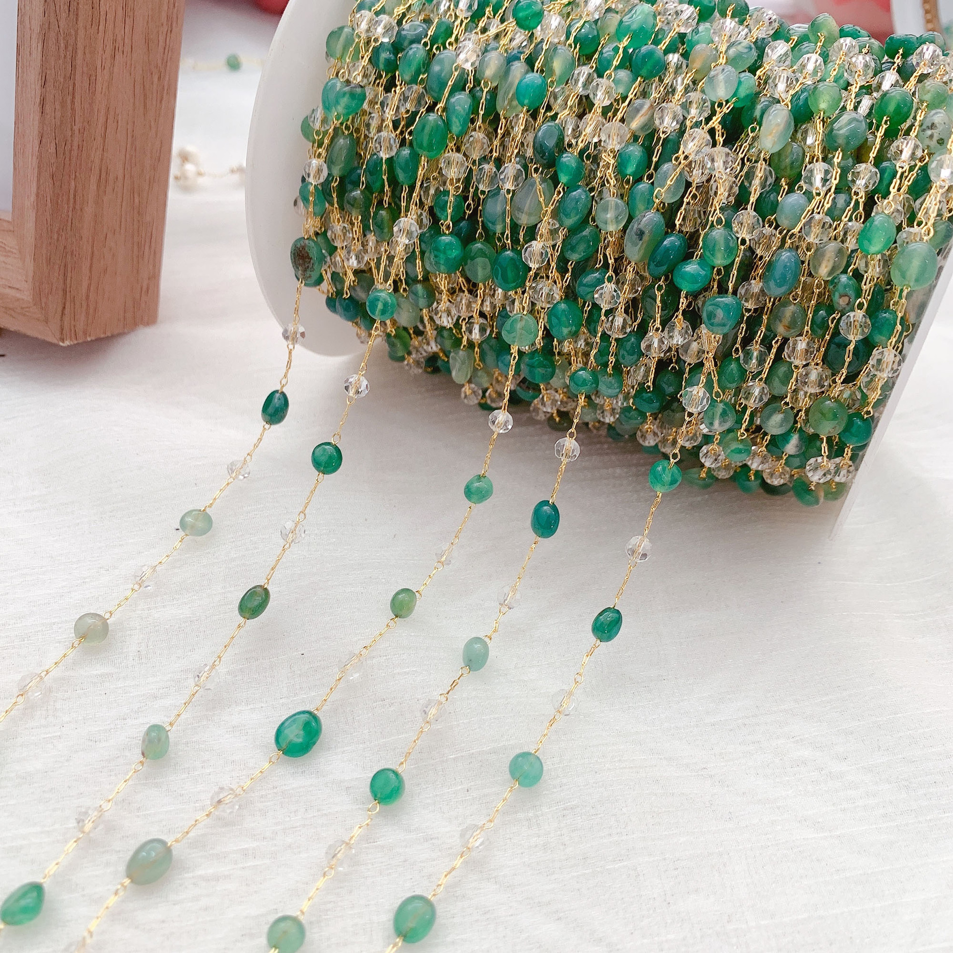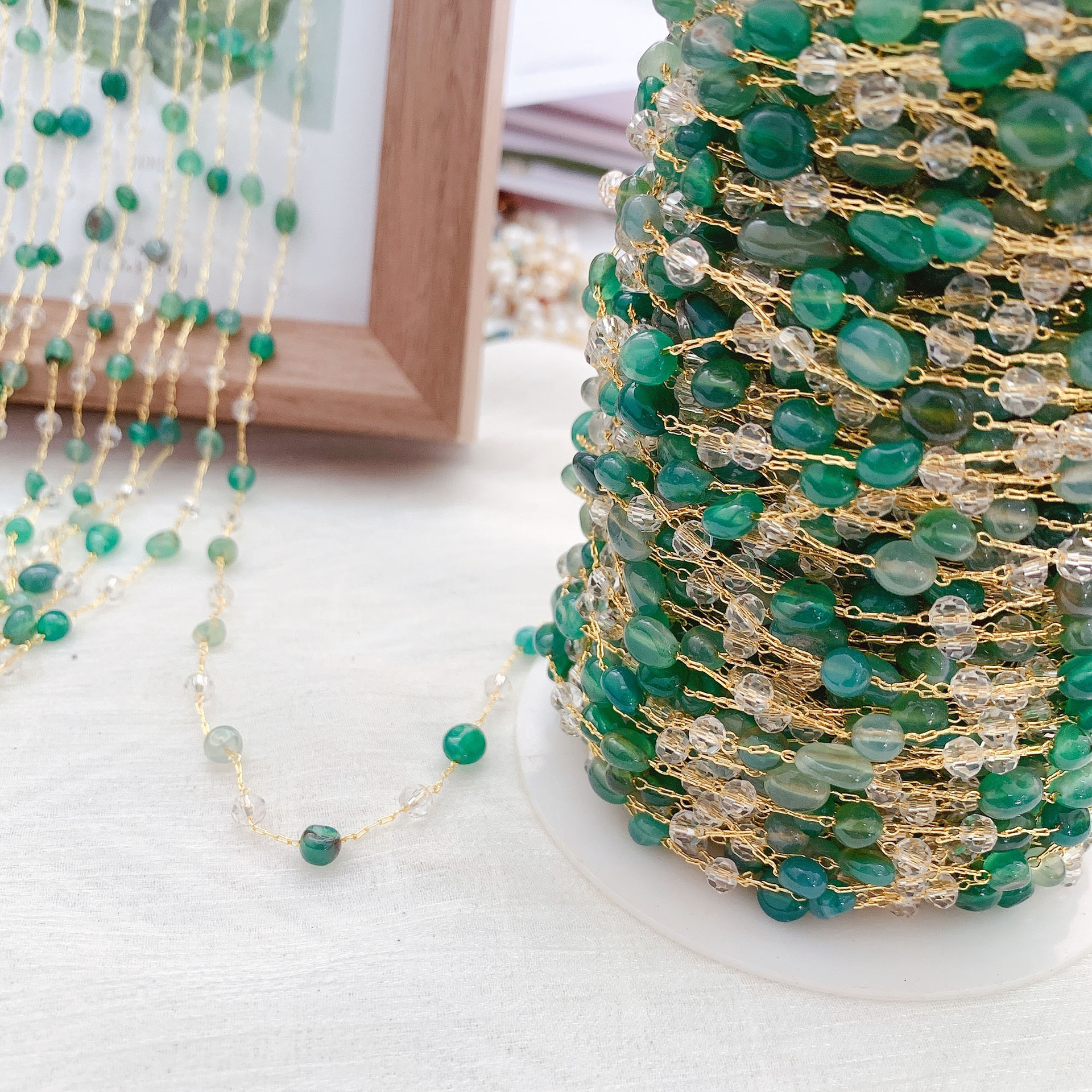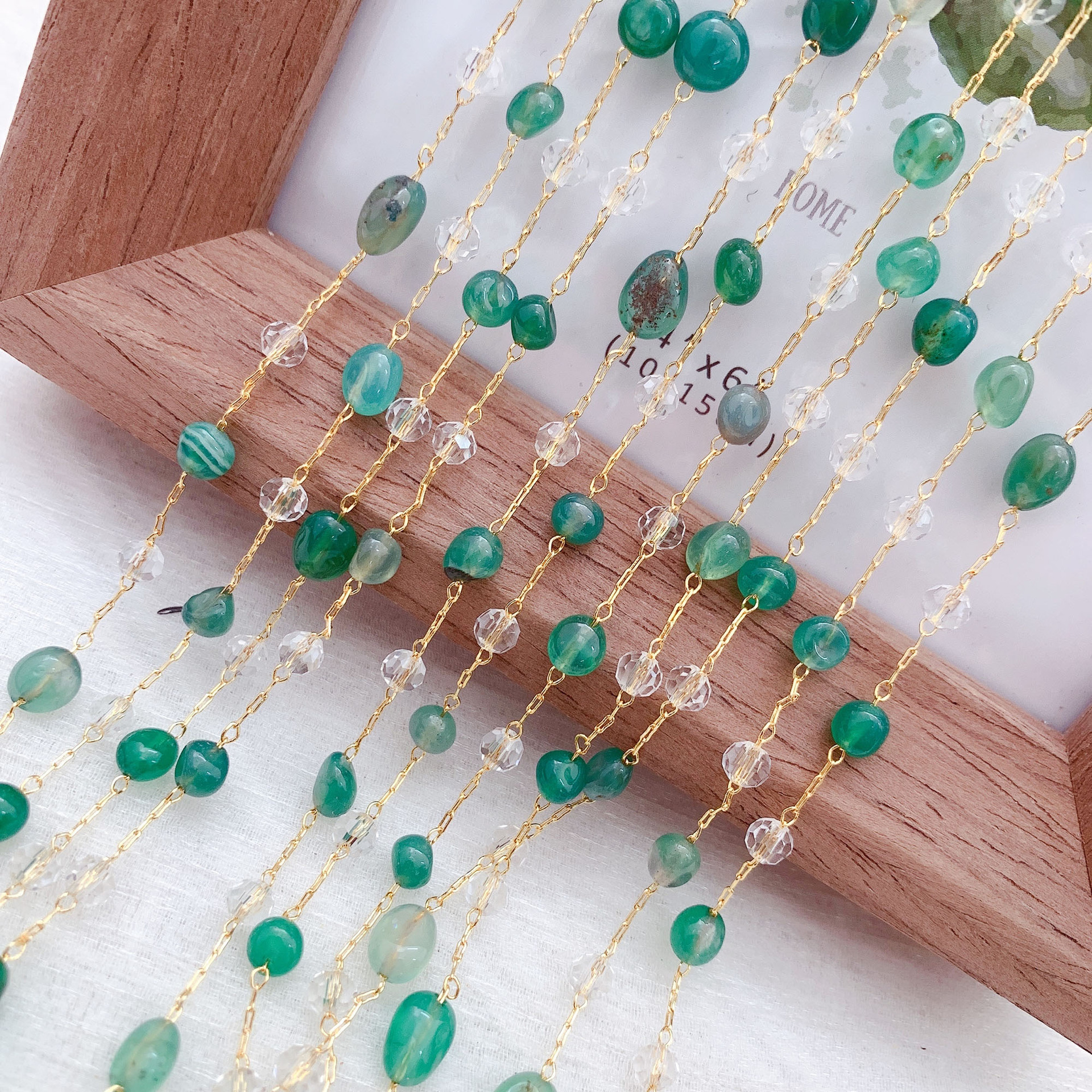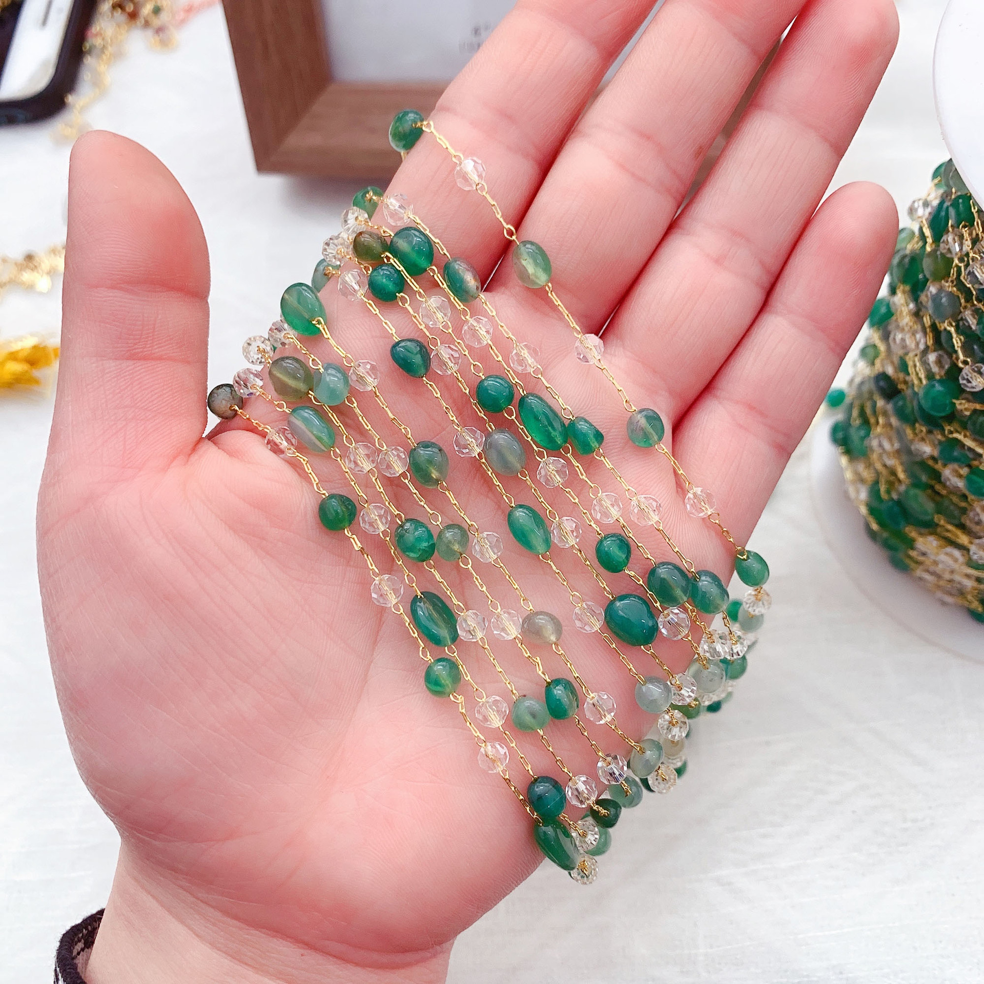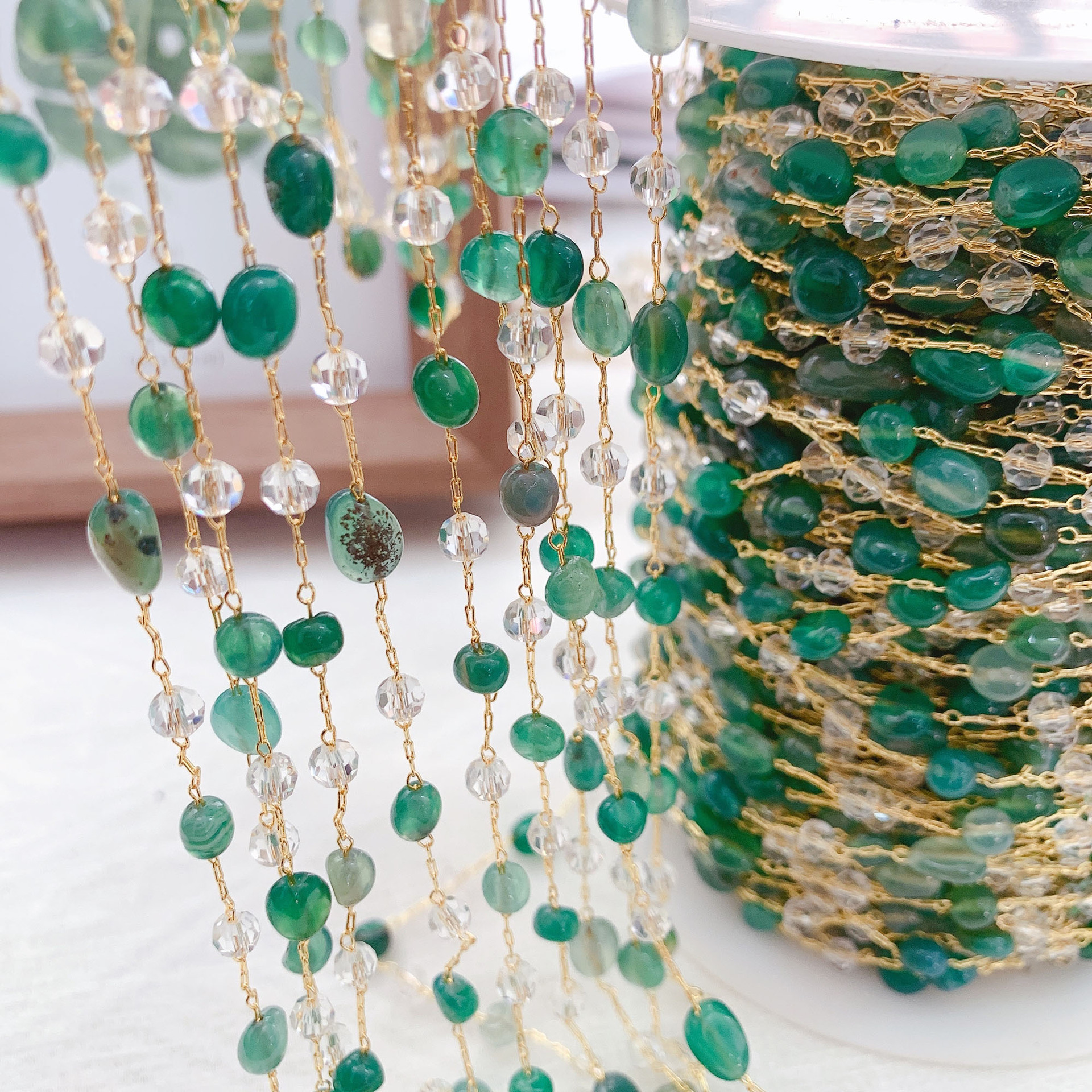 Piedra preciosa con cuentas Cadena, cobre, with Pedra natural & plástico, cromado de cor dourada, DIY, verde, níquel, chumbo e cádmio livre, 10m/Bag, vendido por Bag