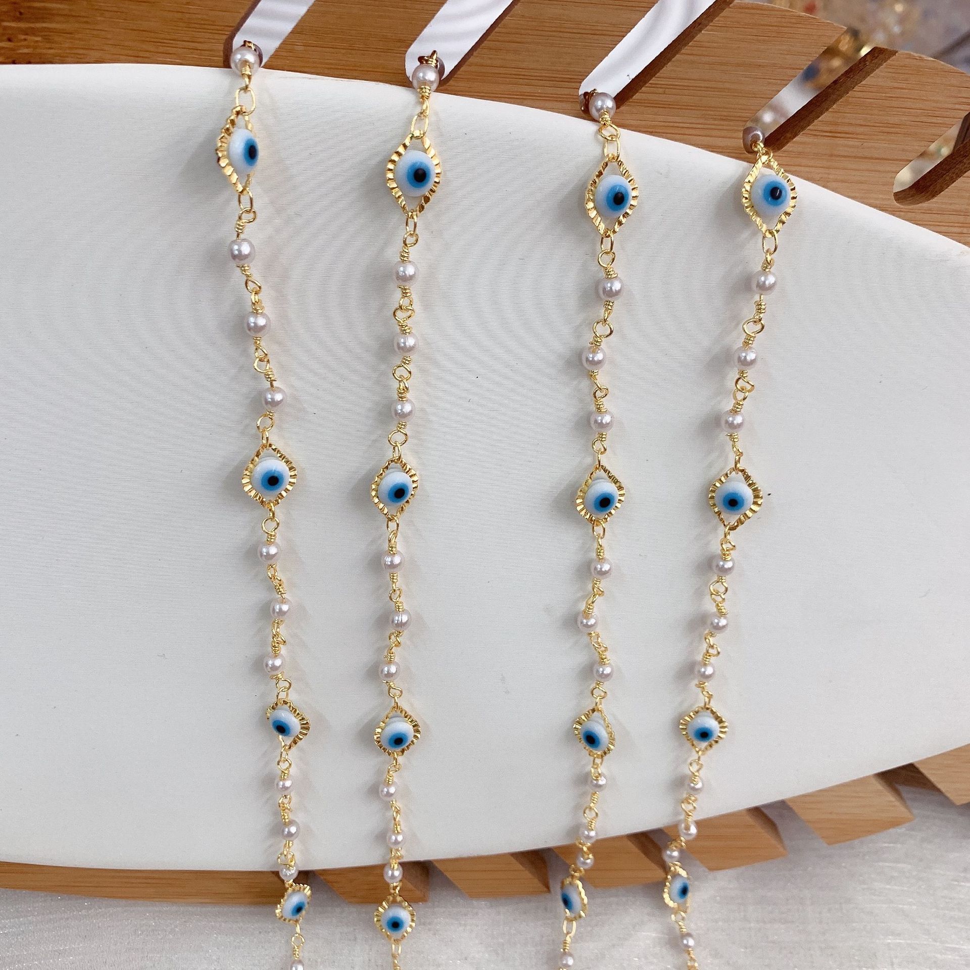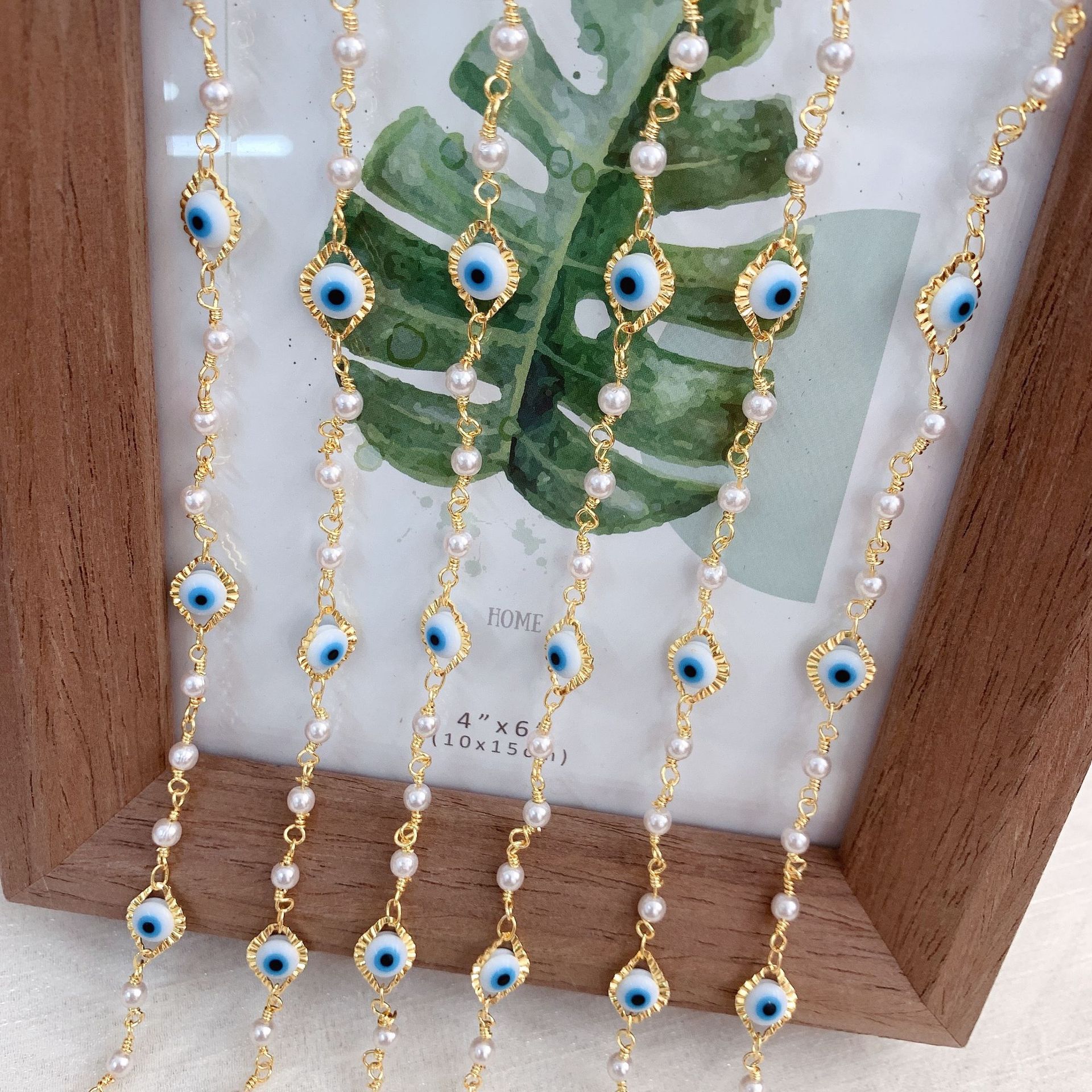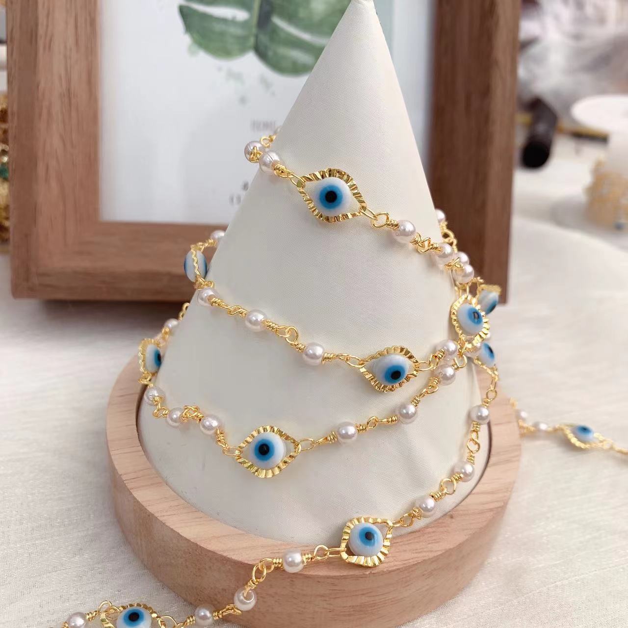 Piedra preciosa con cuentas Cadena, cobre, with resina & Concha de resina, DIY & padrão de mau-olhado, cores misturadas, níquel, chumbo e cádmio livre, 10m/Bag, vendido por Bag