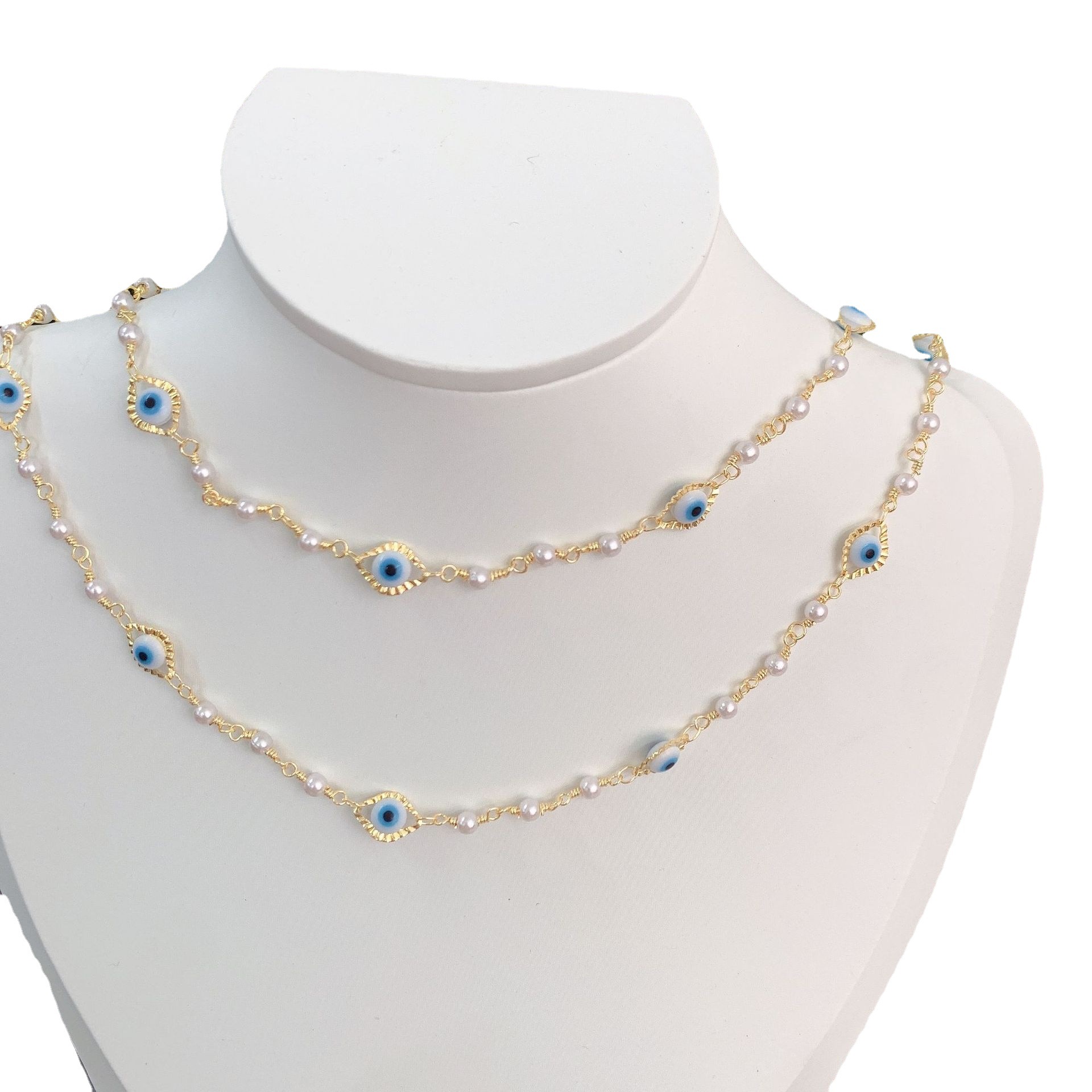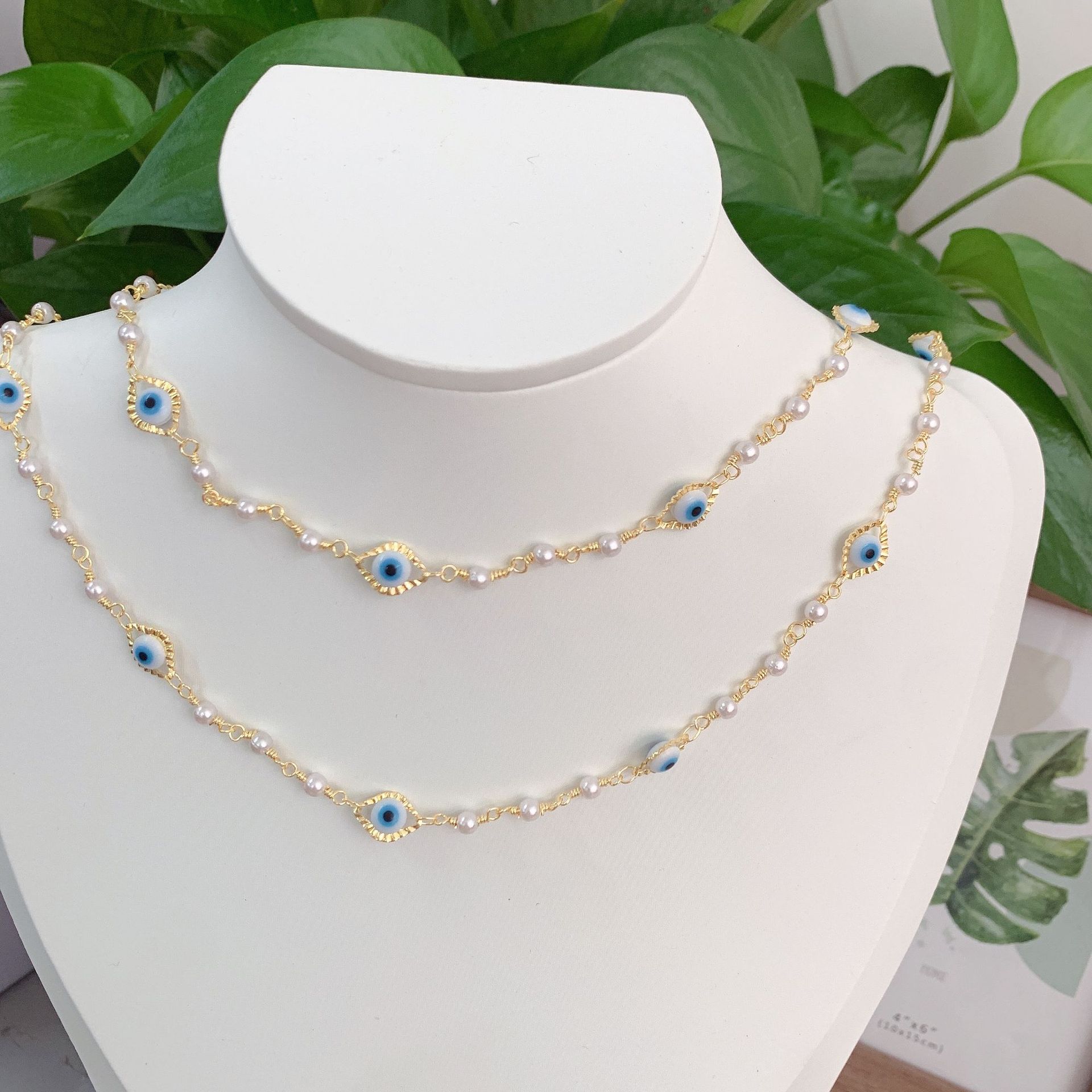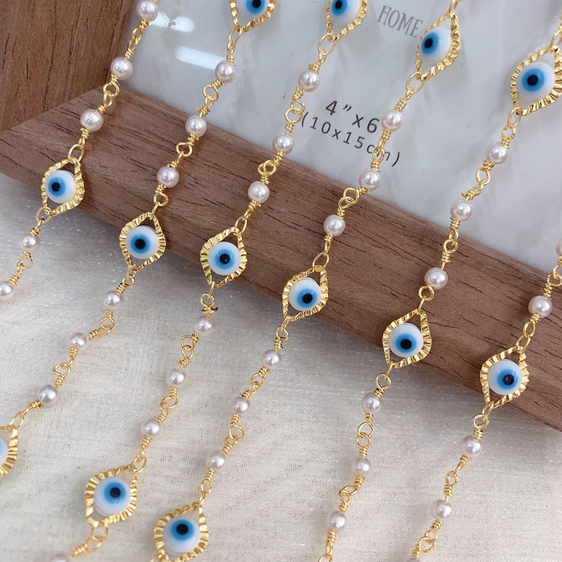 Piedra preciosa con cuentas Cadena, cobre, with resina & Concha de resina, DIY & padrão de mau-olhado, cores misturadas, níquel, chumbo e cádmio livre, 10m/Bag, vendido por Bag
