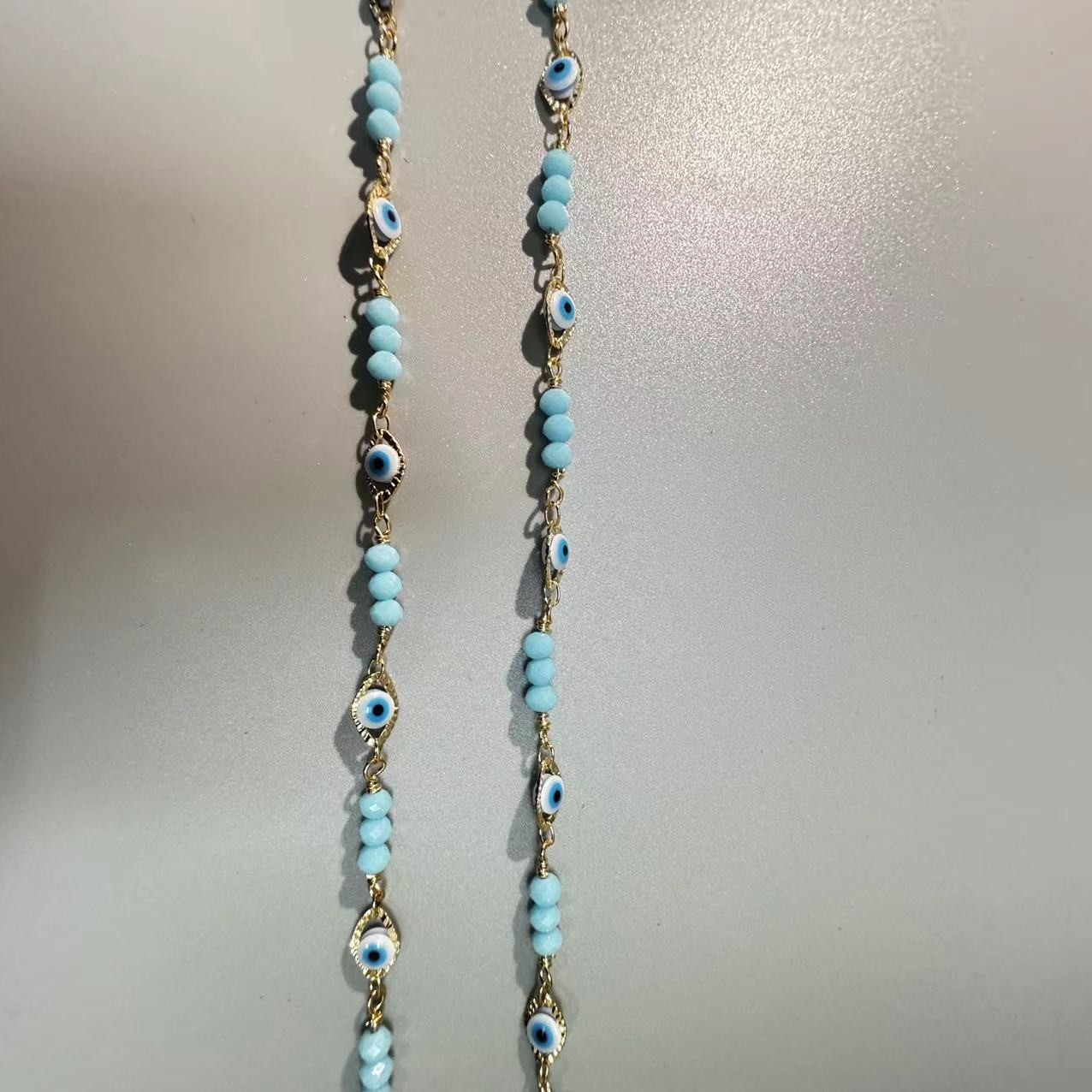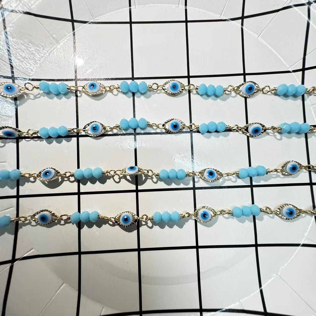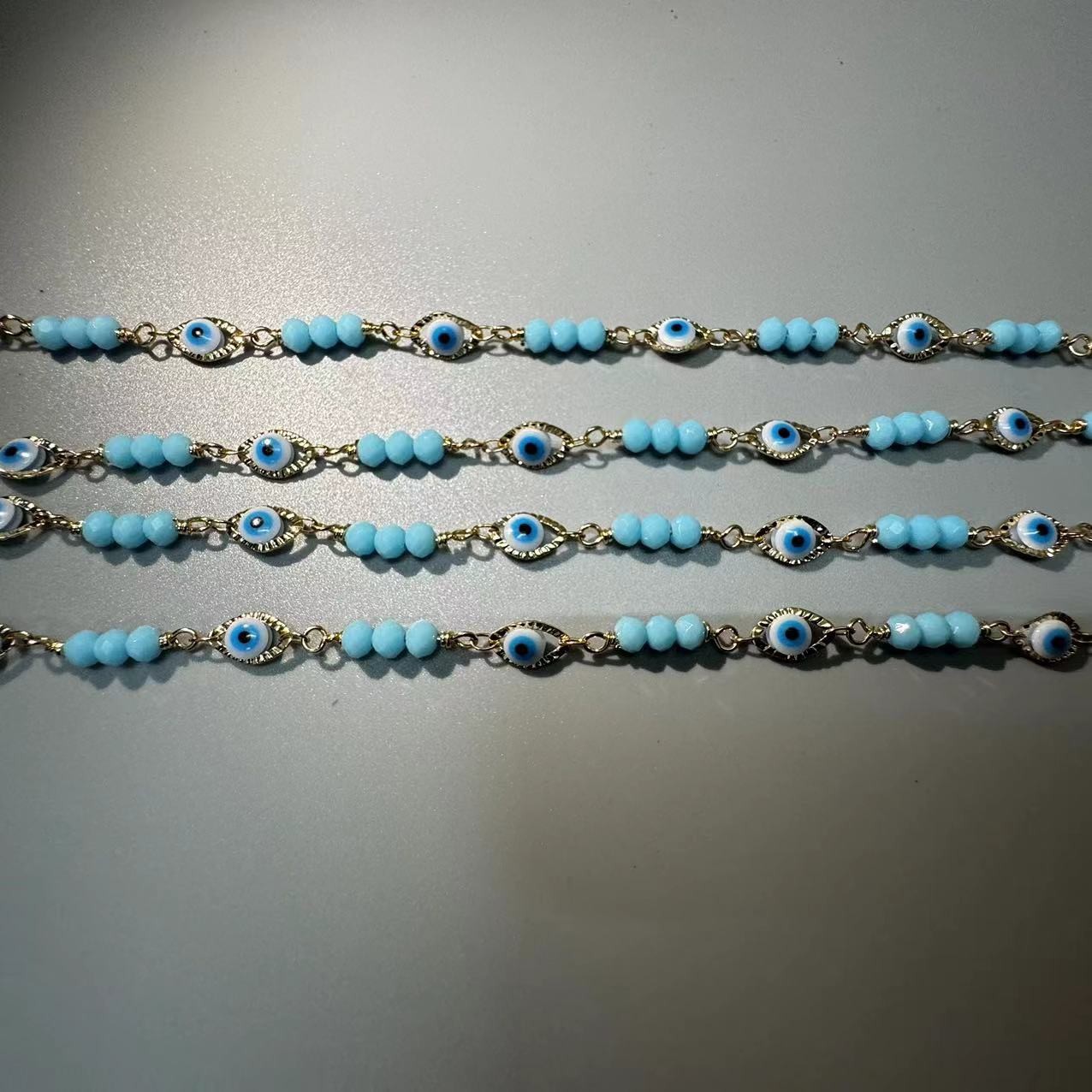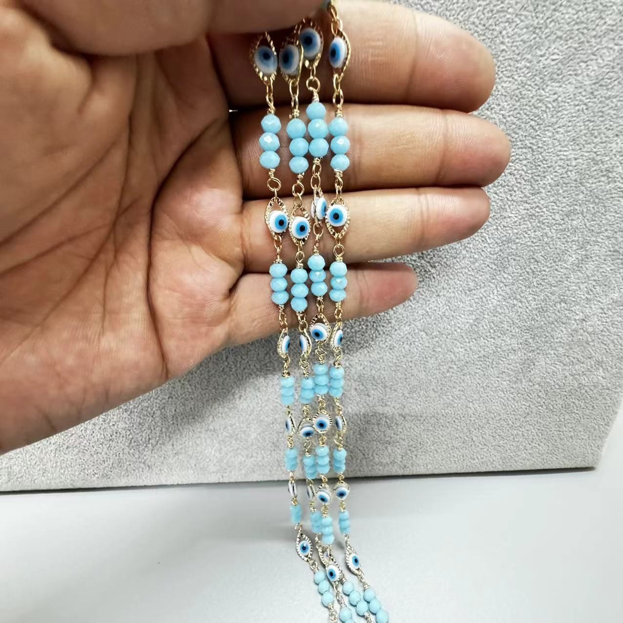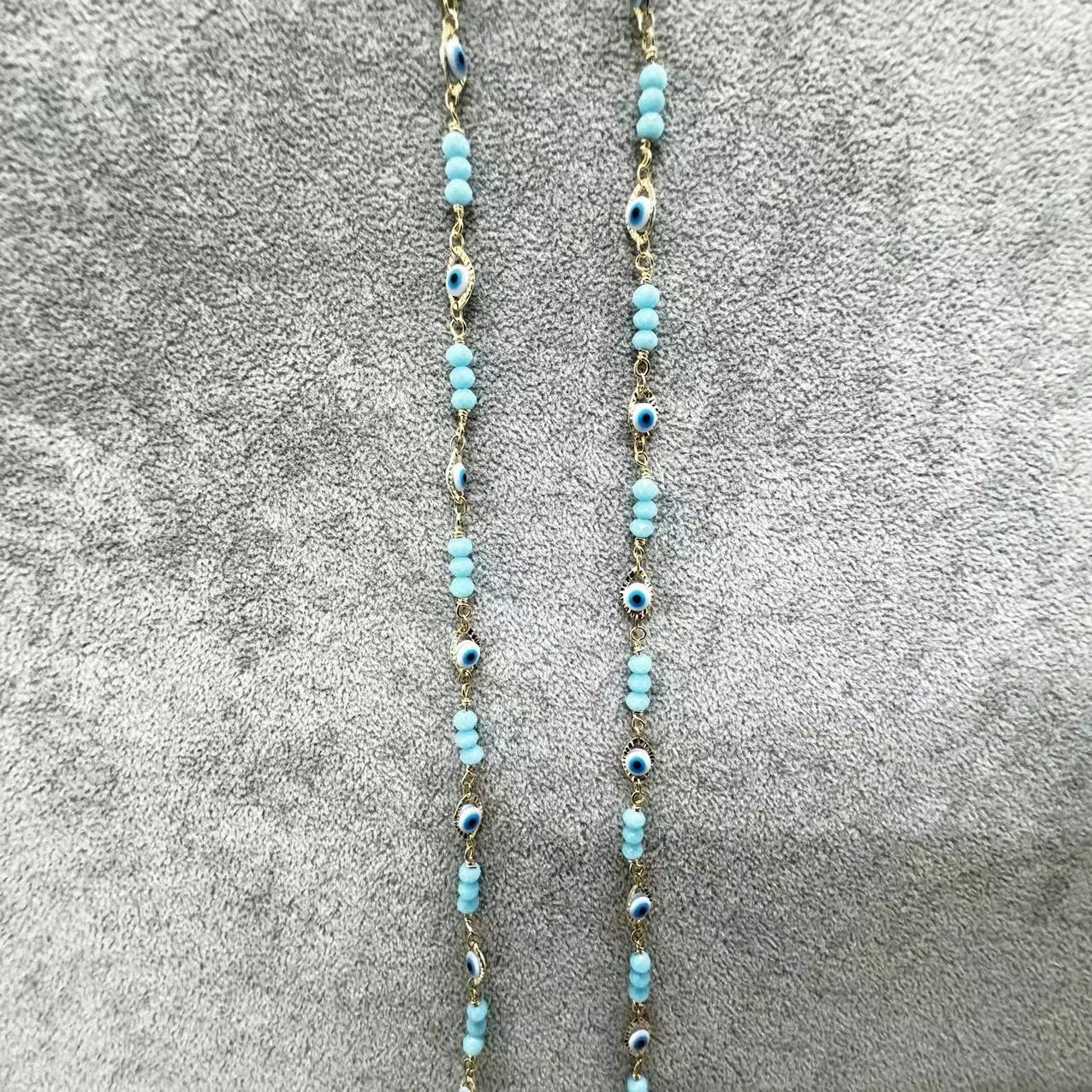 Piedra preciosa con cuentas Cadena, cobre, with Seedbead, cromado de cor dourada, DIY & padrão de mau-olhado & adesivo epóxi, azul, níquel, chumbo e cádmio livre, vendido por m