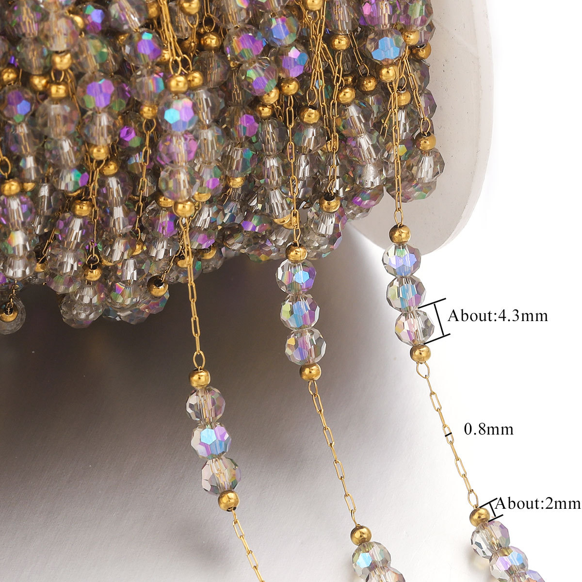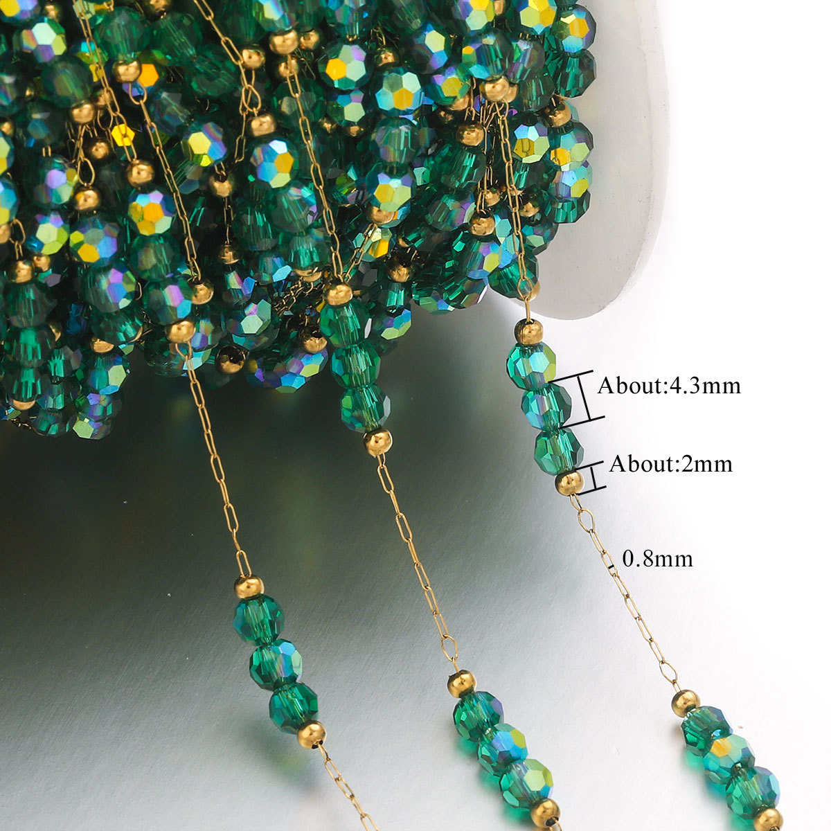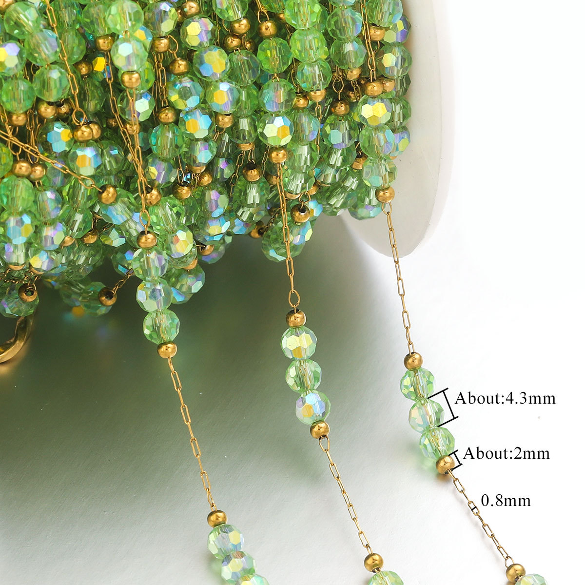 Piedra preciosa con cuentas Cadena, Aço inoxidável 304, with cristal, cromado de cor dourada, DIY, Mais cores pare escolha, 1m/Spool, vendido por Spool