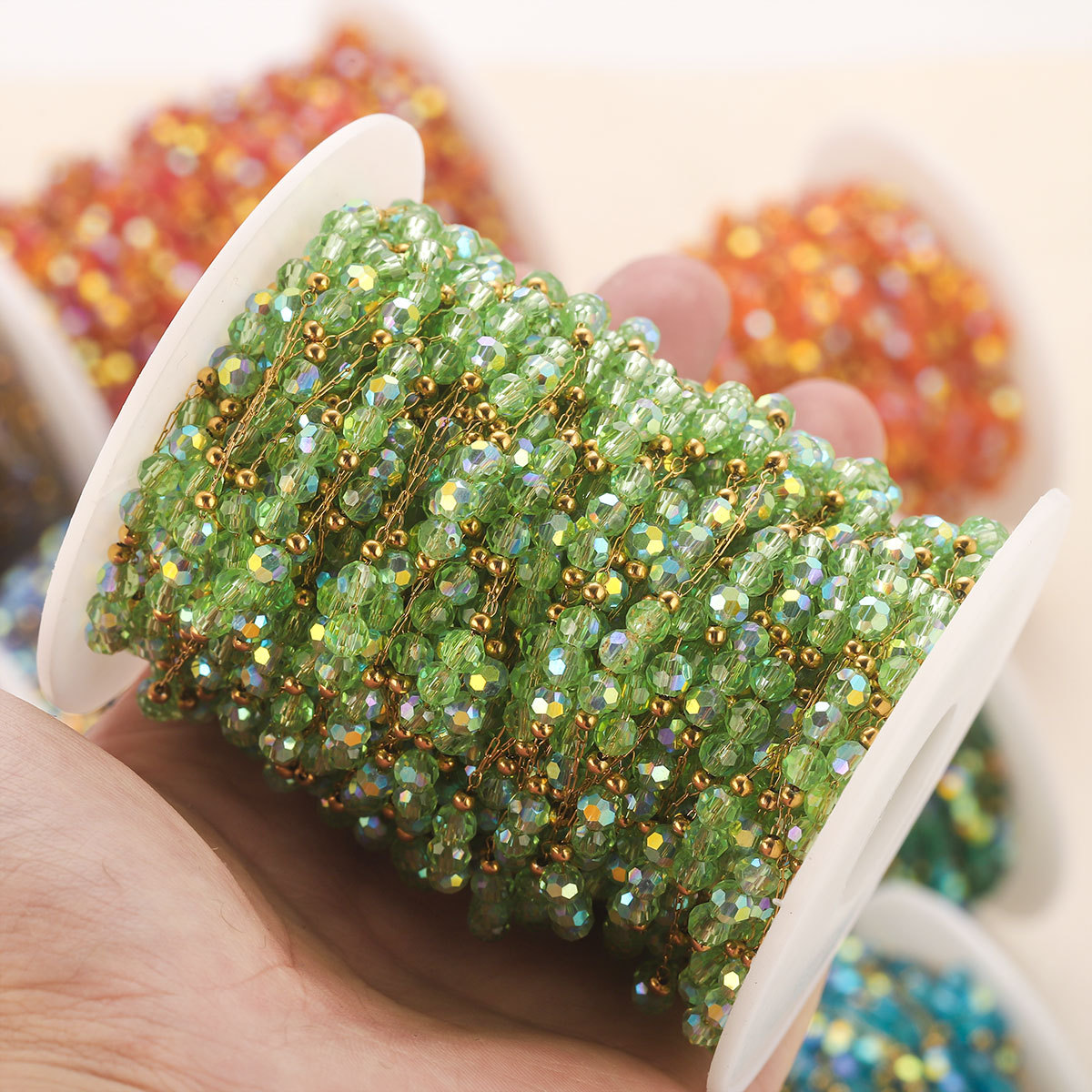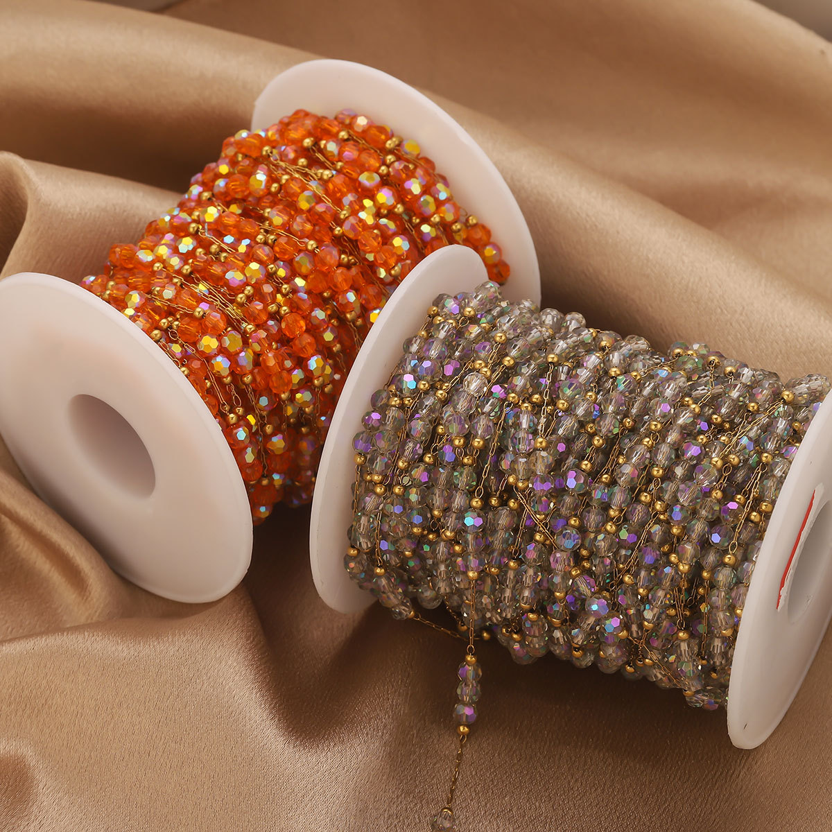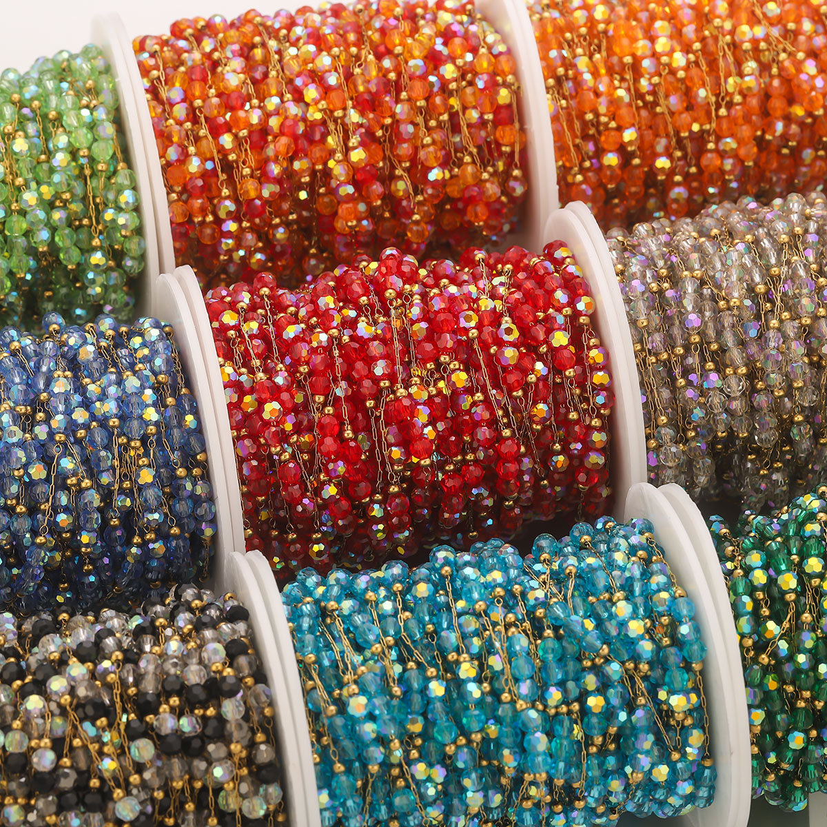 Piedra preciosa con cuentas Cadena, Aço inoxidável 304, with cristal, cromado de cor dourada, DIY, Mais cores pare escolha, 1m/Spool, vendido por Spool