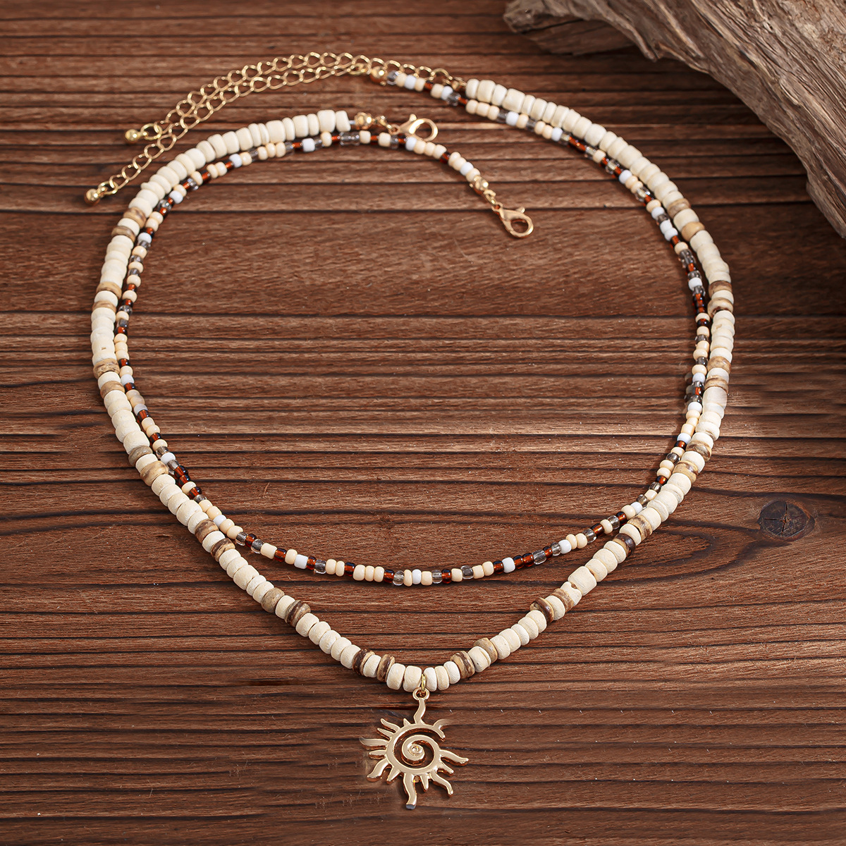 Coco colar, with Seedbead & madeira & liga de zinco, sol, feito à mão, Camada Dupla & para o homem, vendido por PC