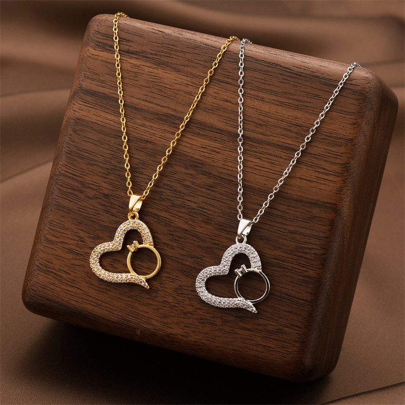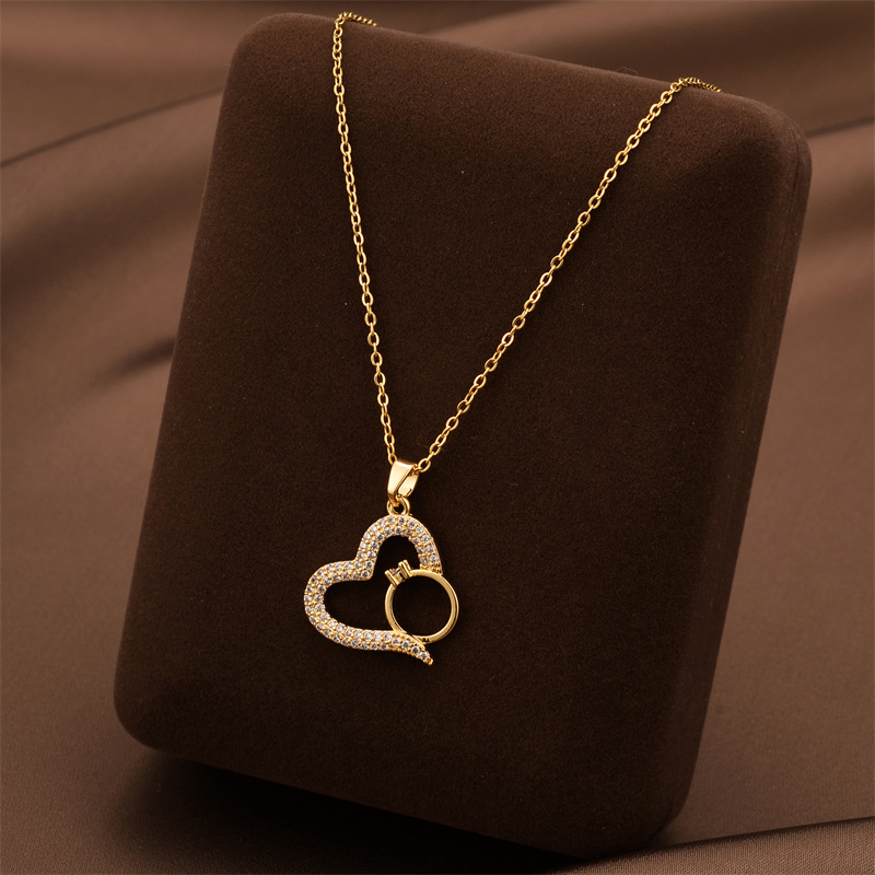 Colar de aço titânio, Partículas de aço, Coração, banhado, cadeia oval & para mulher & com strass, Mais cores pare escolha, 29x32mm, vendido para Aprox 40 cm Strand