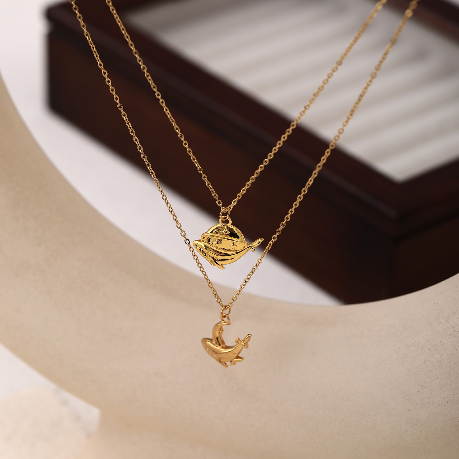 1:Whale and half moon necklace2:Whale and full moon necklace
