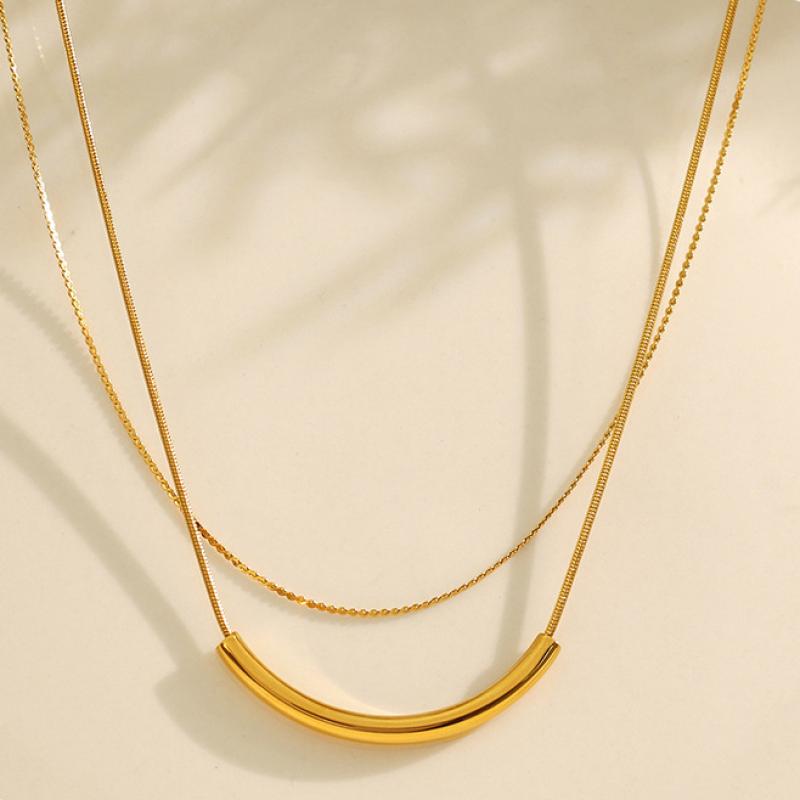 Colar de jóias de aço inoxidável, Aço inoxidável 304, 18K banhado a ouro, Camada Dupla & joias de moda & para mulher, dourado, vendido por PC