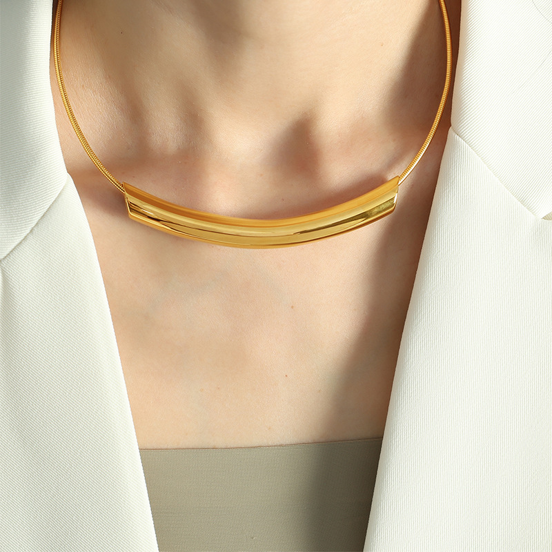 Colar de jóias de aço inoxidável, Aço inoxidável 304, banhado, joias de moda & para mulher, dourado, comprimento Aprox 45 cm, vendido por PC