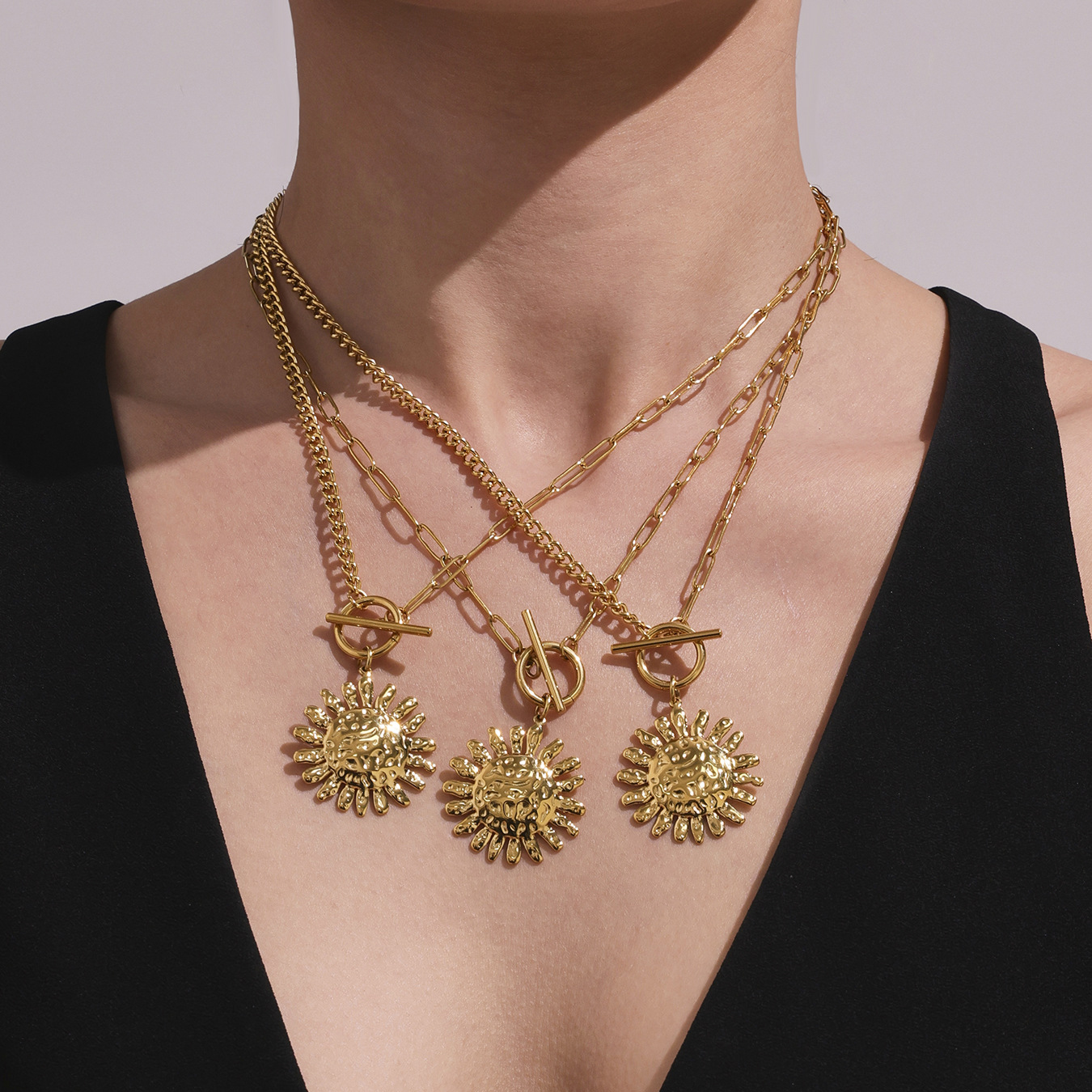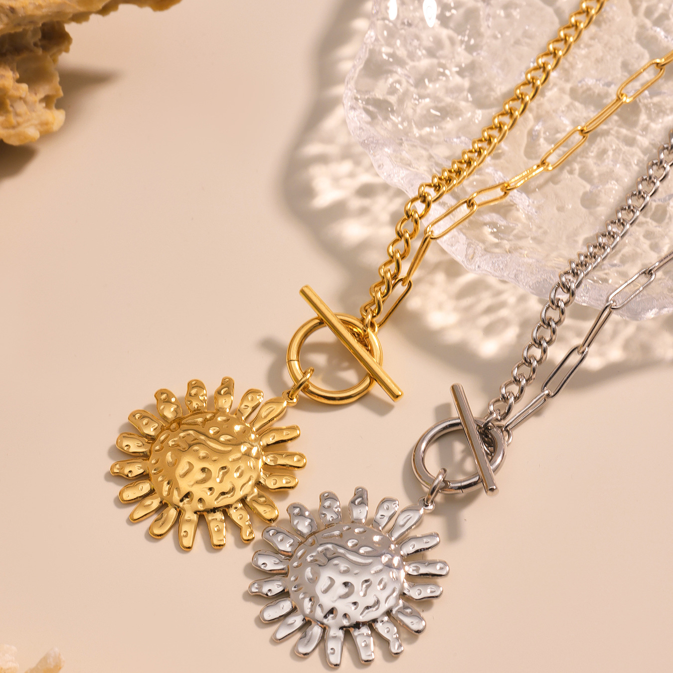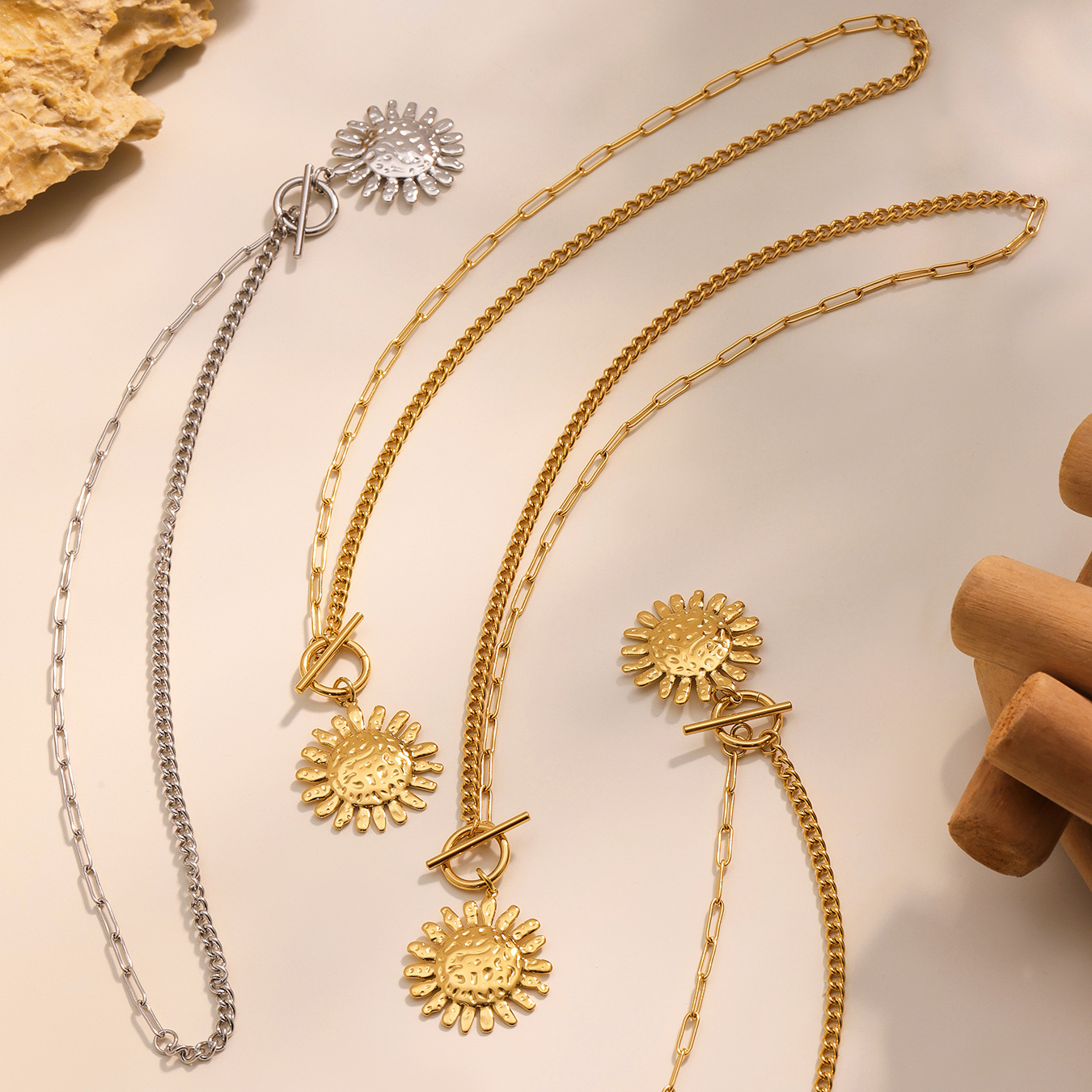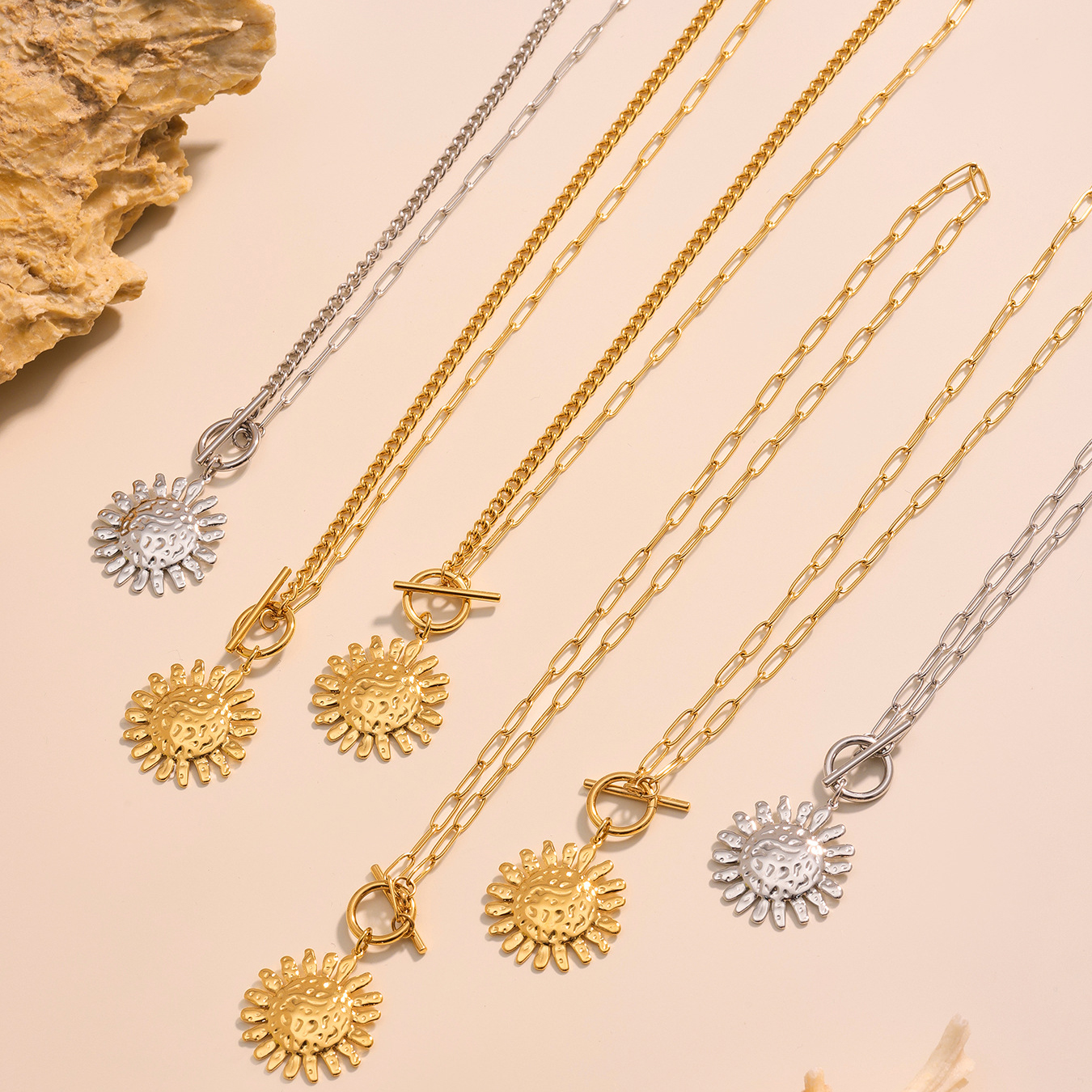 1:P1393-a gold ot buckle sun necklace 44cm2:P1393-a steel color ot buckle sun necklace 44cm3:P1393-b gold ot buckle sun necklace 44cm4:P1393-b steel color ot buckle sun necklace 44cm