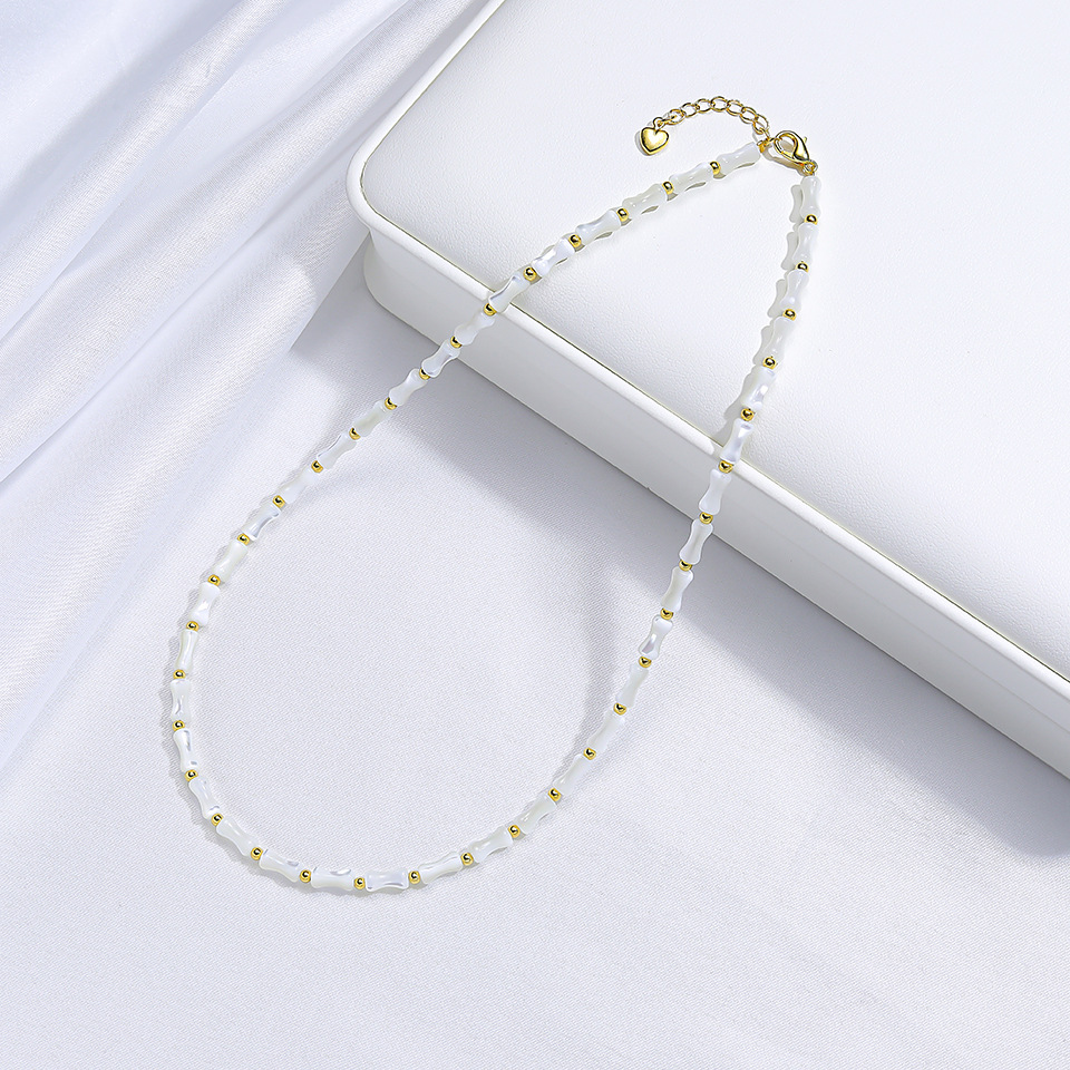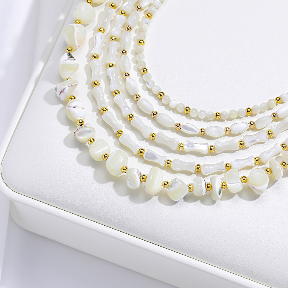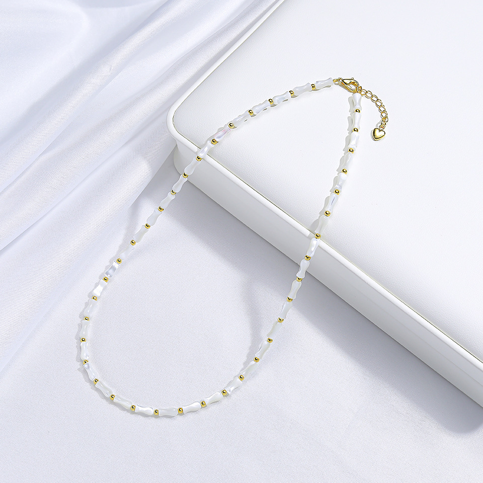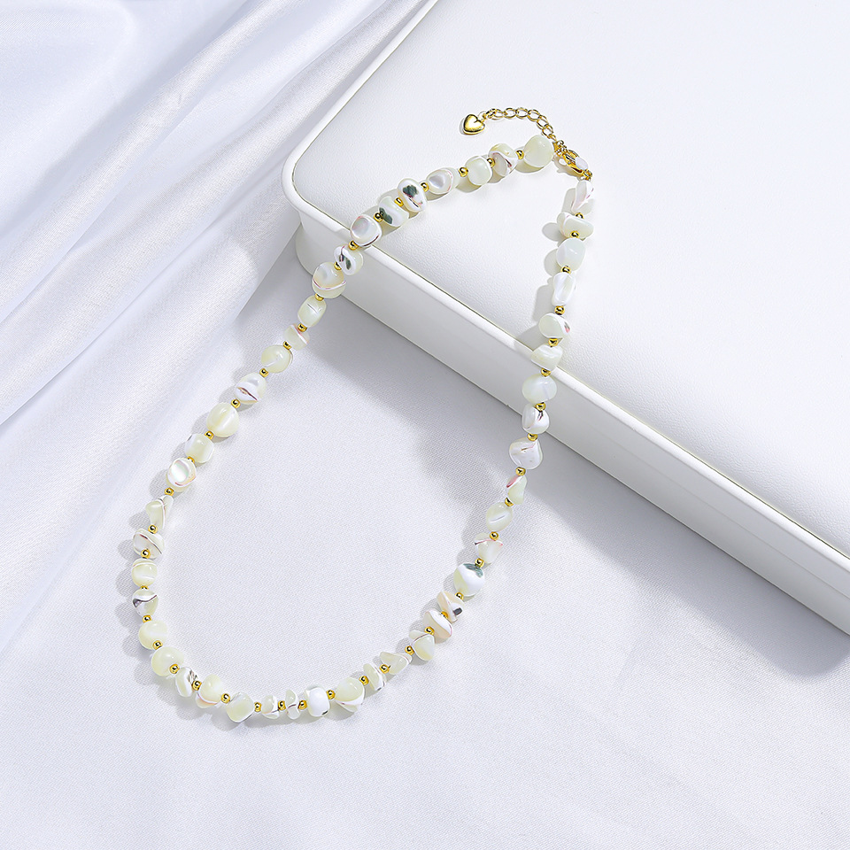 Colares de Conchas, White Lip Shell, with cobre, cromado de cor dourada, joias de moda, Mais cores pare escolha, níquel, chumbo e cádmio livre, 100x70x20mm, vendido para 42 cm Strand