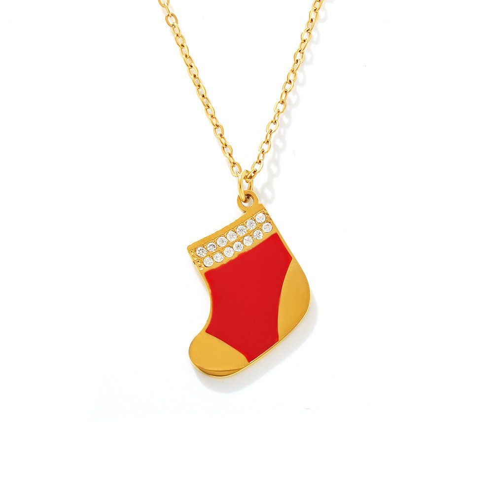 Colares de Natal, Aço inoxidável 304, Meias, banhado a ouro genuino, Design de Natal & micro pavimento em zircônia cúbica & para mulher & esmalte, vendido por PC